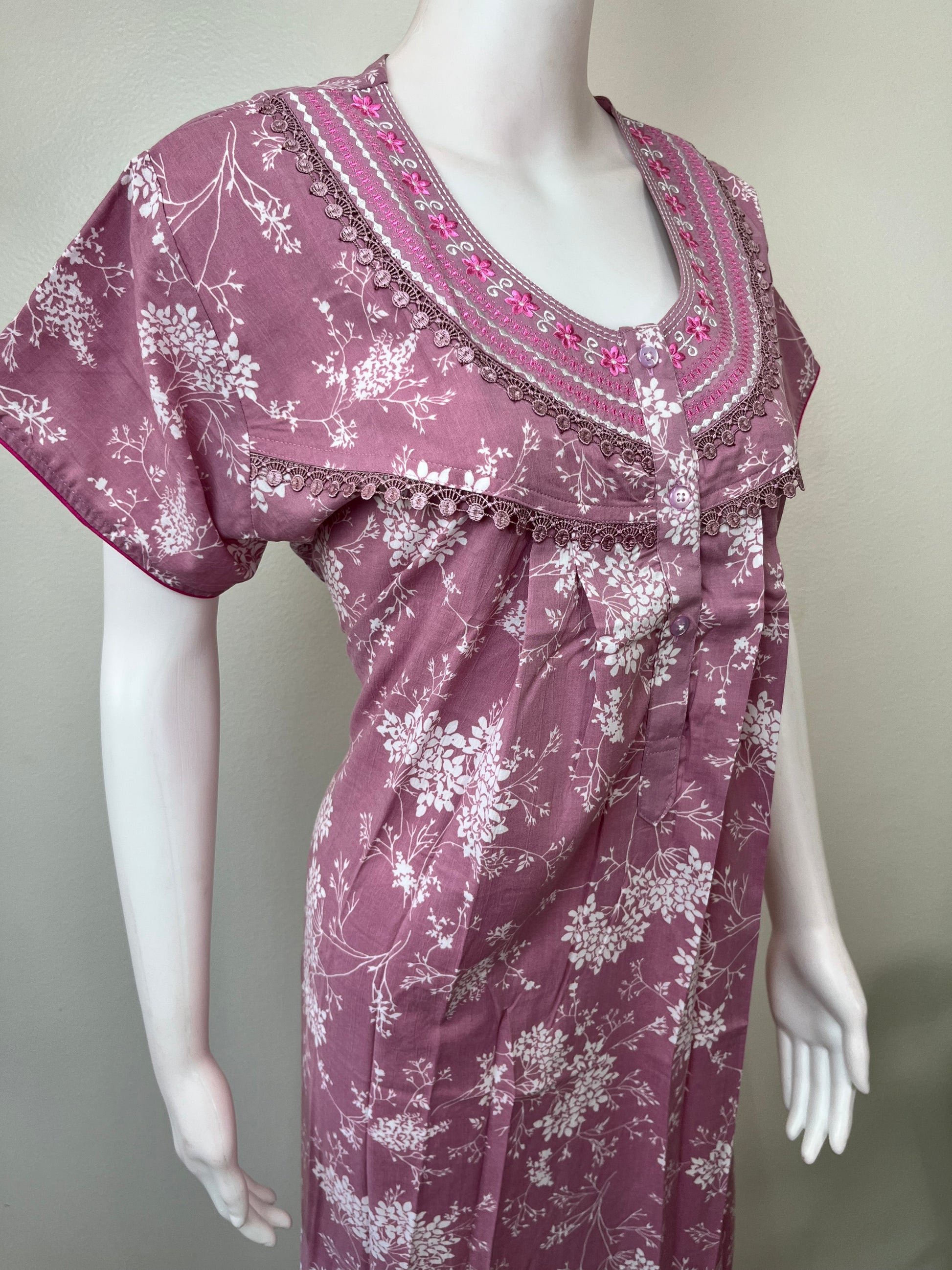 Pink Pleated Style Bizzylizzy Crush Fabric Nightgown