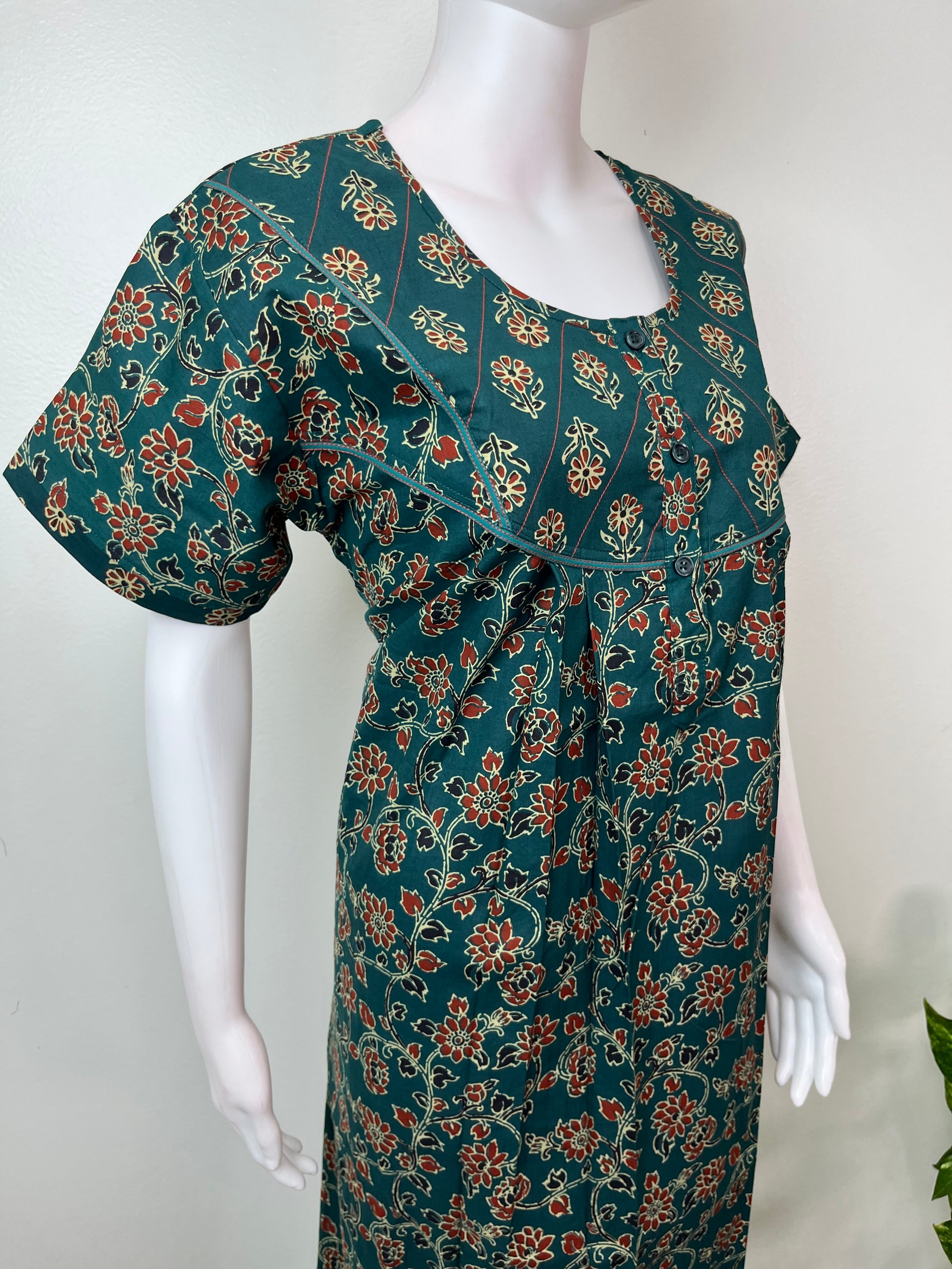 Bottle Green Pure Cotton Nightgown Soft & Comfortable