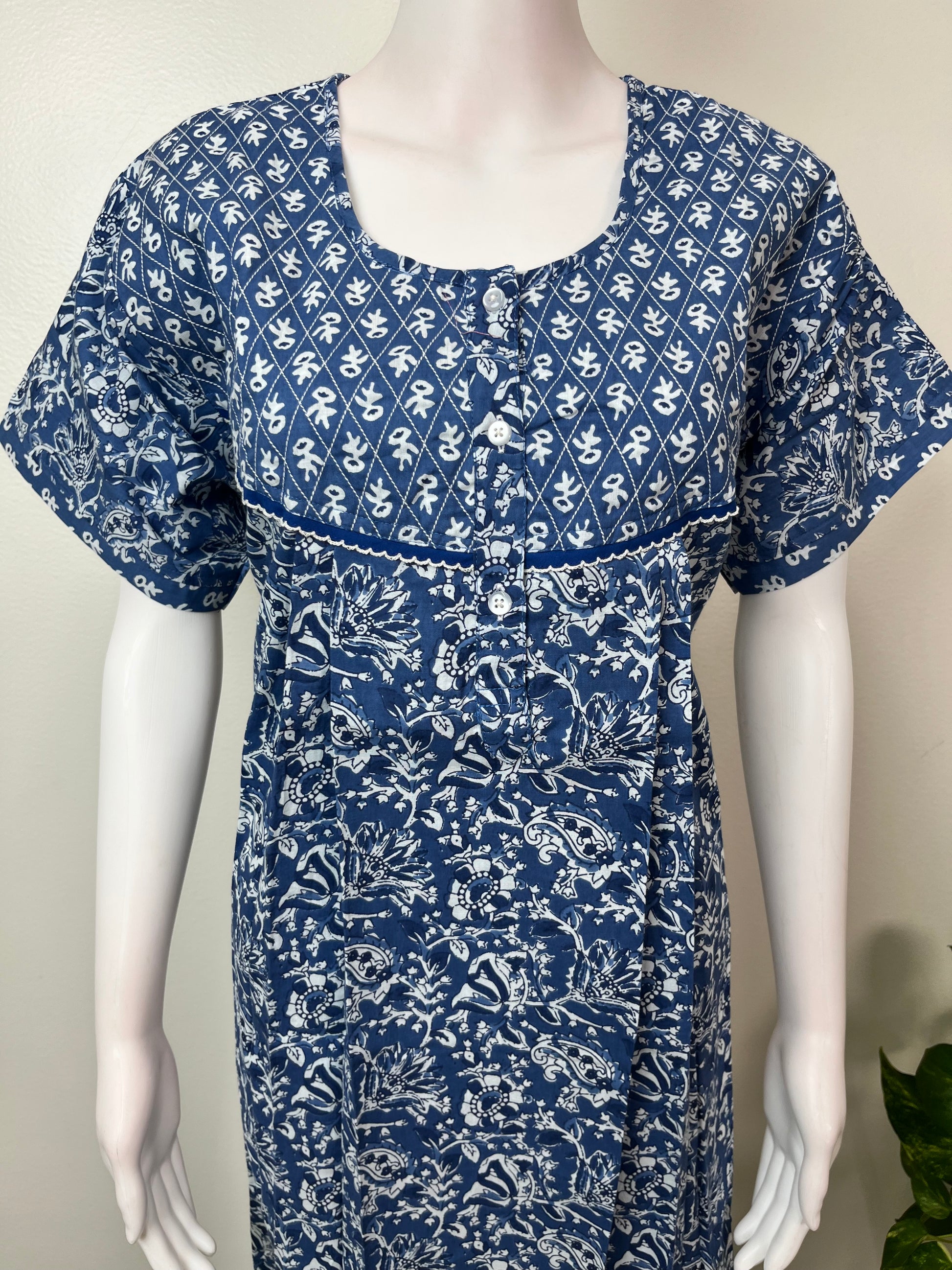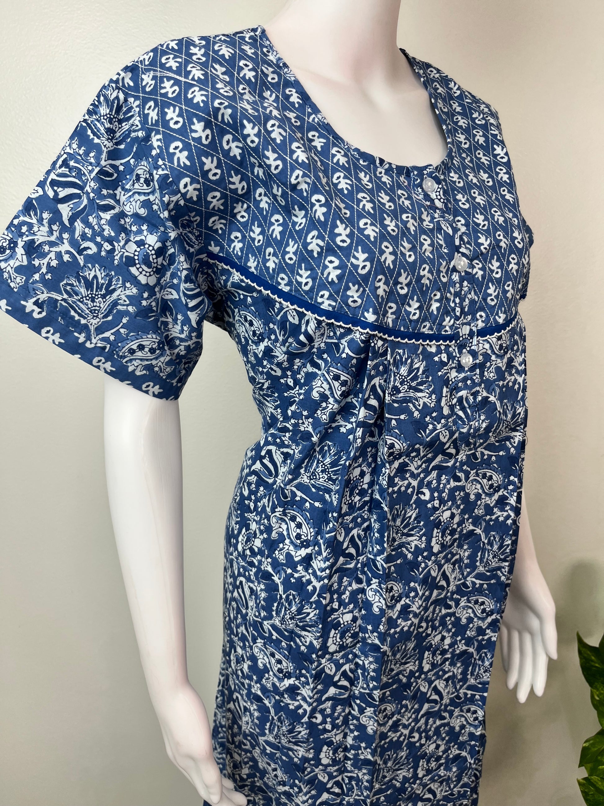 Blue Double Printed 100% Cotton Nightgown