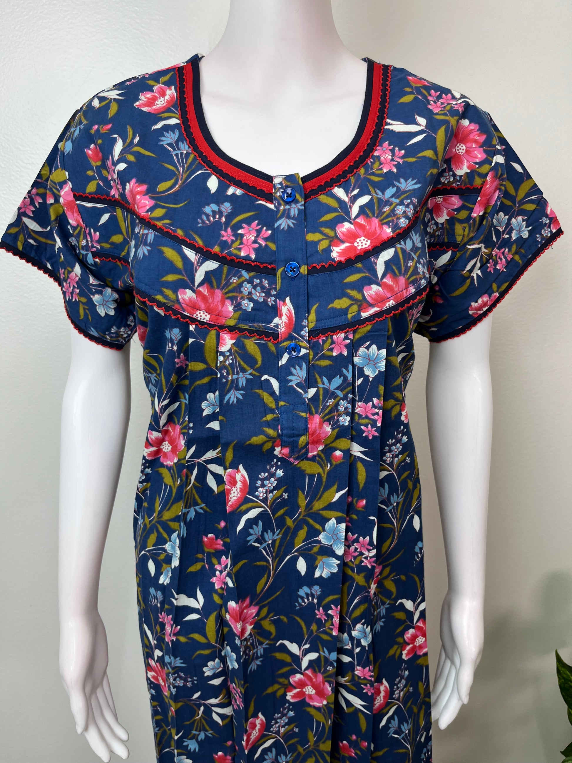 Blue 100% Cotton Nighty Elegant & Breathable