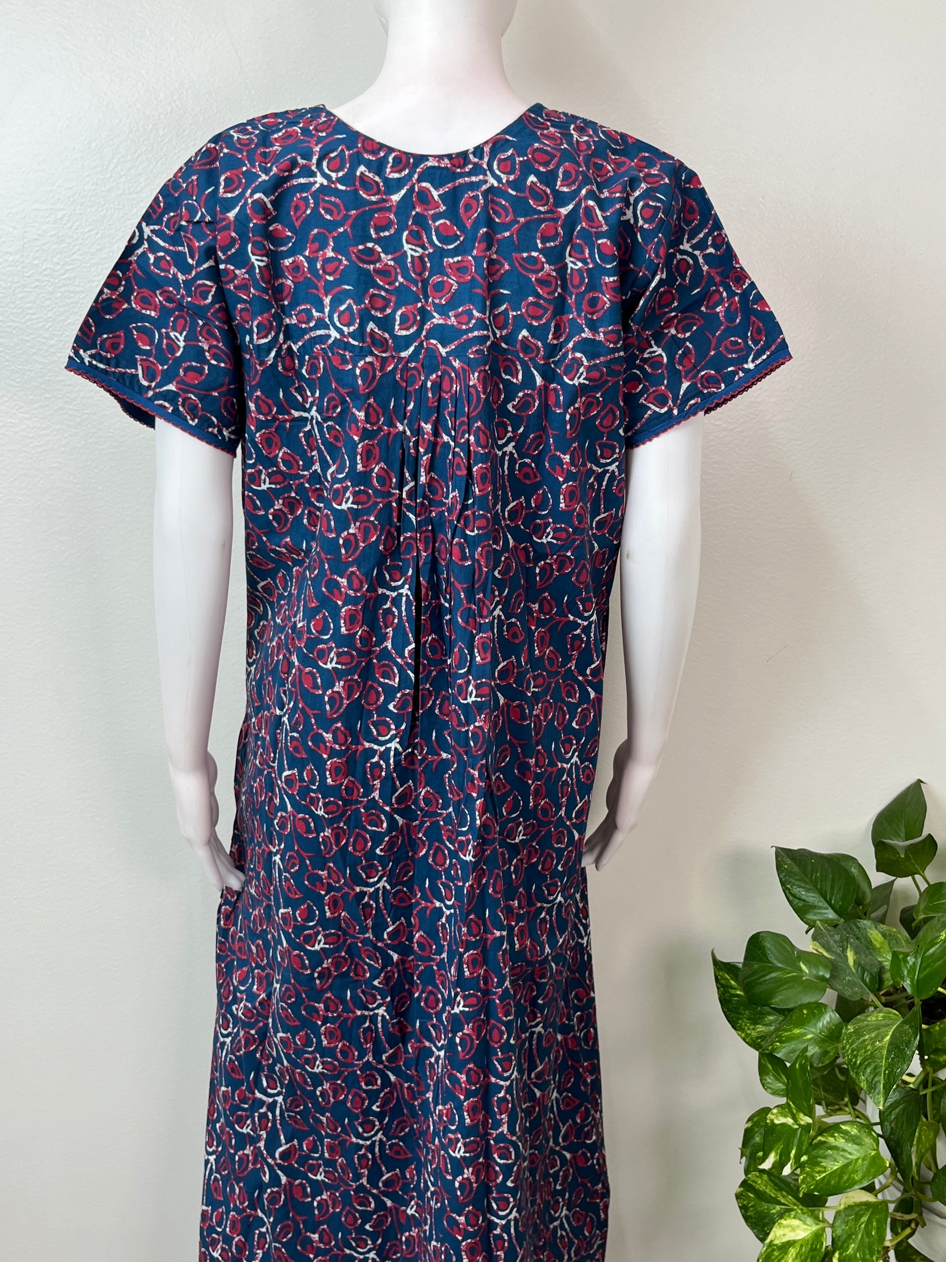 Navy Blue Pure Cotton Nighty with Contrast Print