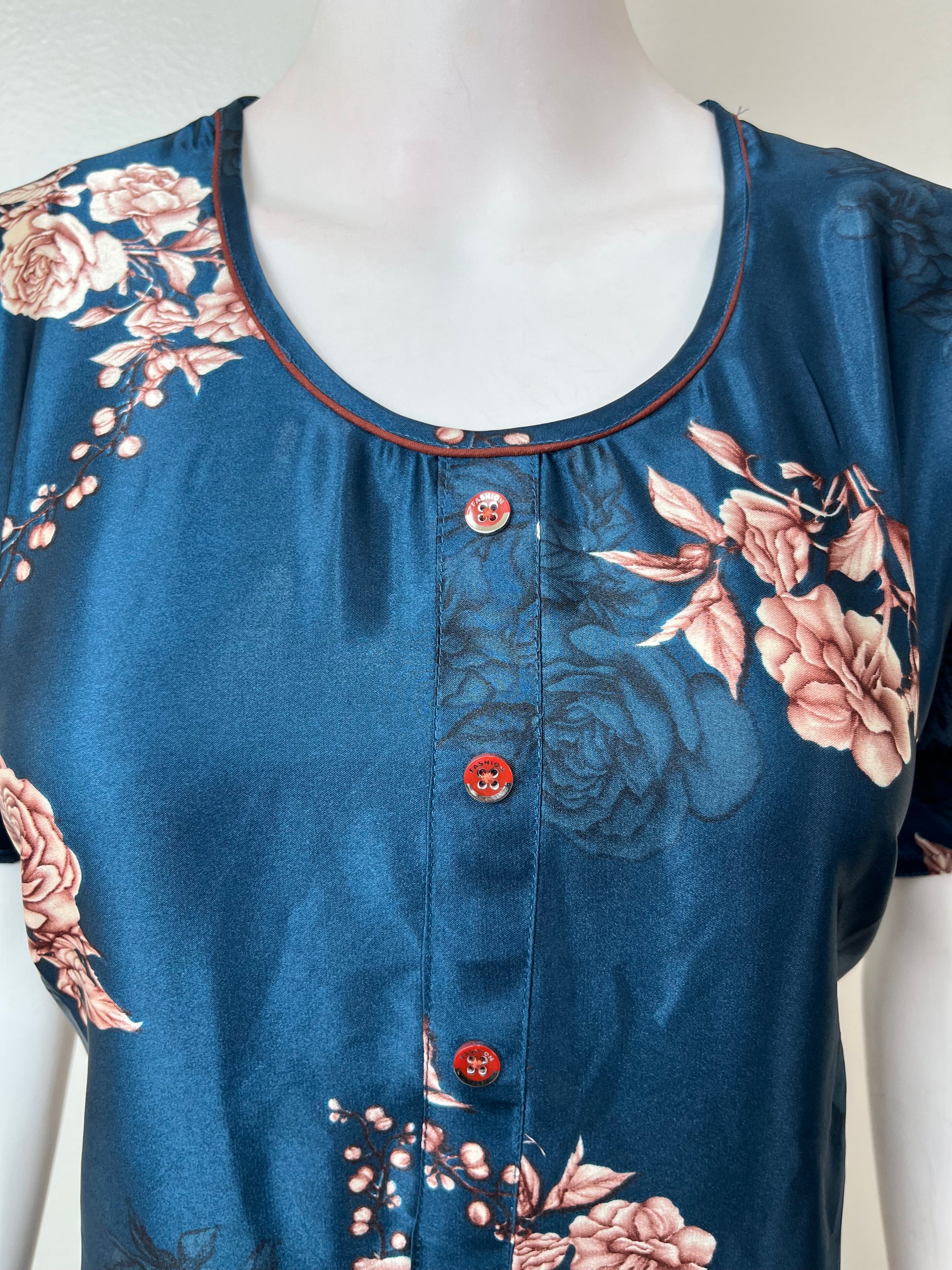 Navy Blue Satin Fabric Elegant & Soft Nightgown
