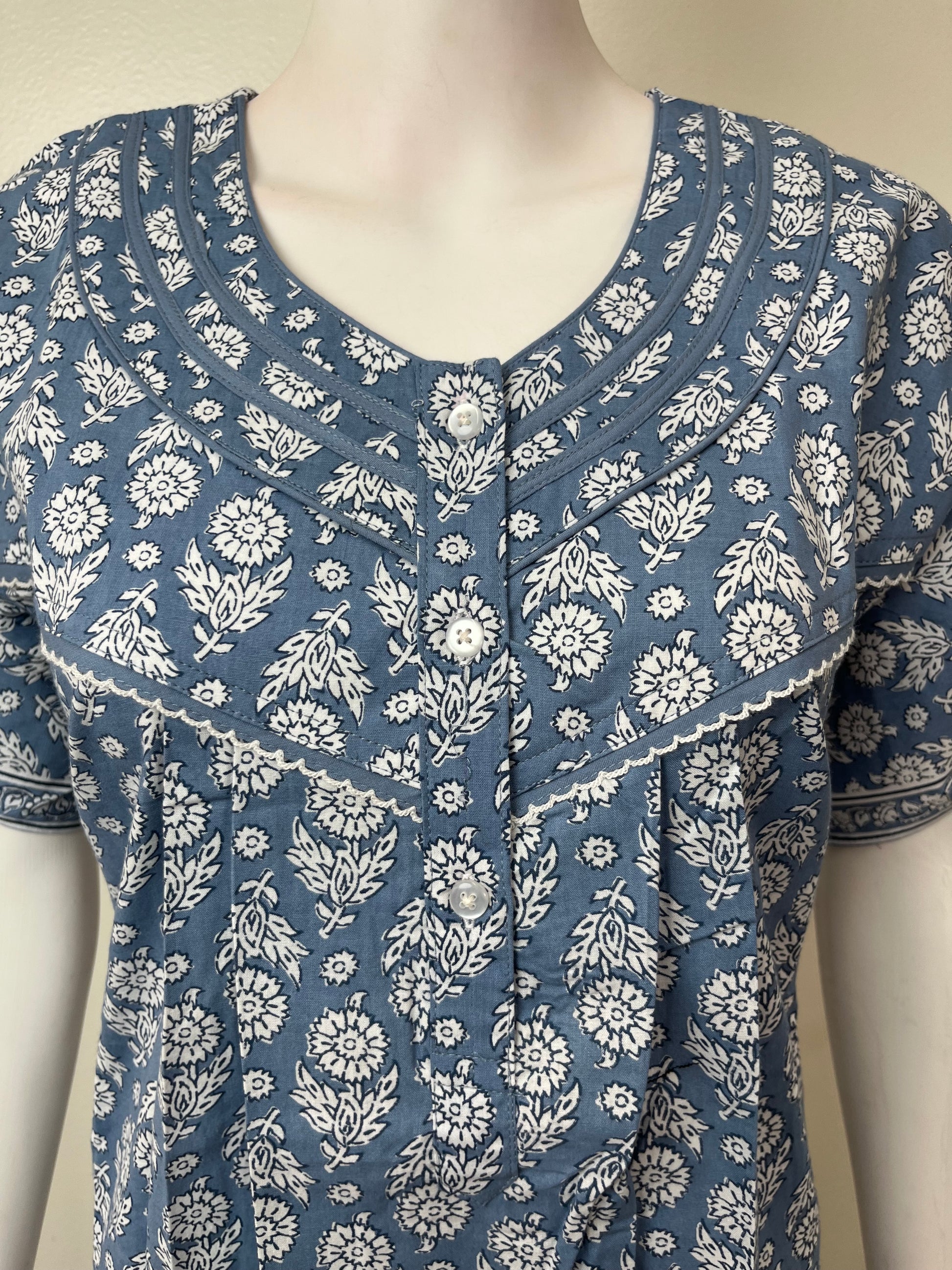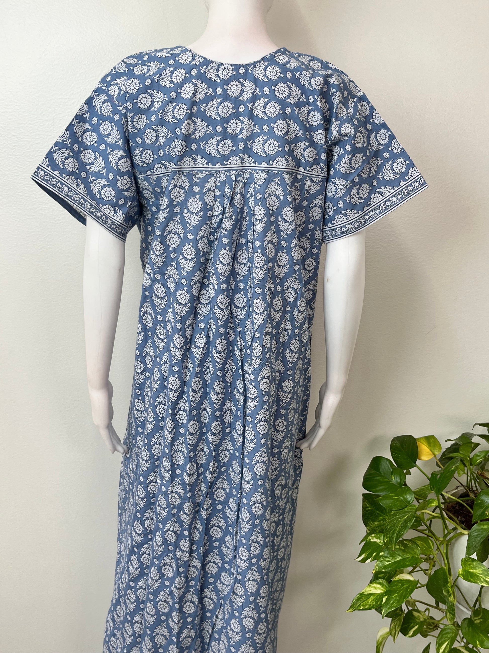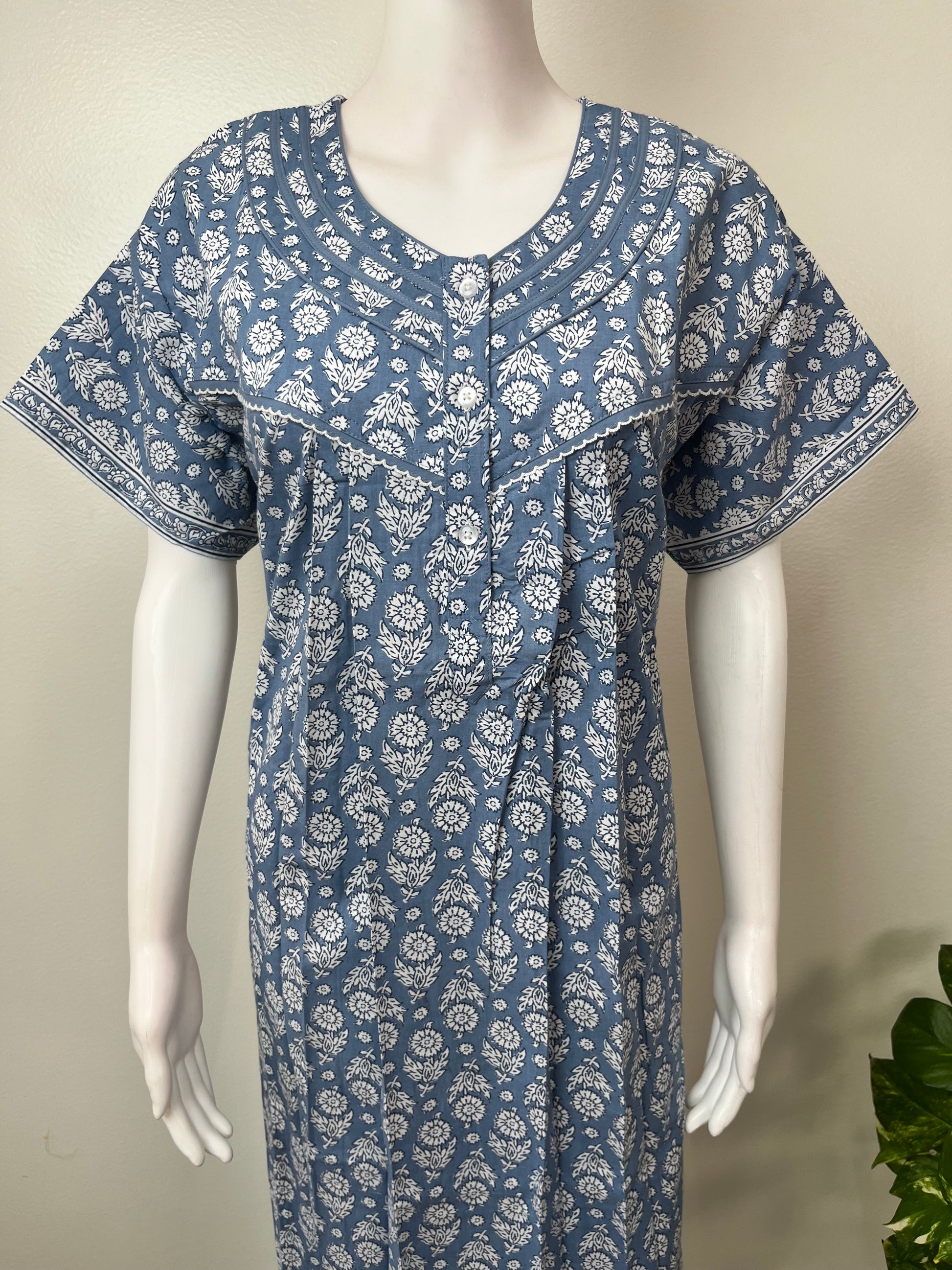 Gray Pleated Style 100% Cotton Nightgown
