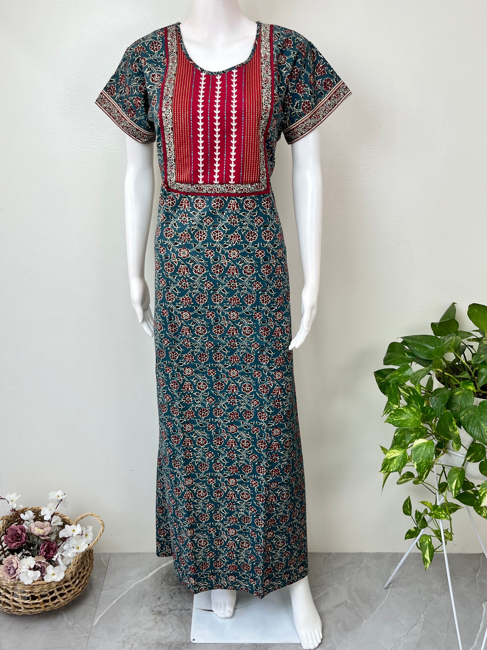 Teal Blue Pure Cotton Nighty Soft & Breathable