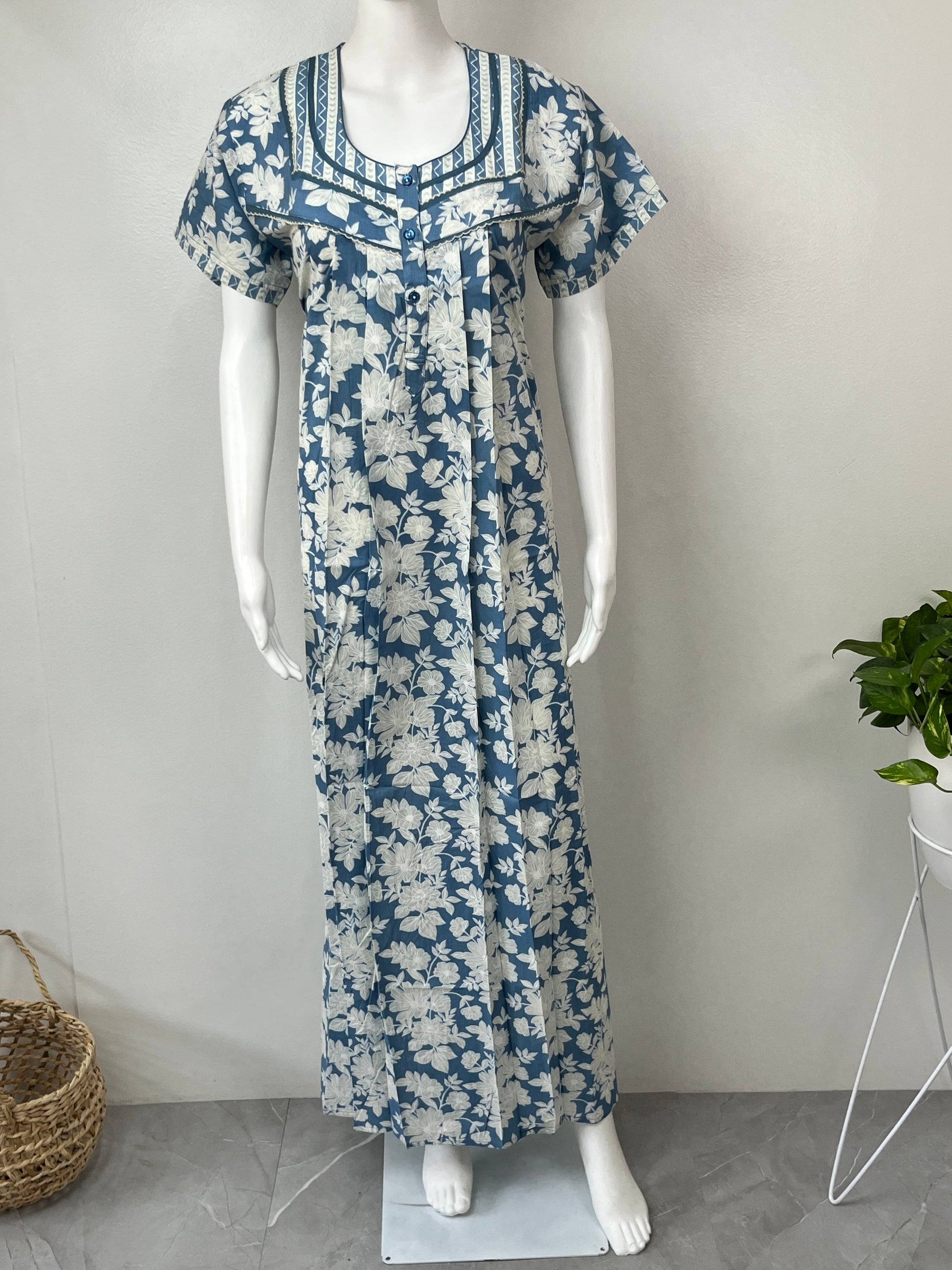 Blue Pure Cotton Nightgown Soft & Breathable