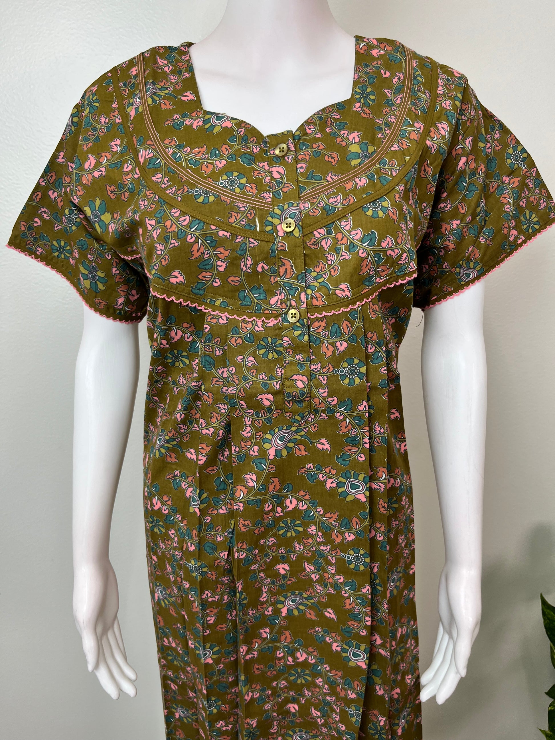 Brown Floral Printed Pure Cotton Nightgown