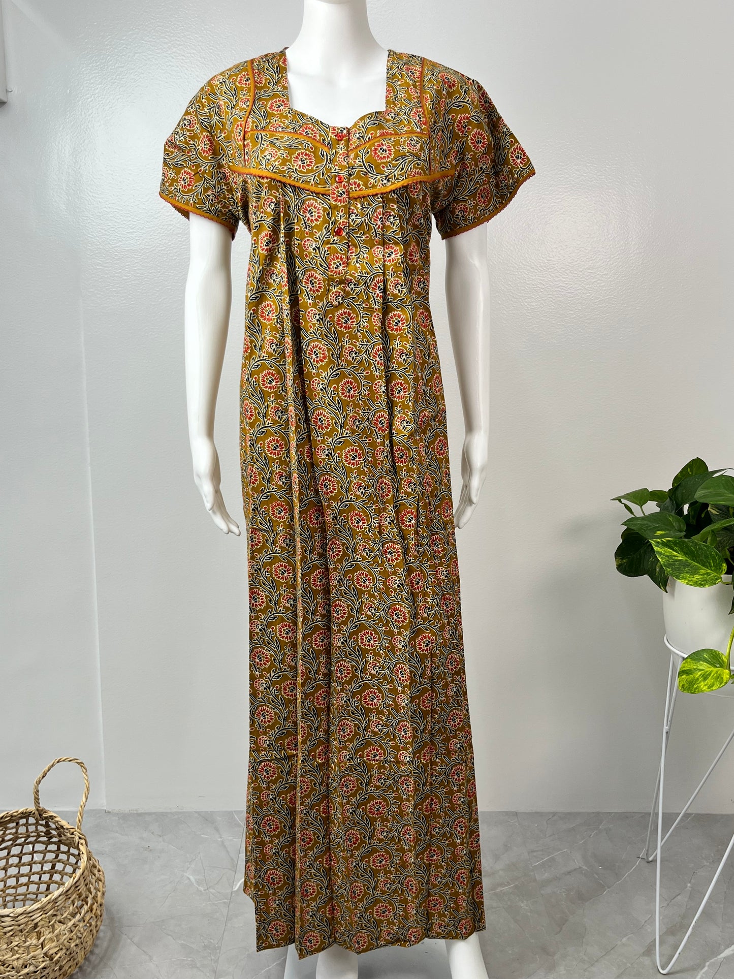 Brown Printed Pure Cotton Nighty Soft & Comfortable