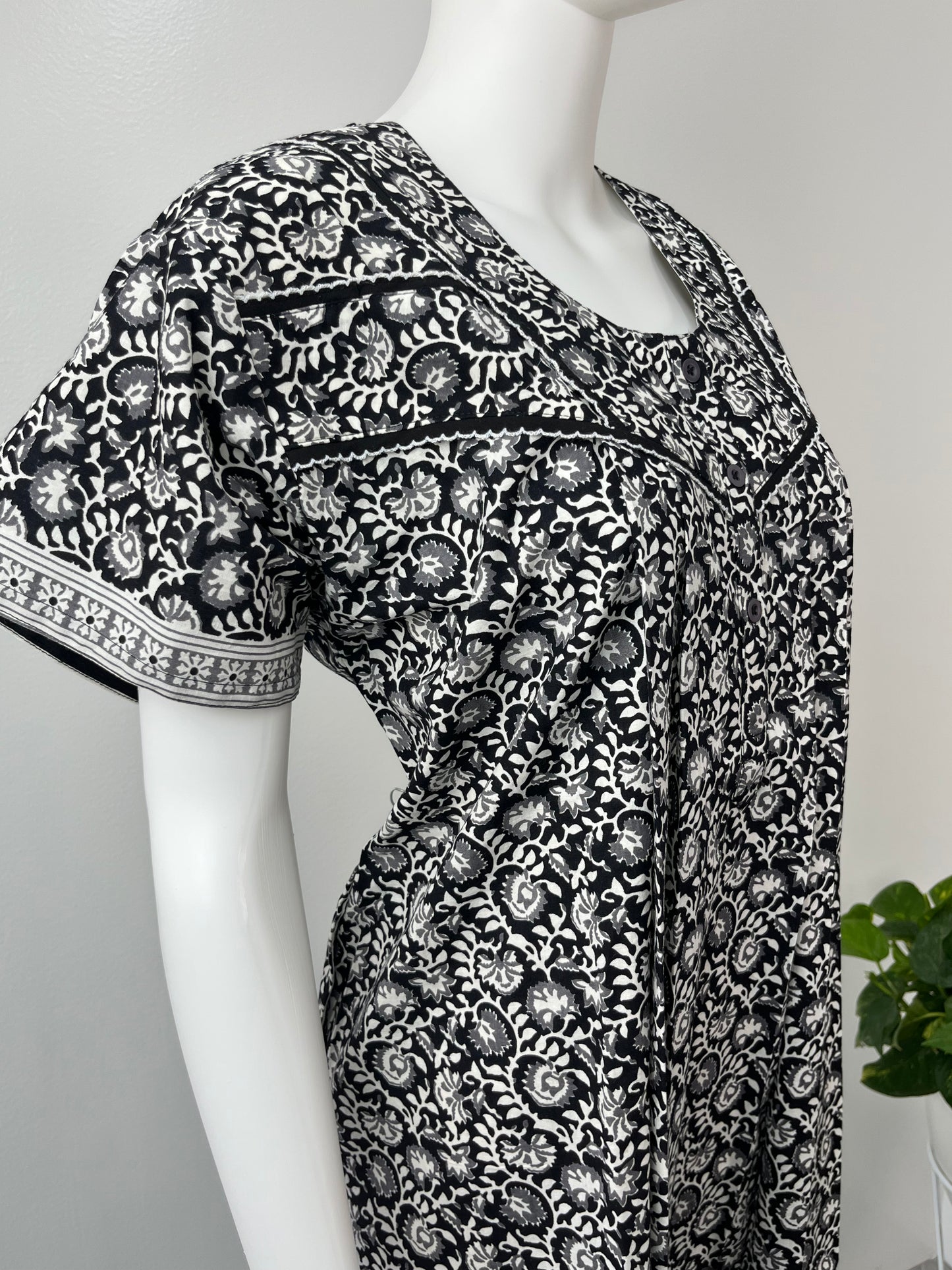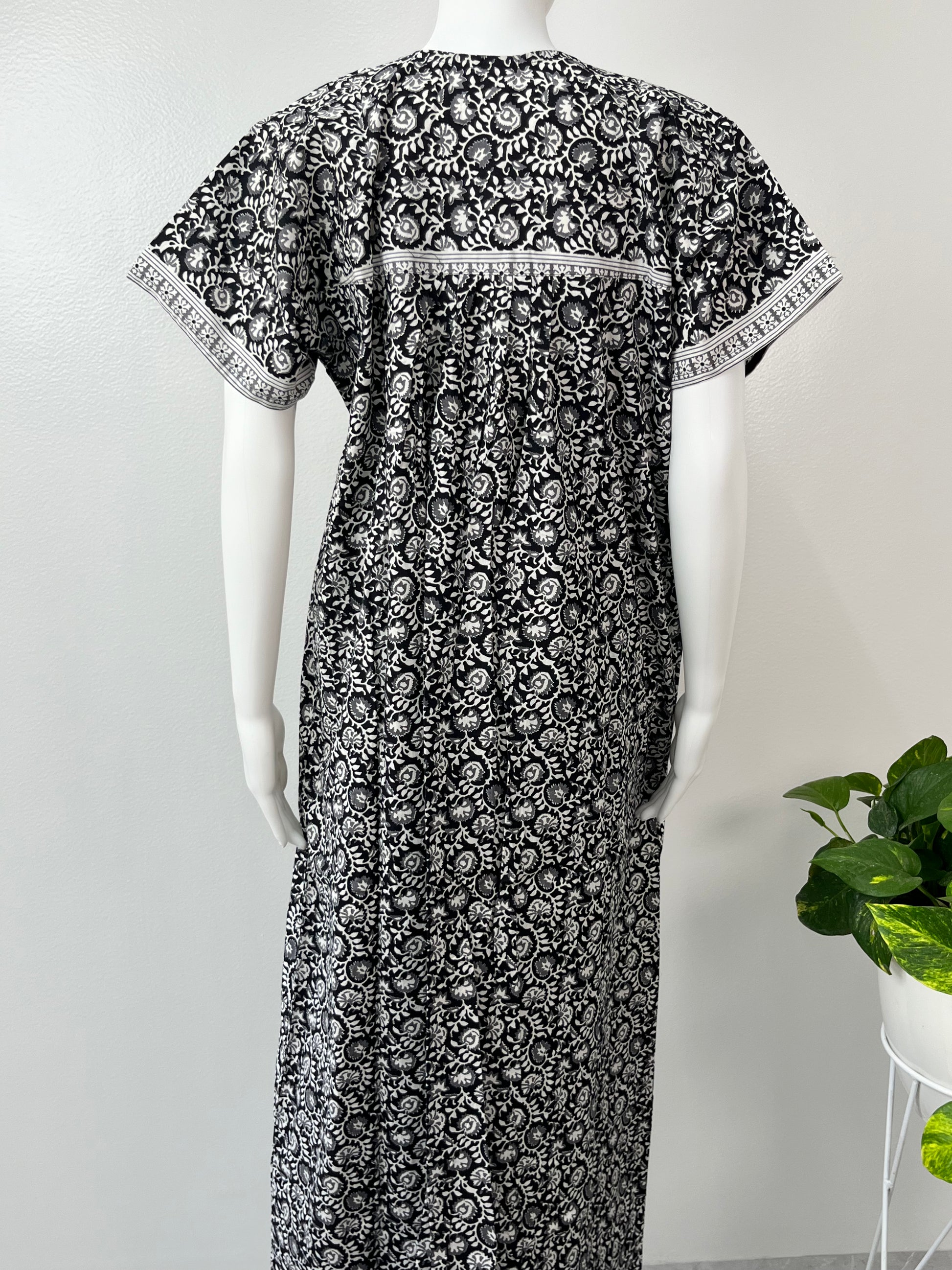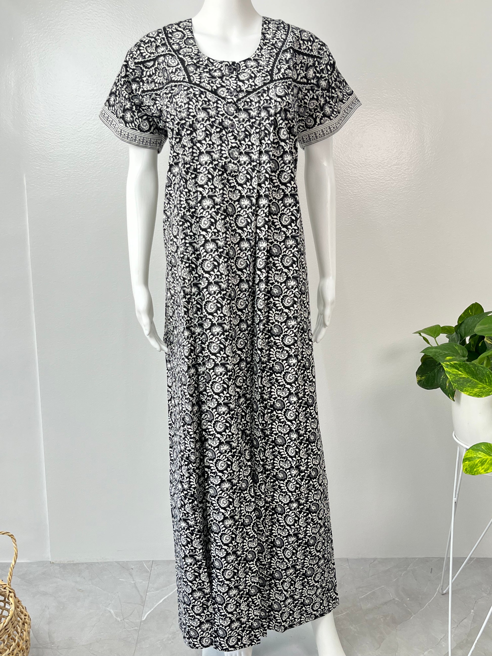 Printed Black Pure Cotton Nighty Airy & Comfortable