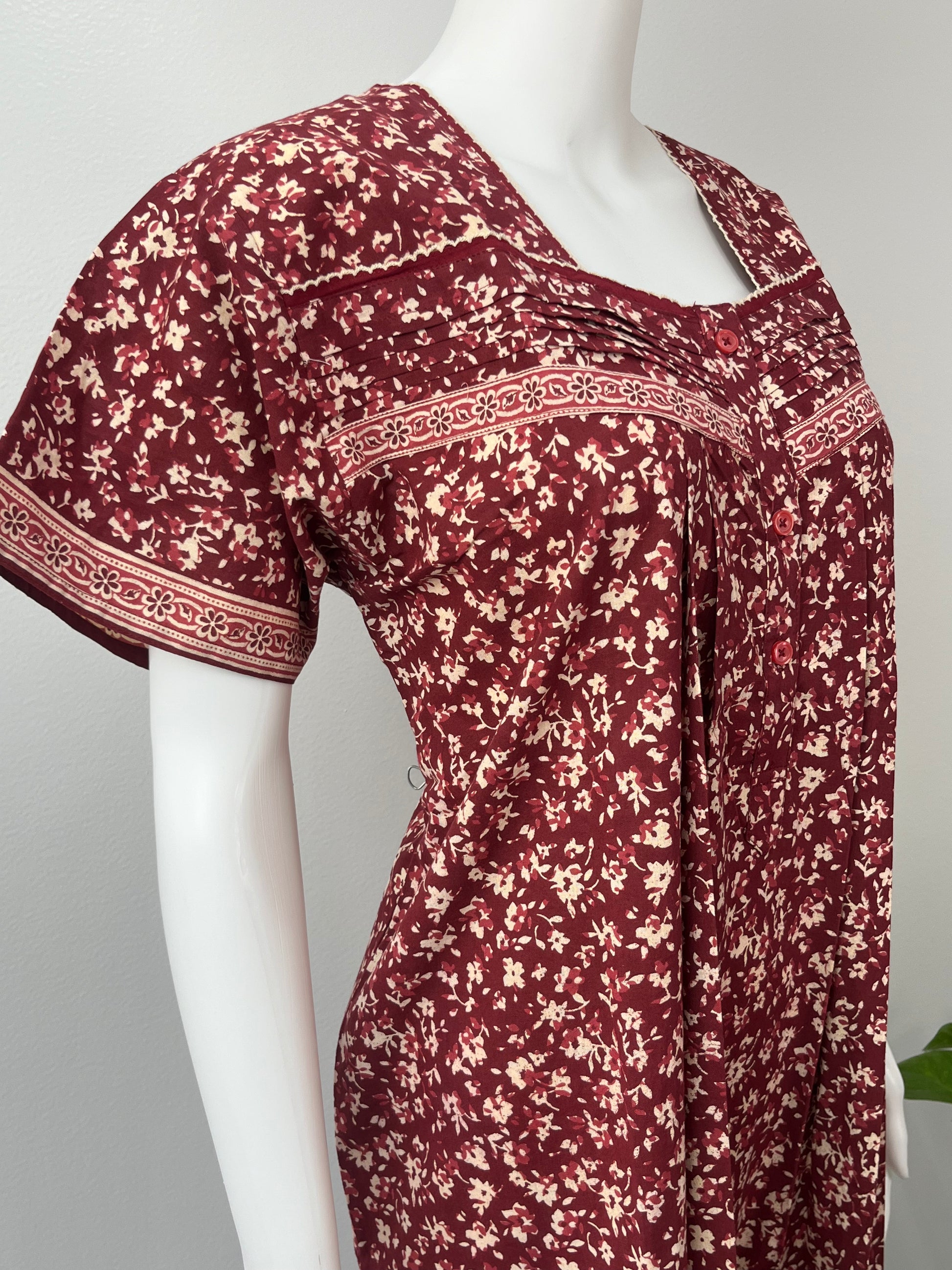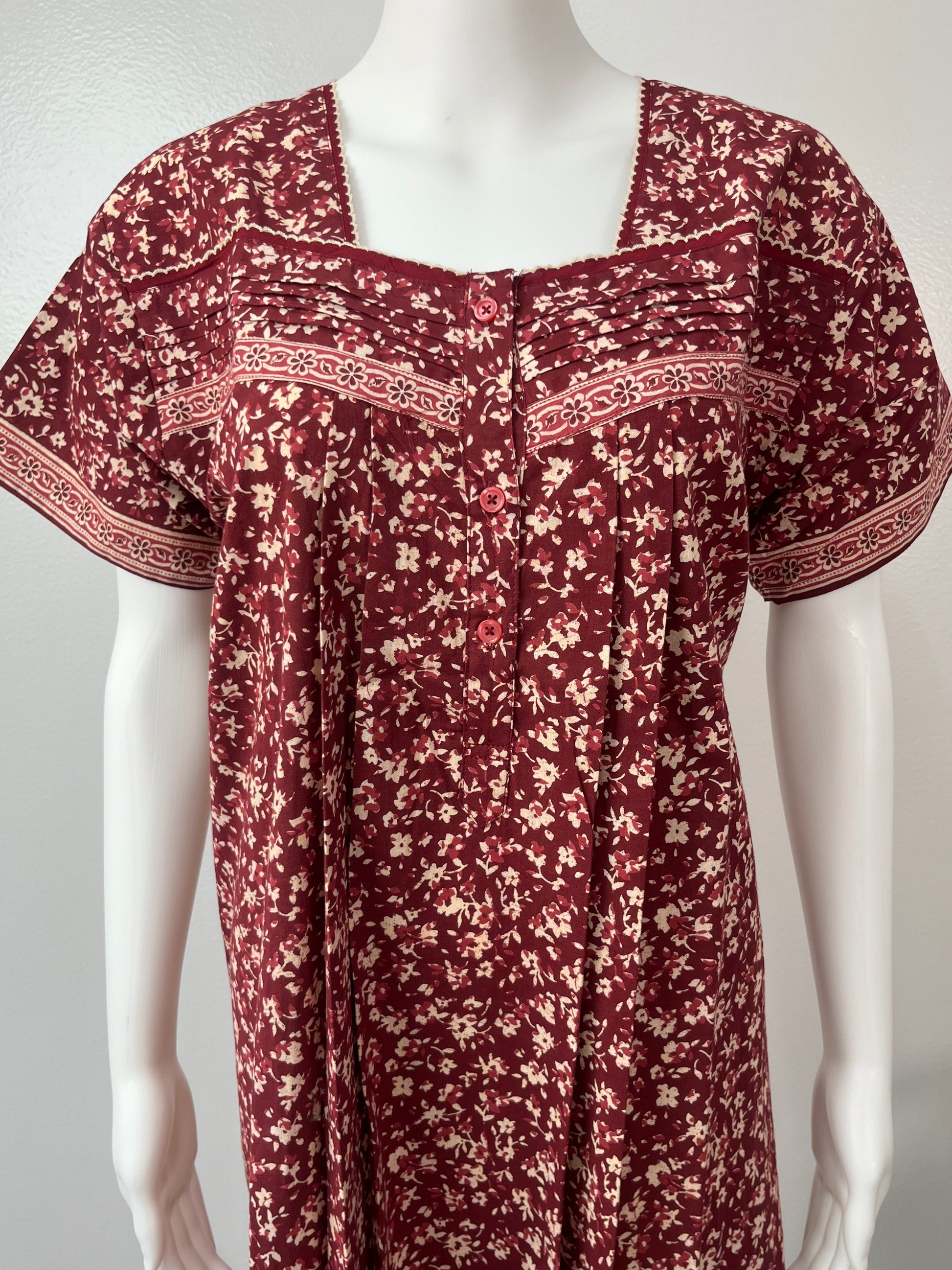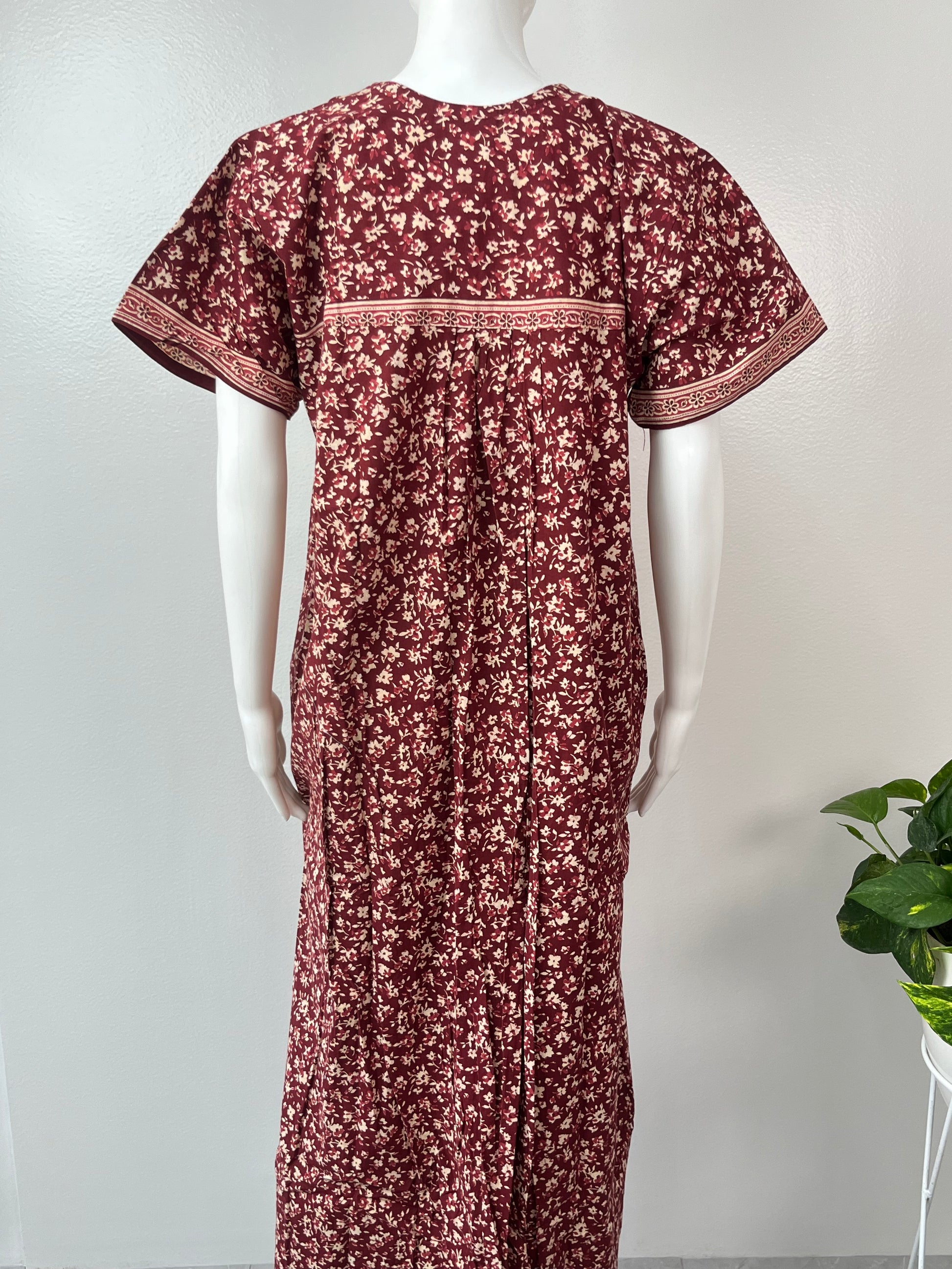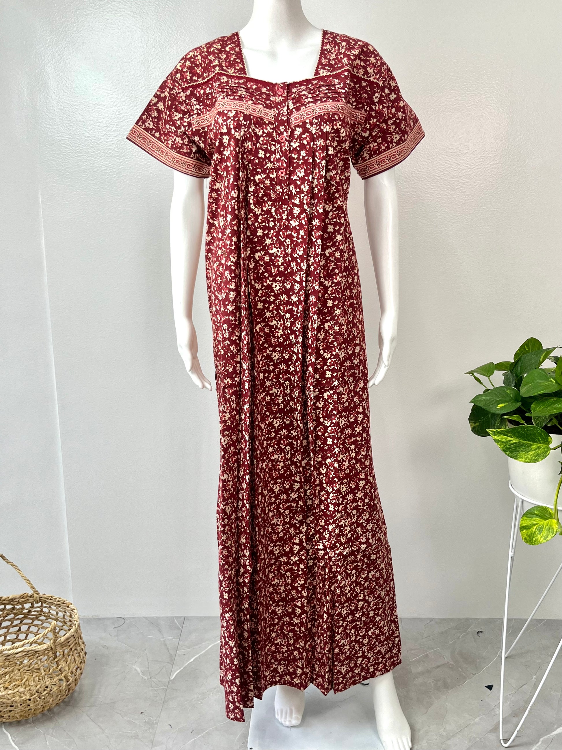 Maroon 100% Pure Cotton Printed Nighty for Women