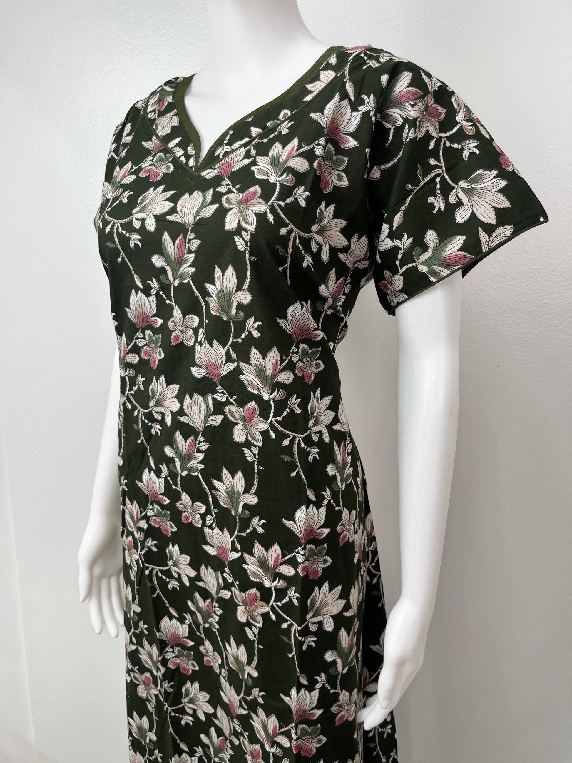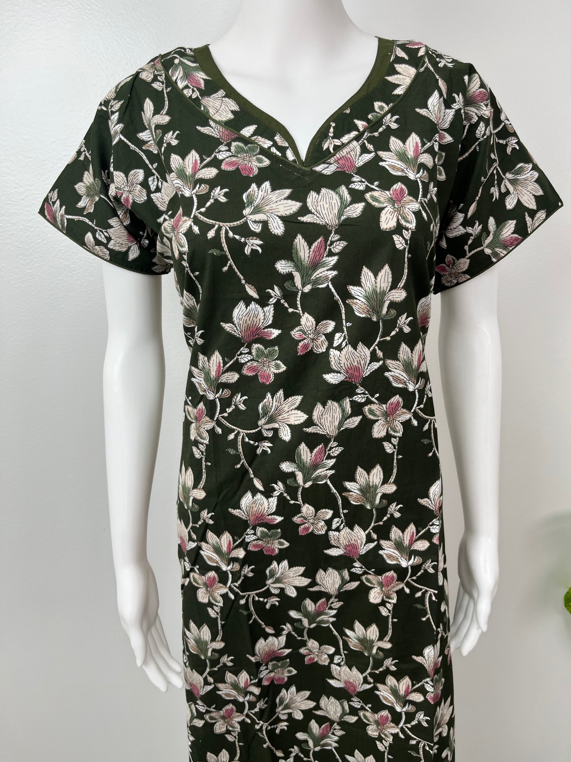 Olive Green 100% Cotton Women's Nightgown for Women