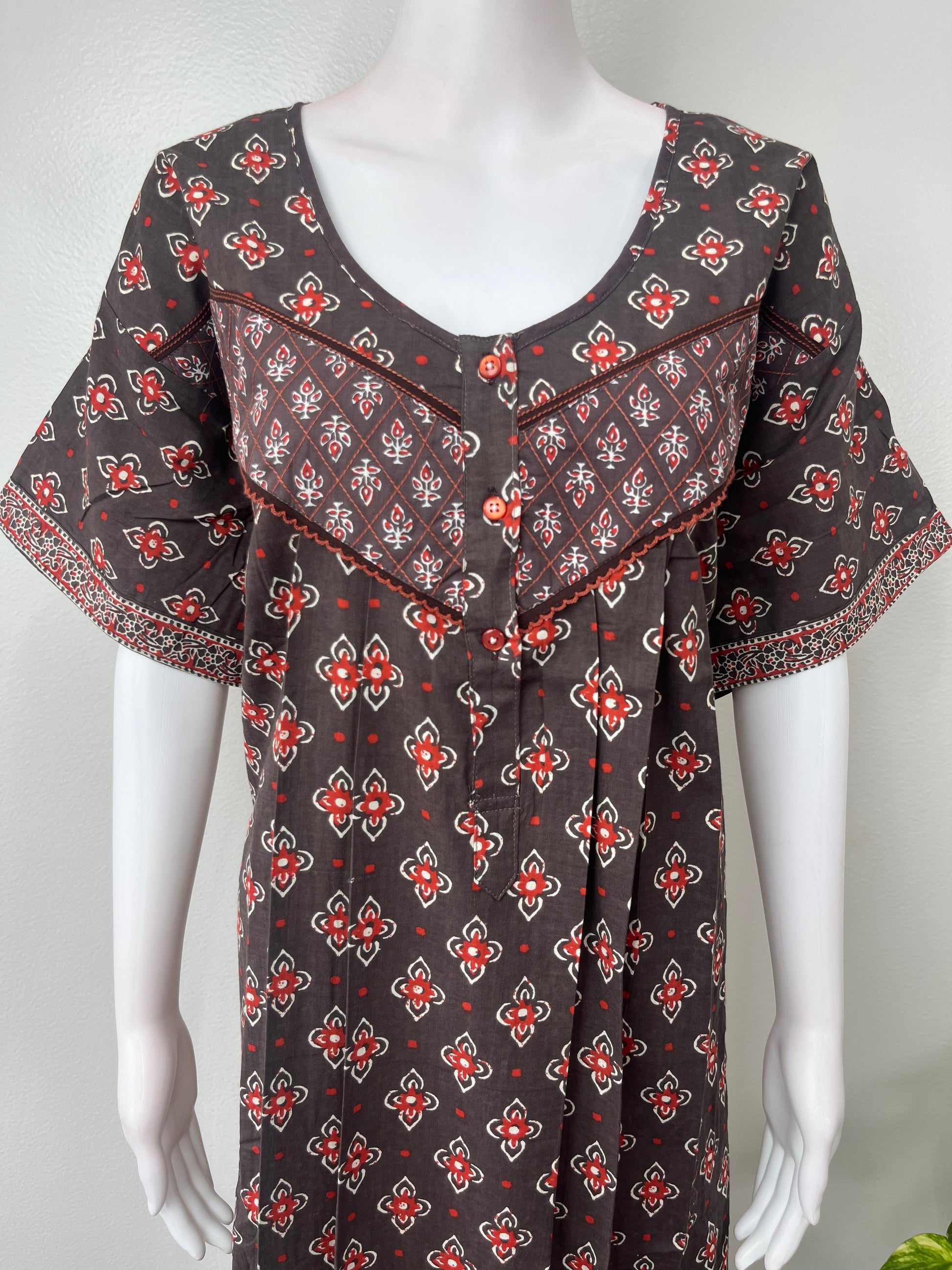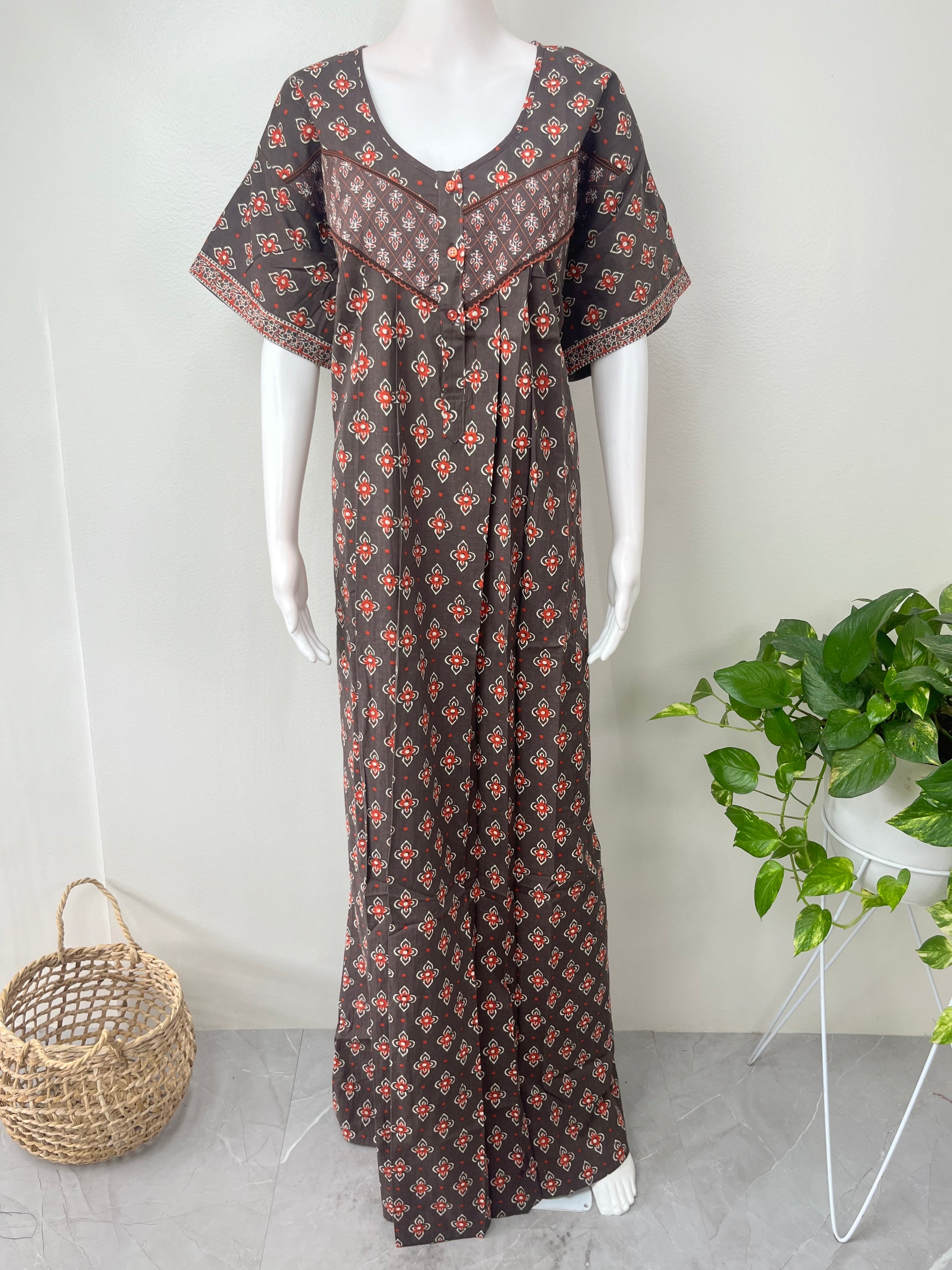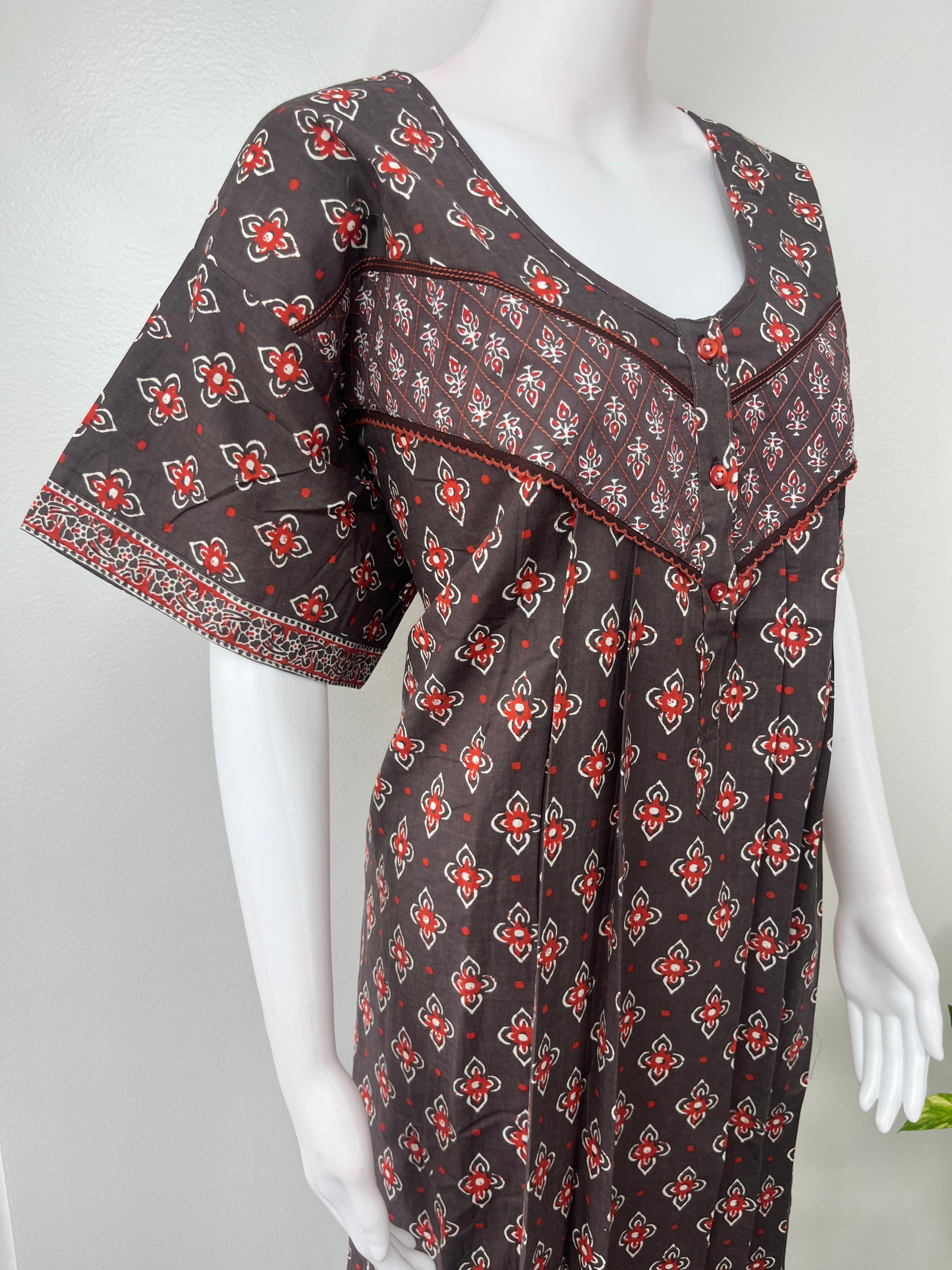 Gray Pleated Style Pure Cotton Nighty