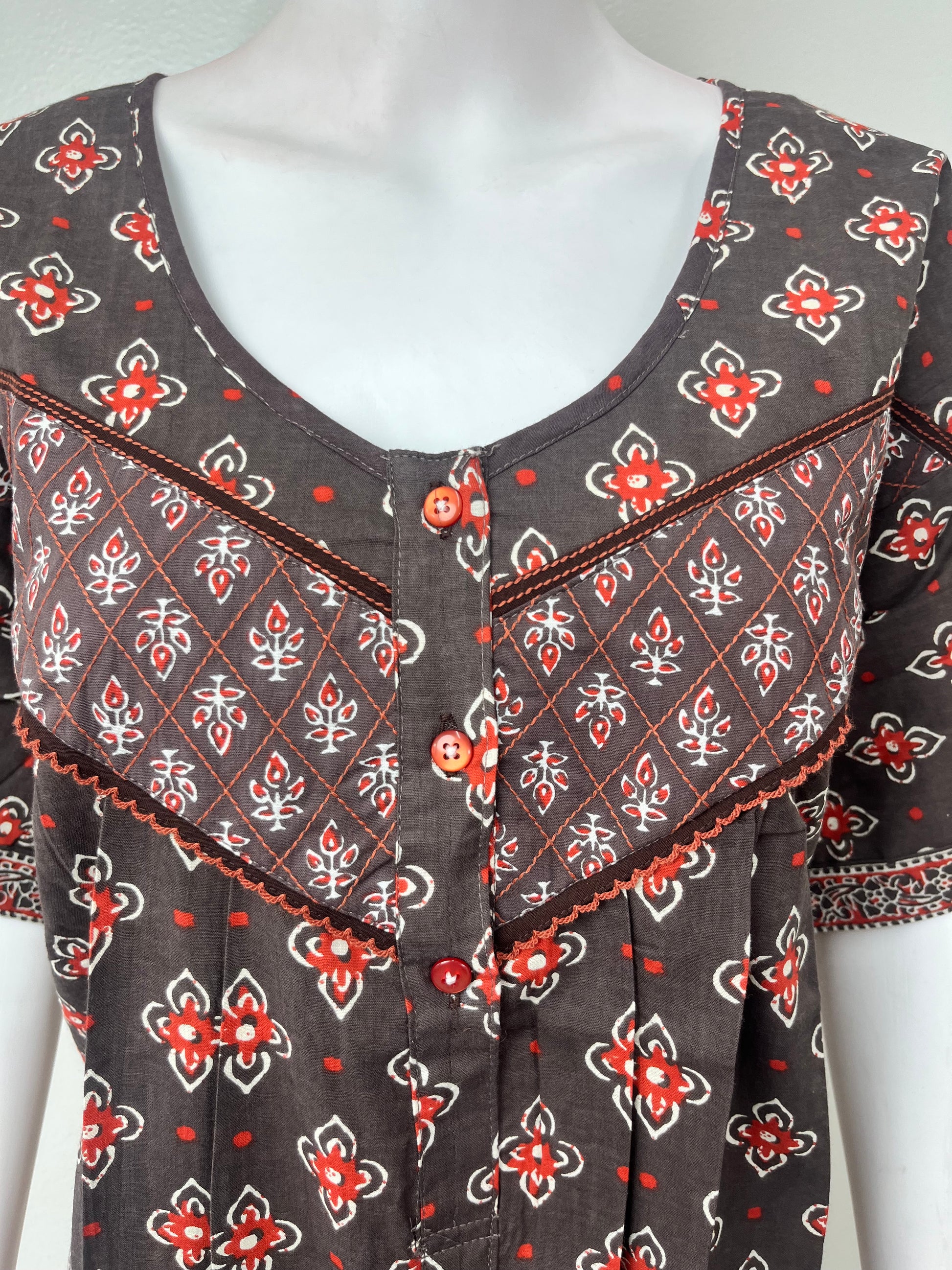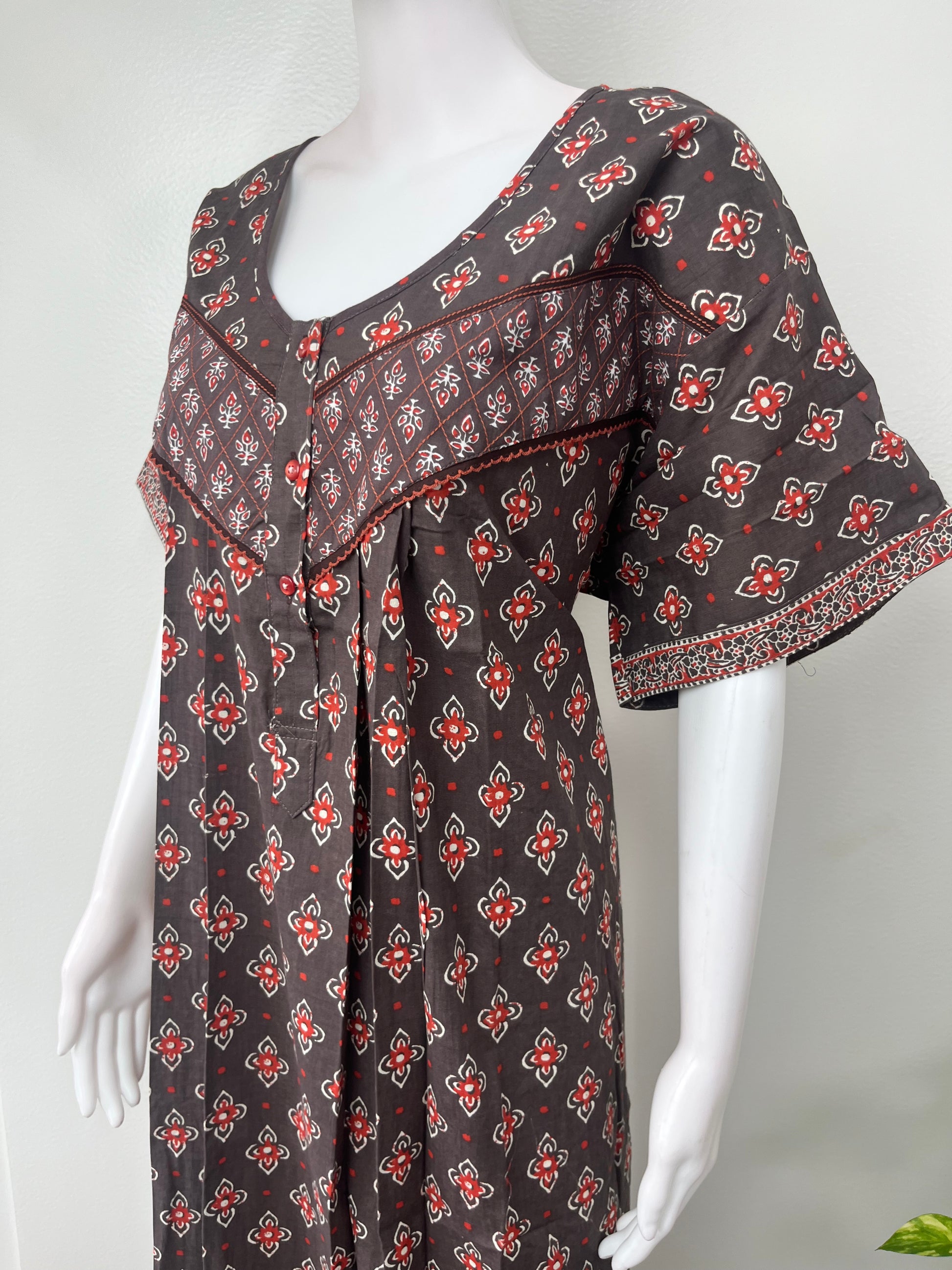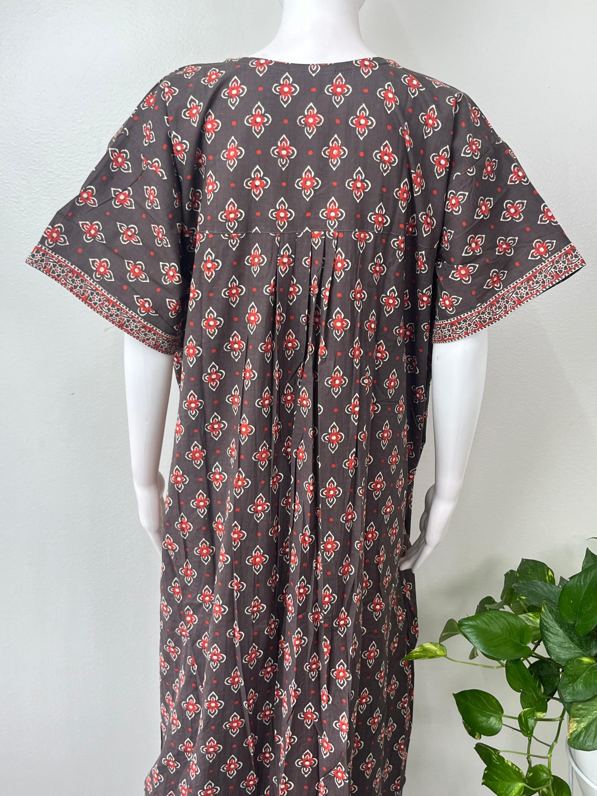 Gray Pleated Style Pure Cotton Nighty