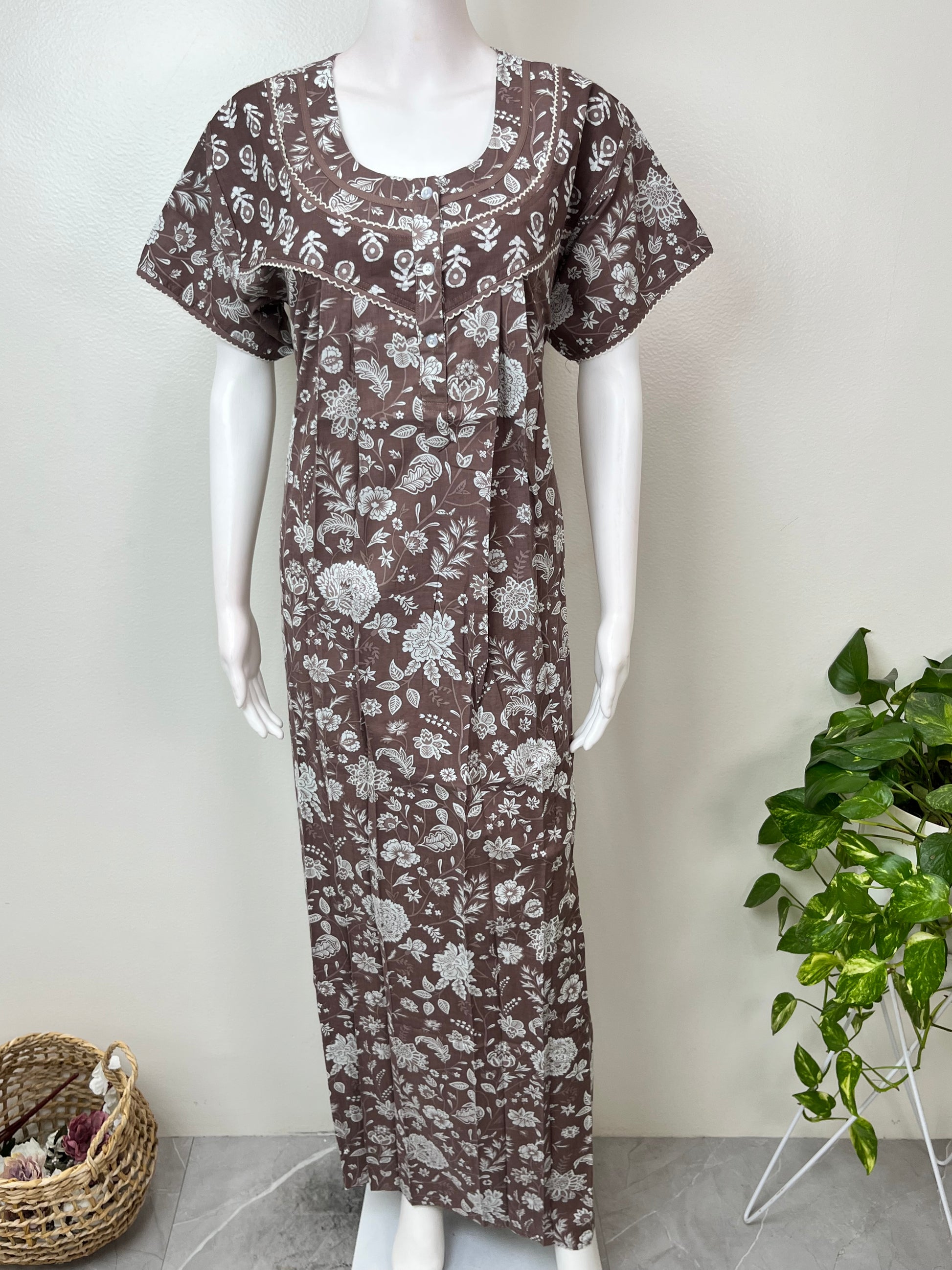 Grey Pure Cotton Nightgown Soft & Comfortable