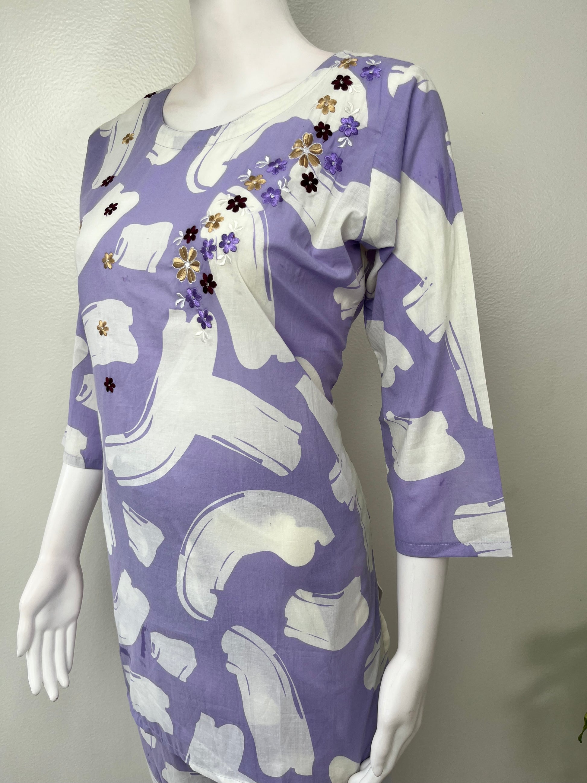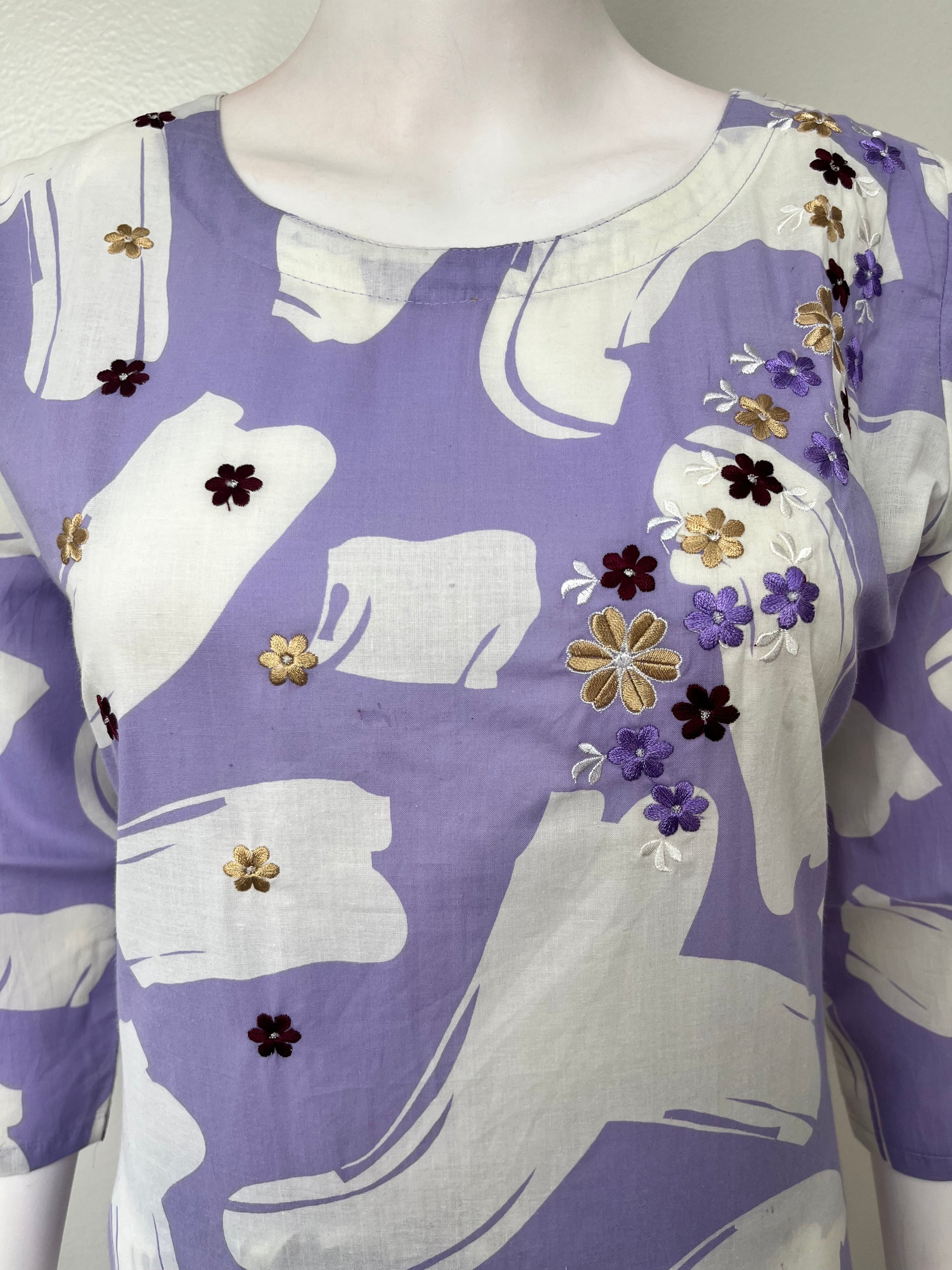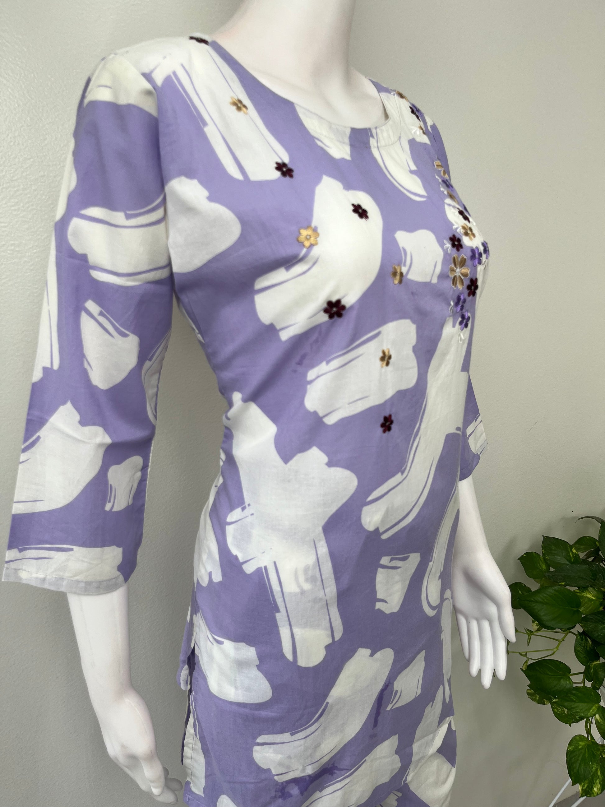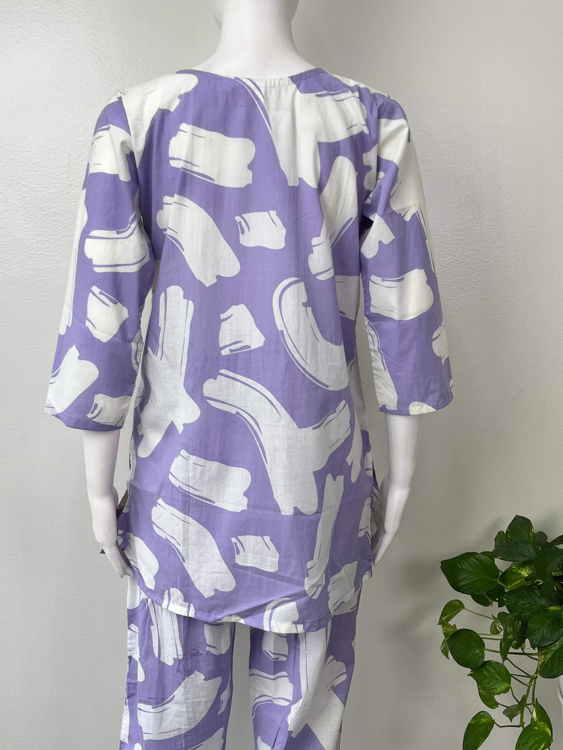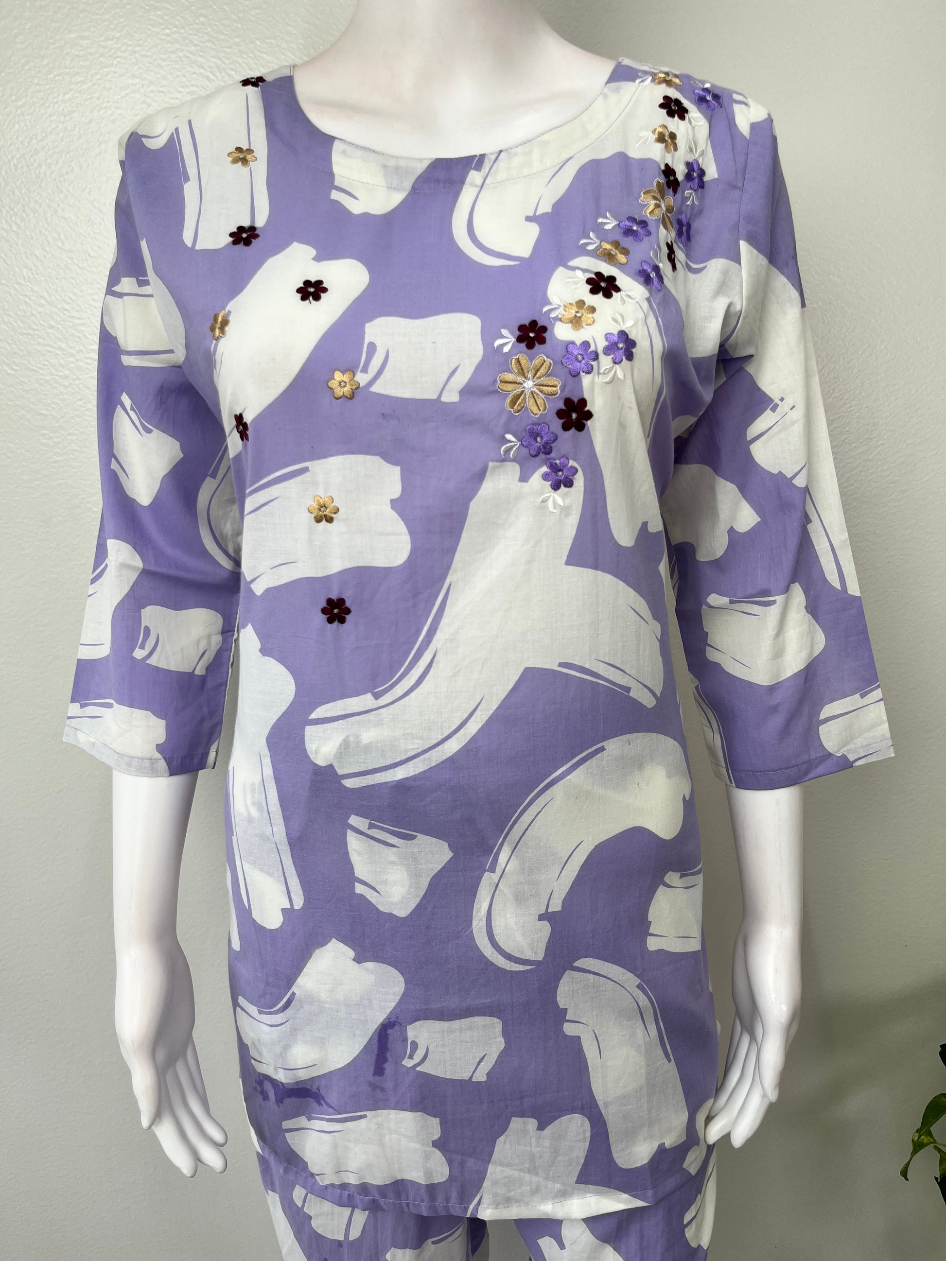 Lavender Emrbroidered Pure Cotton Nightwear-Co-ord Style