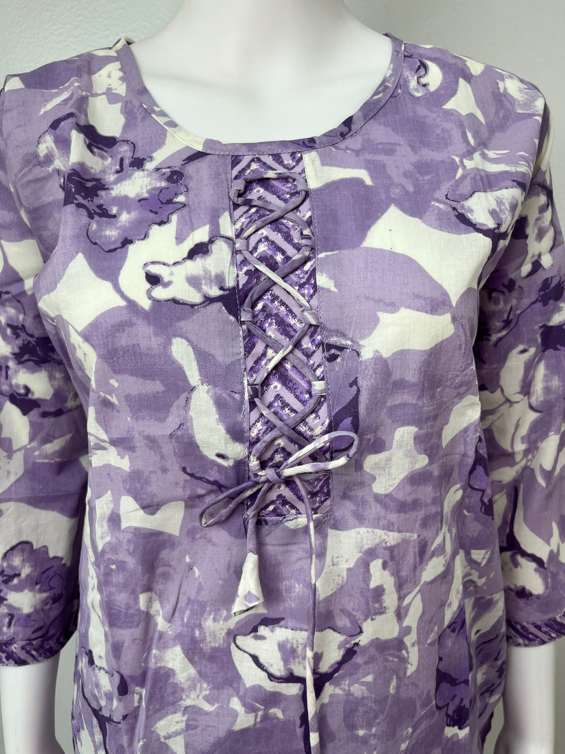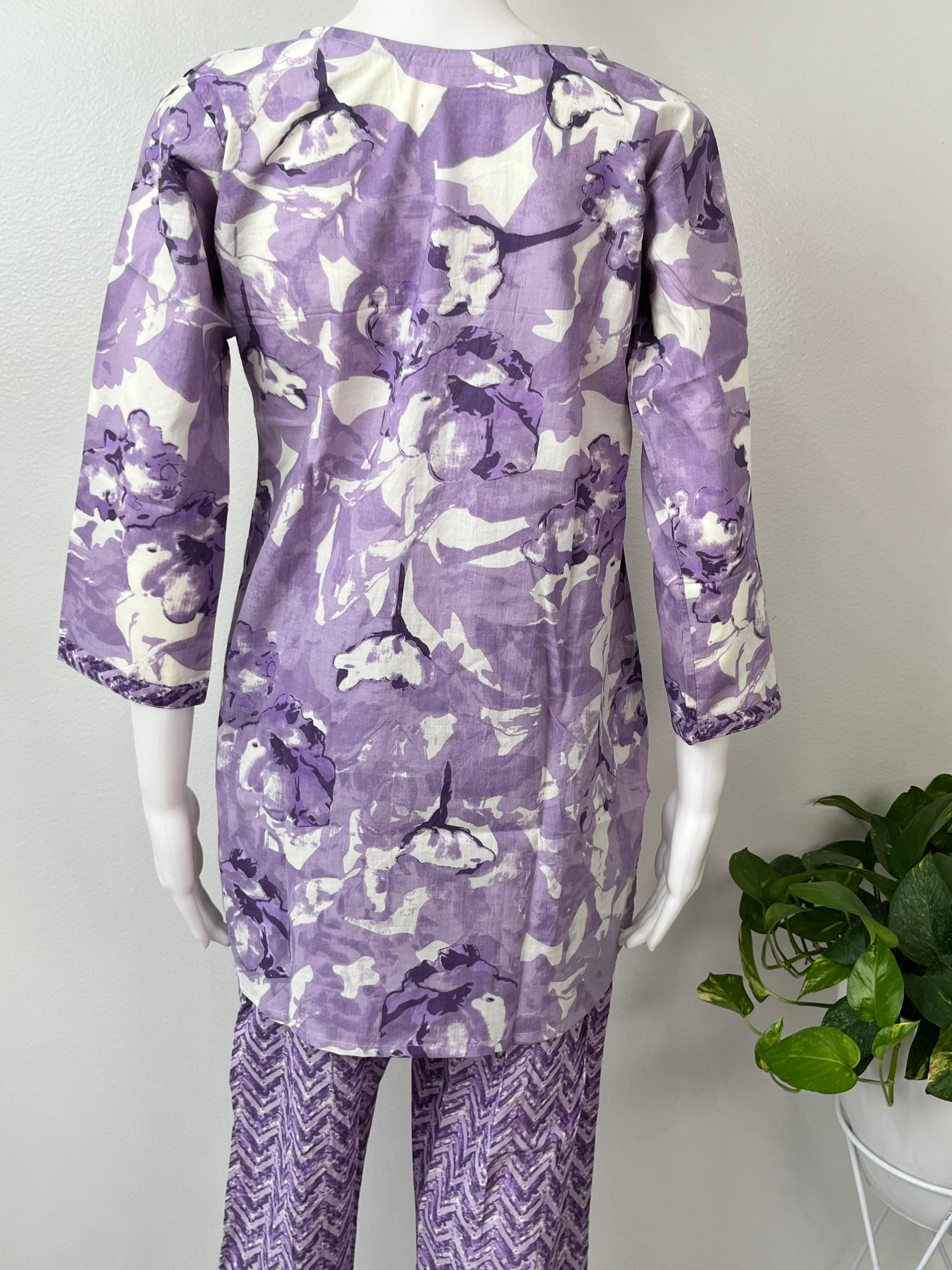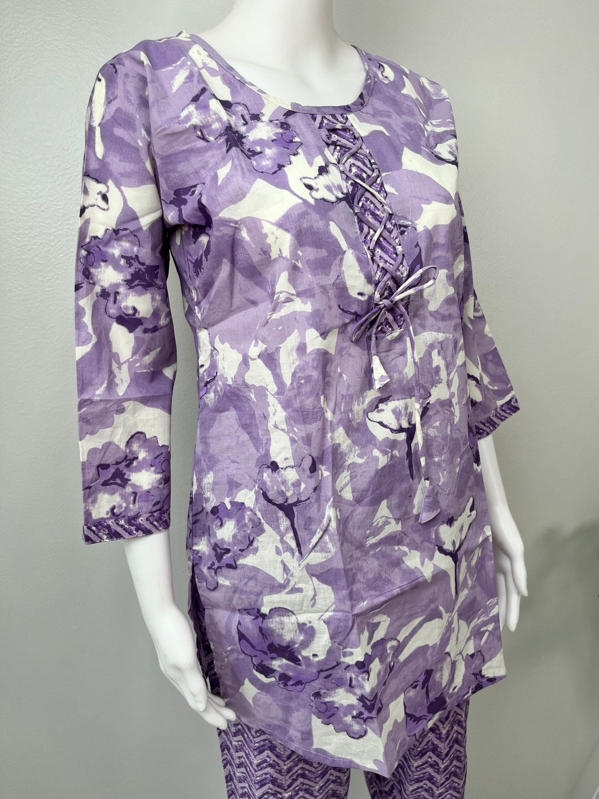 Lavender Bloom Cotton Night Suit Top & Bottom Set