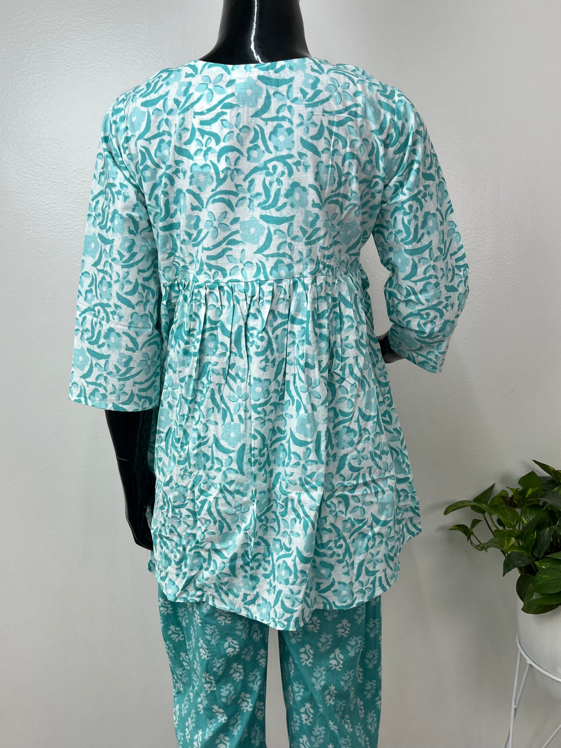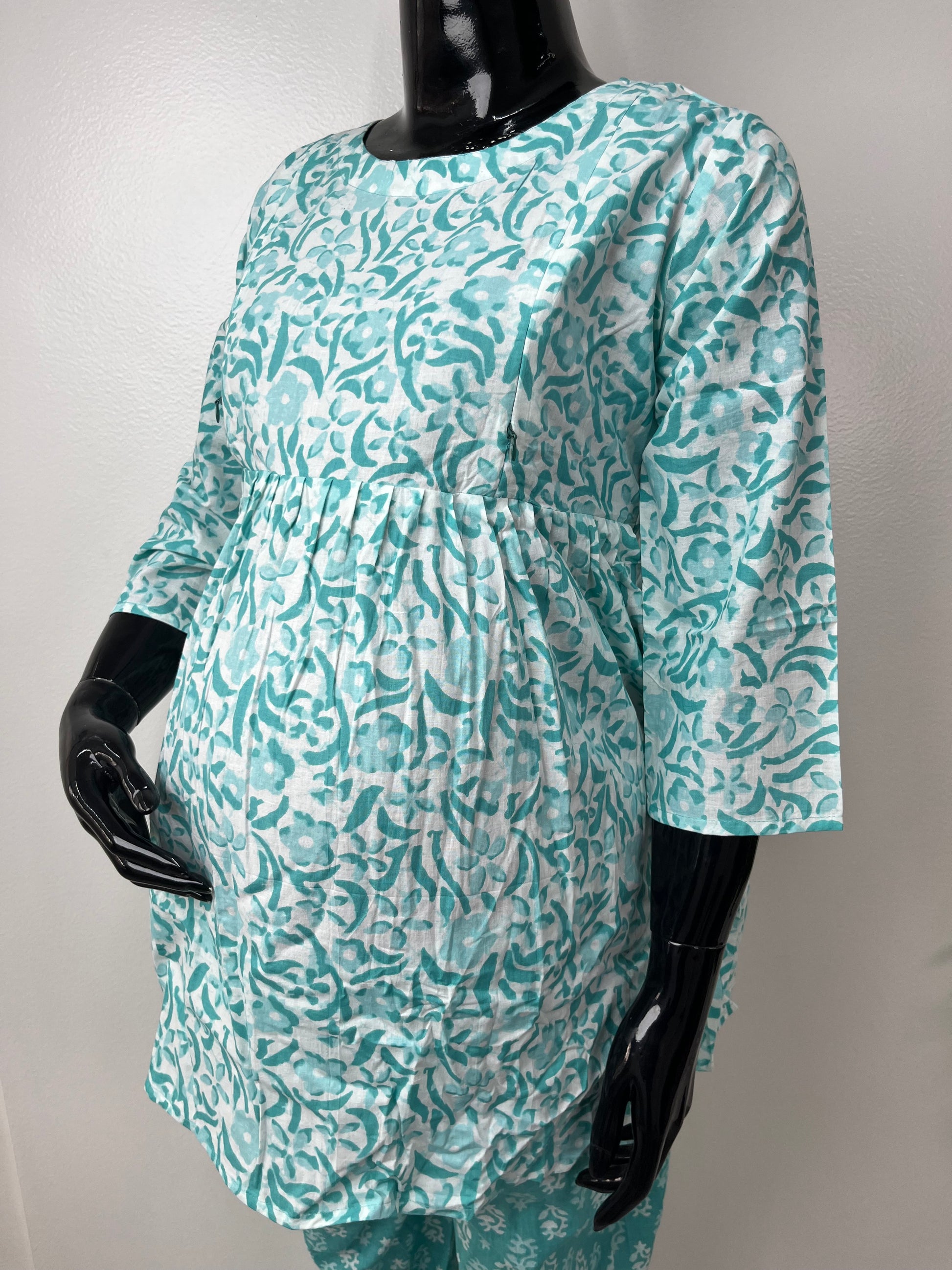 Sky Blue Pure Cotton Fabric Maternity Co-ord Set.