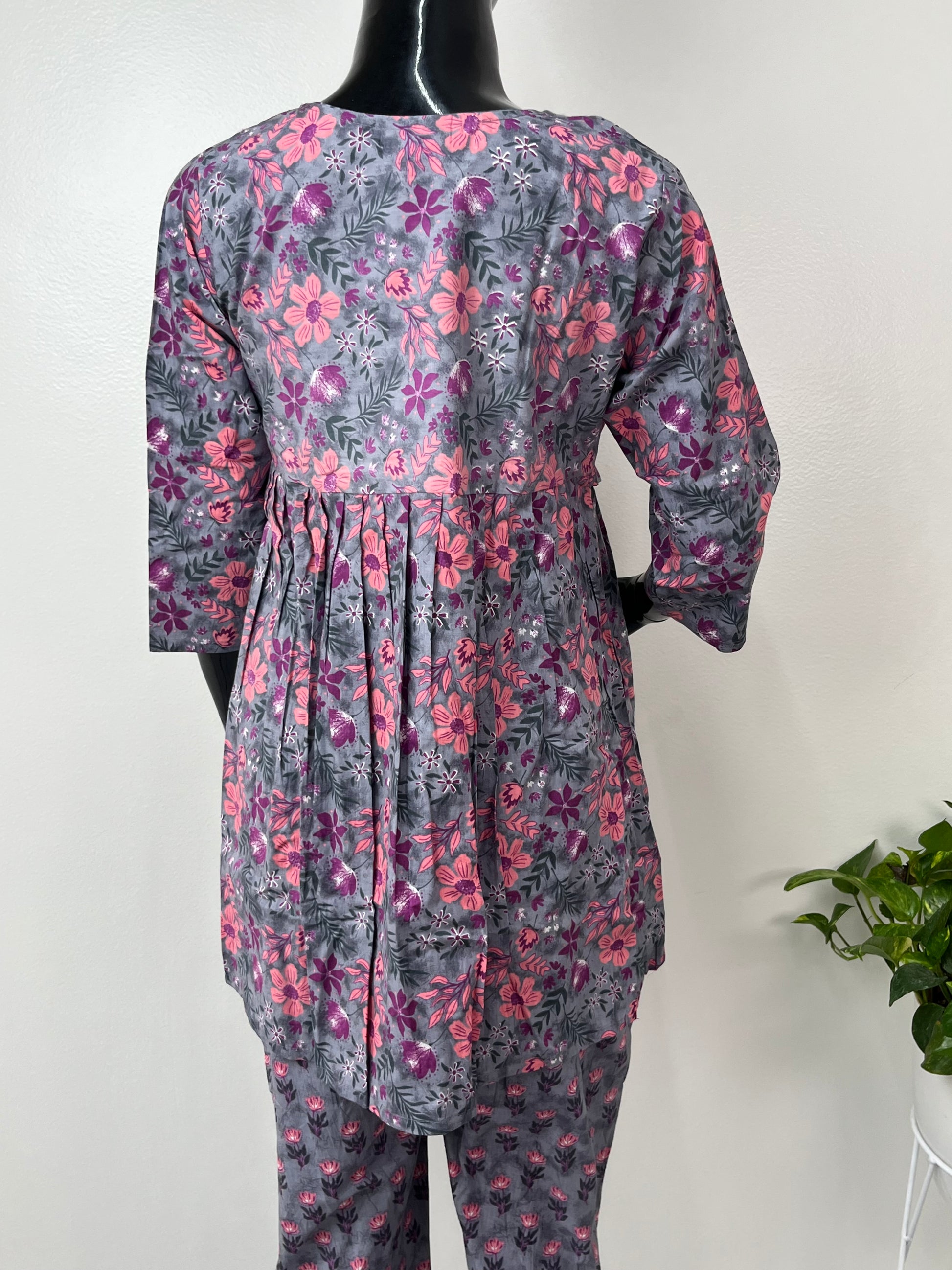 Grey & Pink Pure Cotton Fabric Maternity Co-ord Set