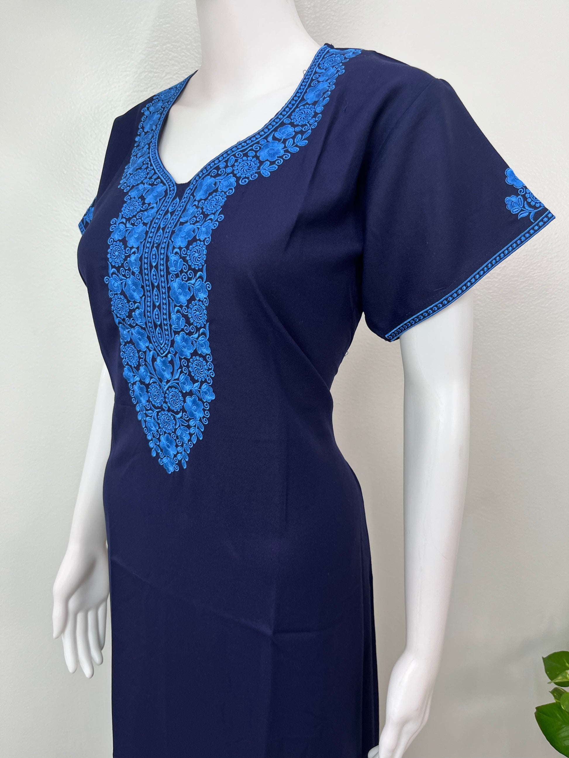 Navy Blue Alpine Bliss Embroidered Nightgown
