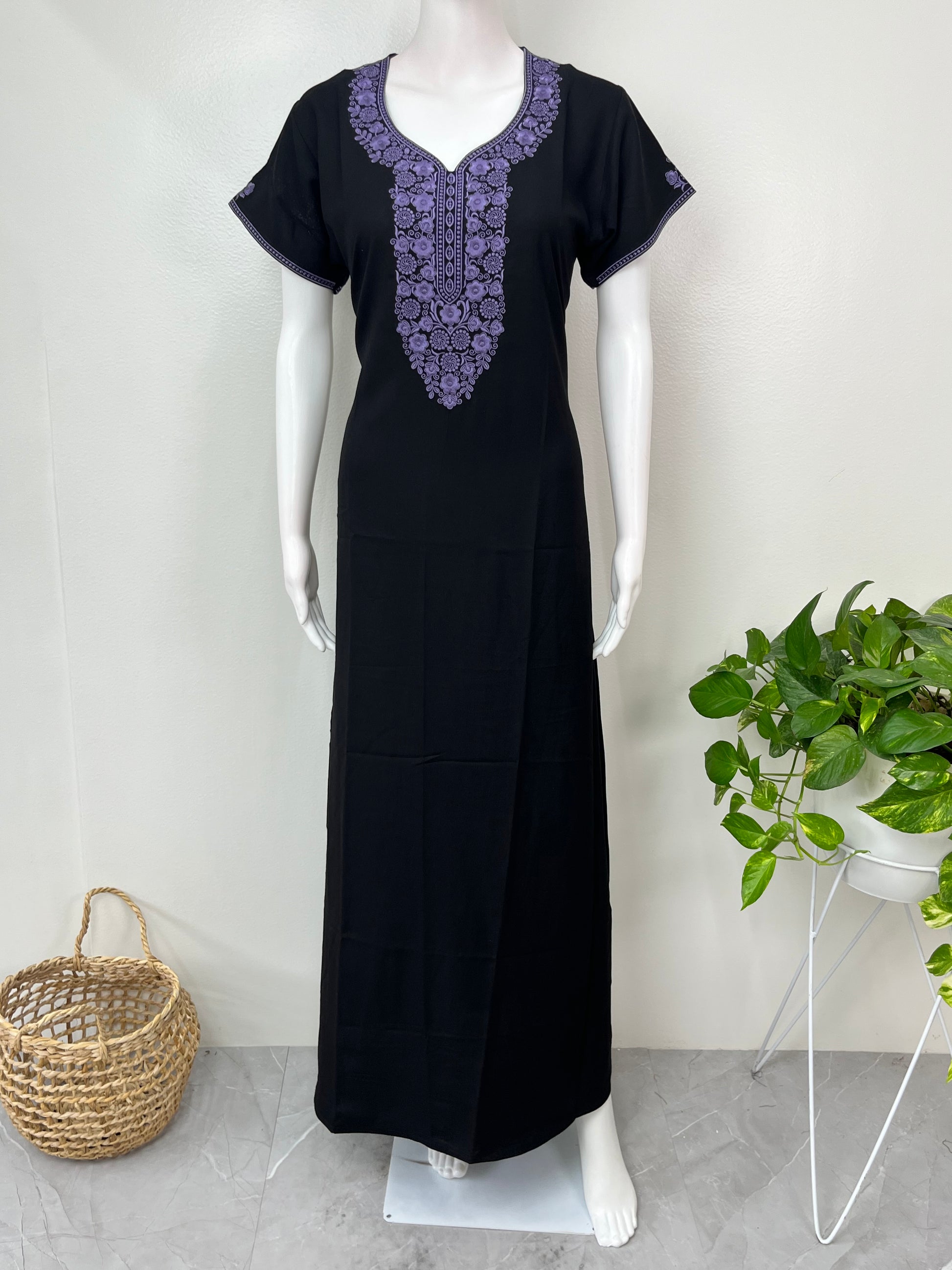 Black Premium Alpine Embroidered Nightgown