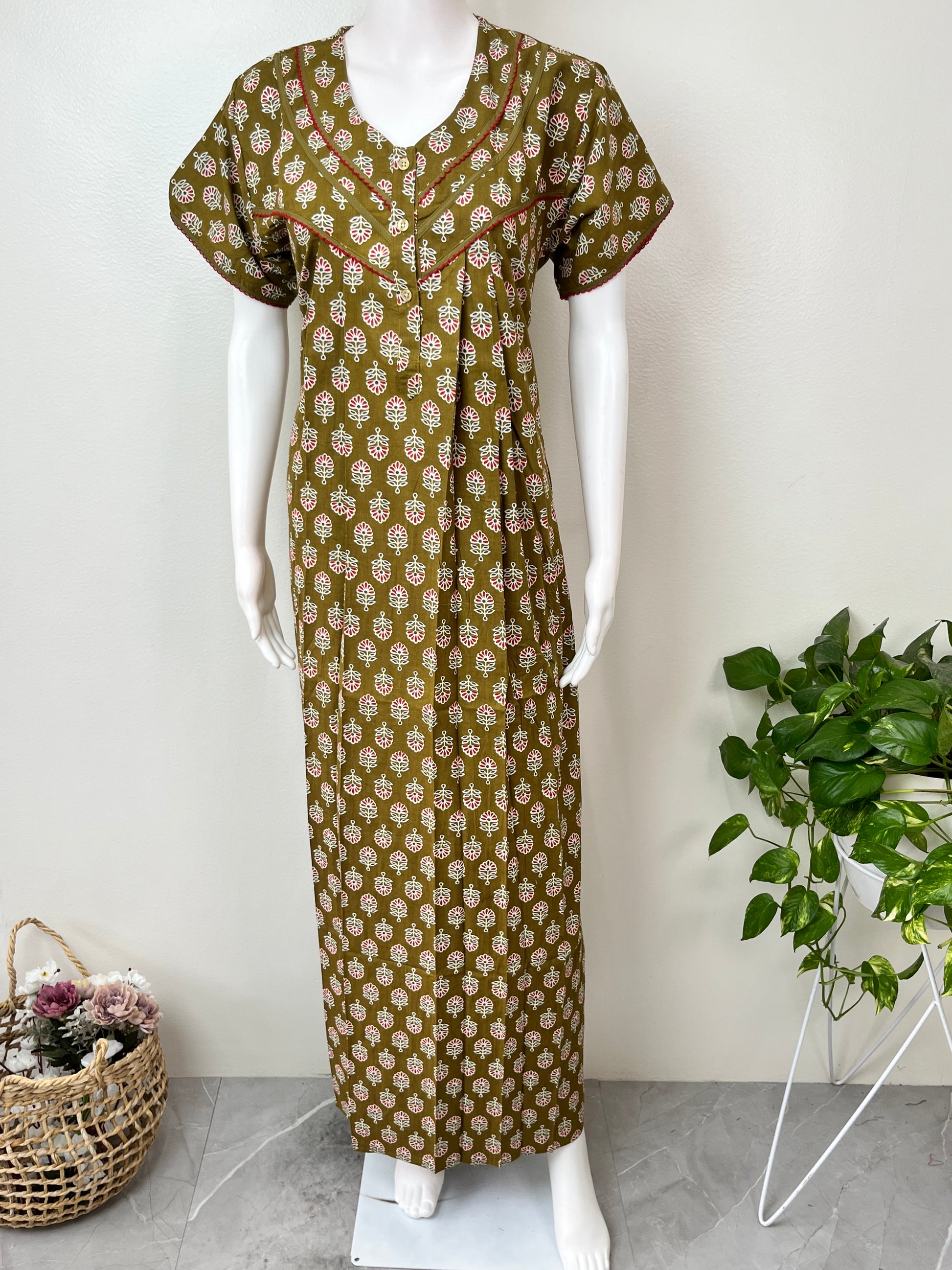 Olive Green Pure Cotton Nighty Elegant & Comfortable