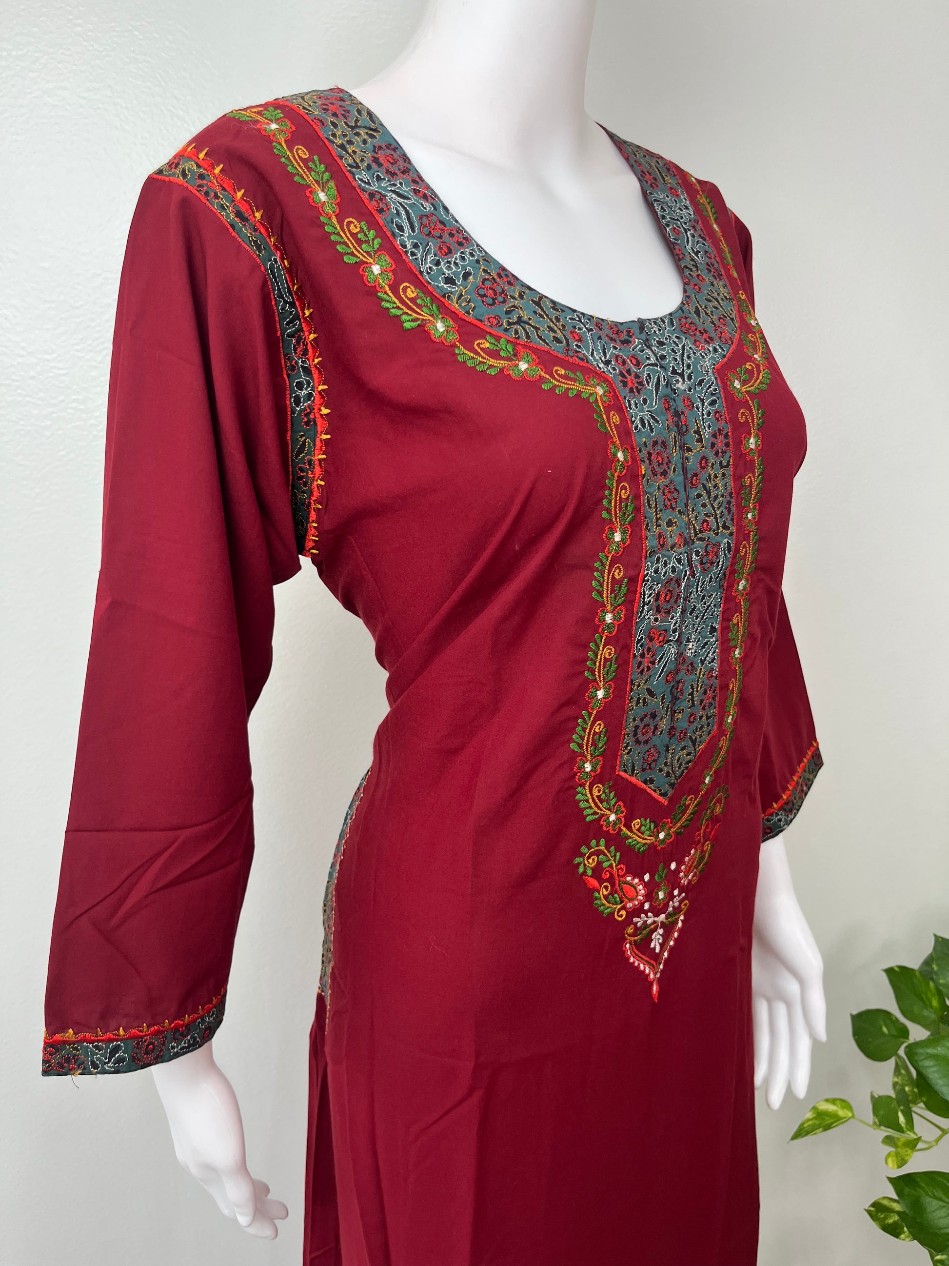 Maroon Classic Charm Bizzylizzy Nighty with 3/4 Sleeves