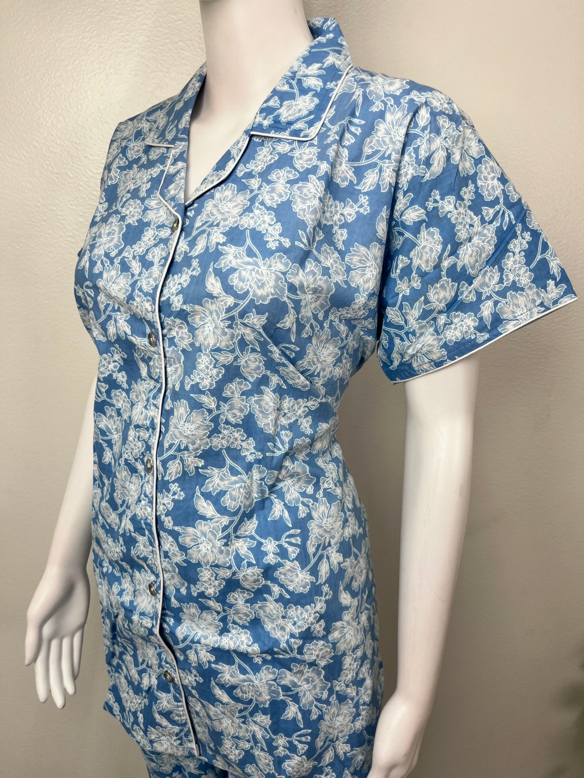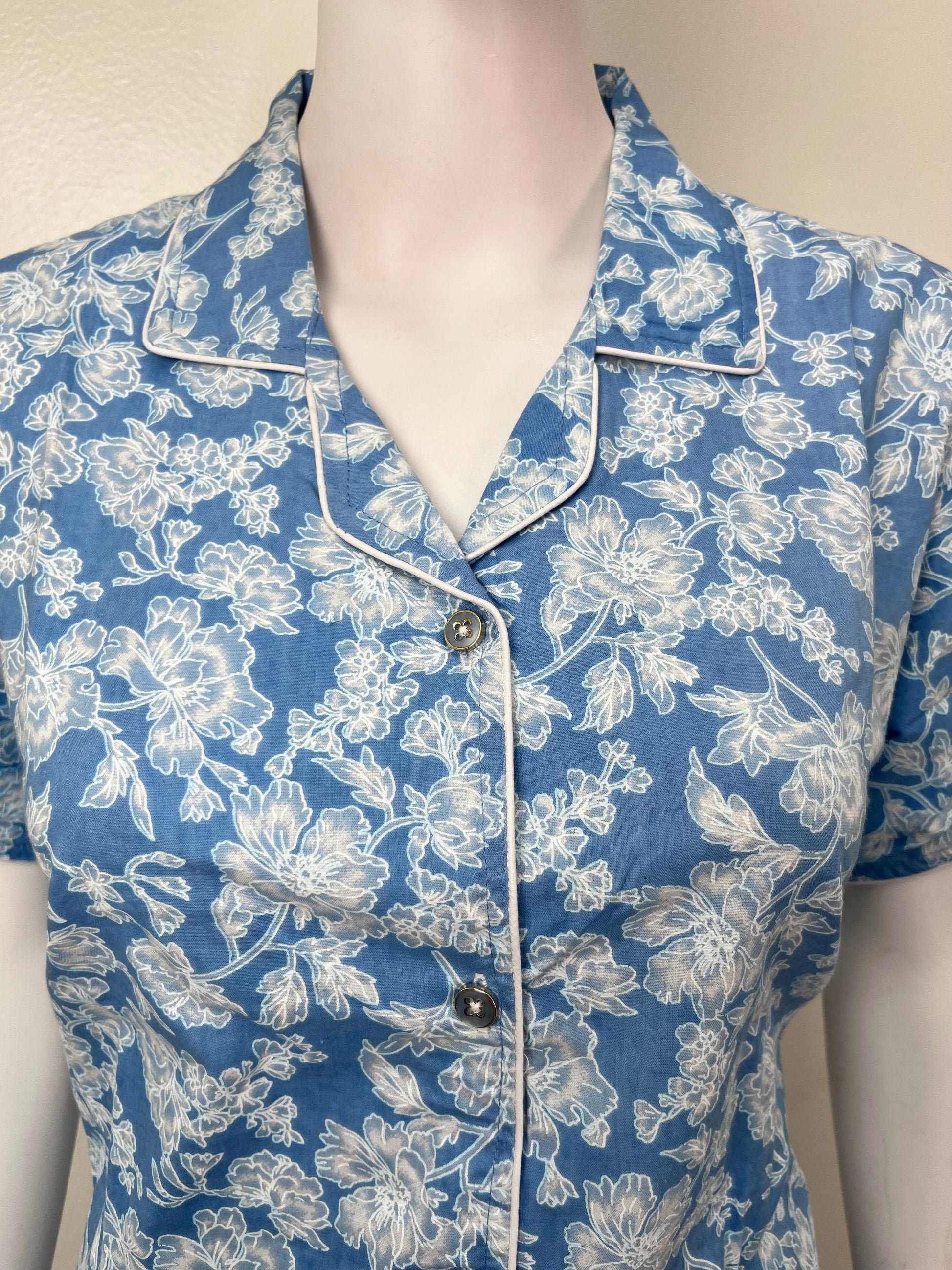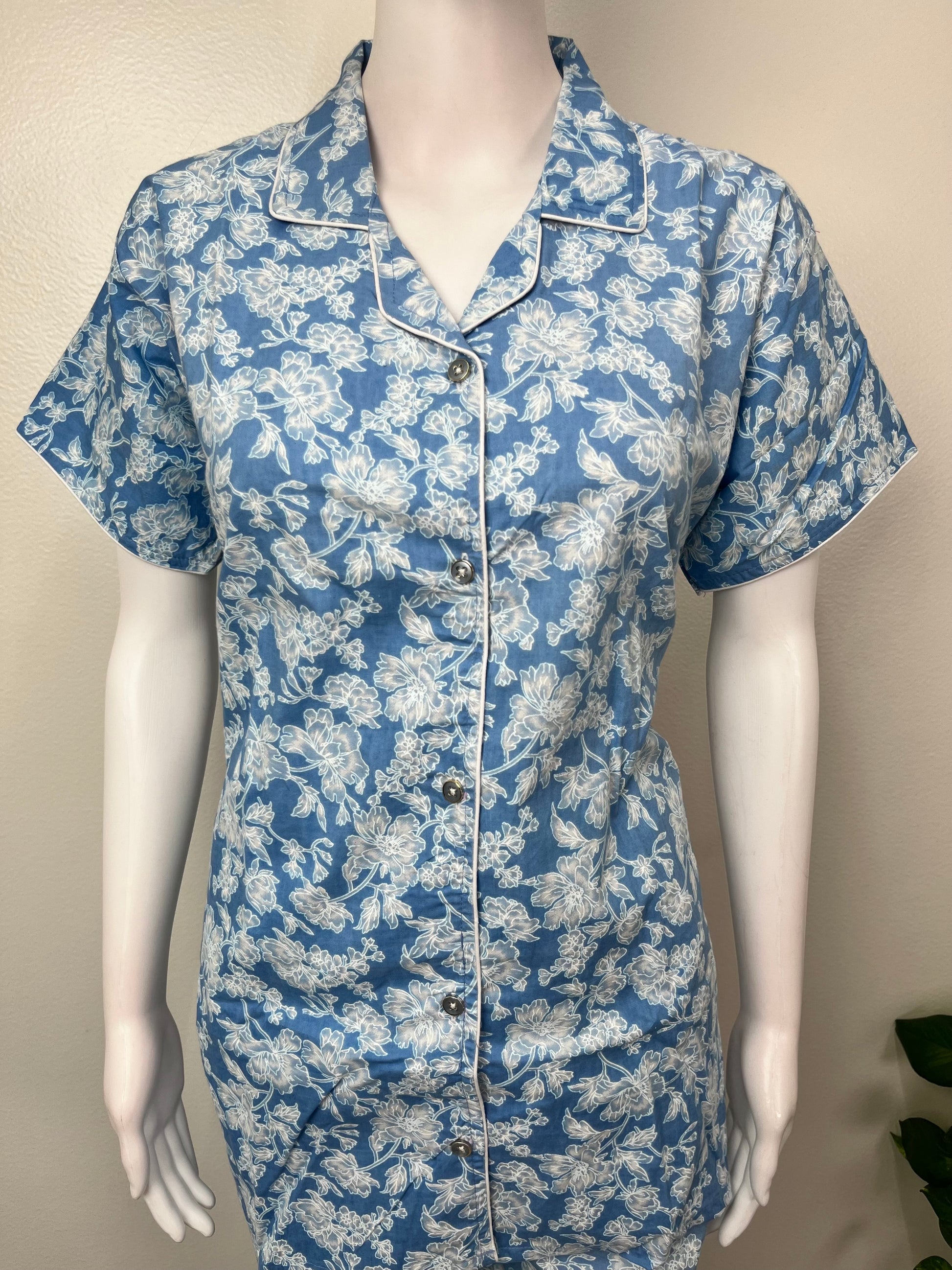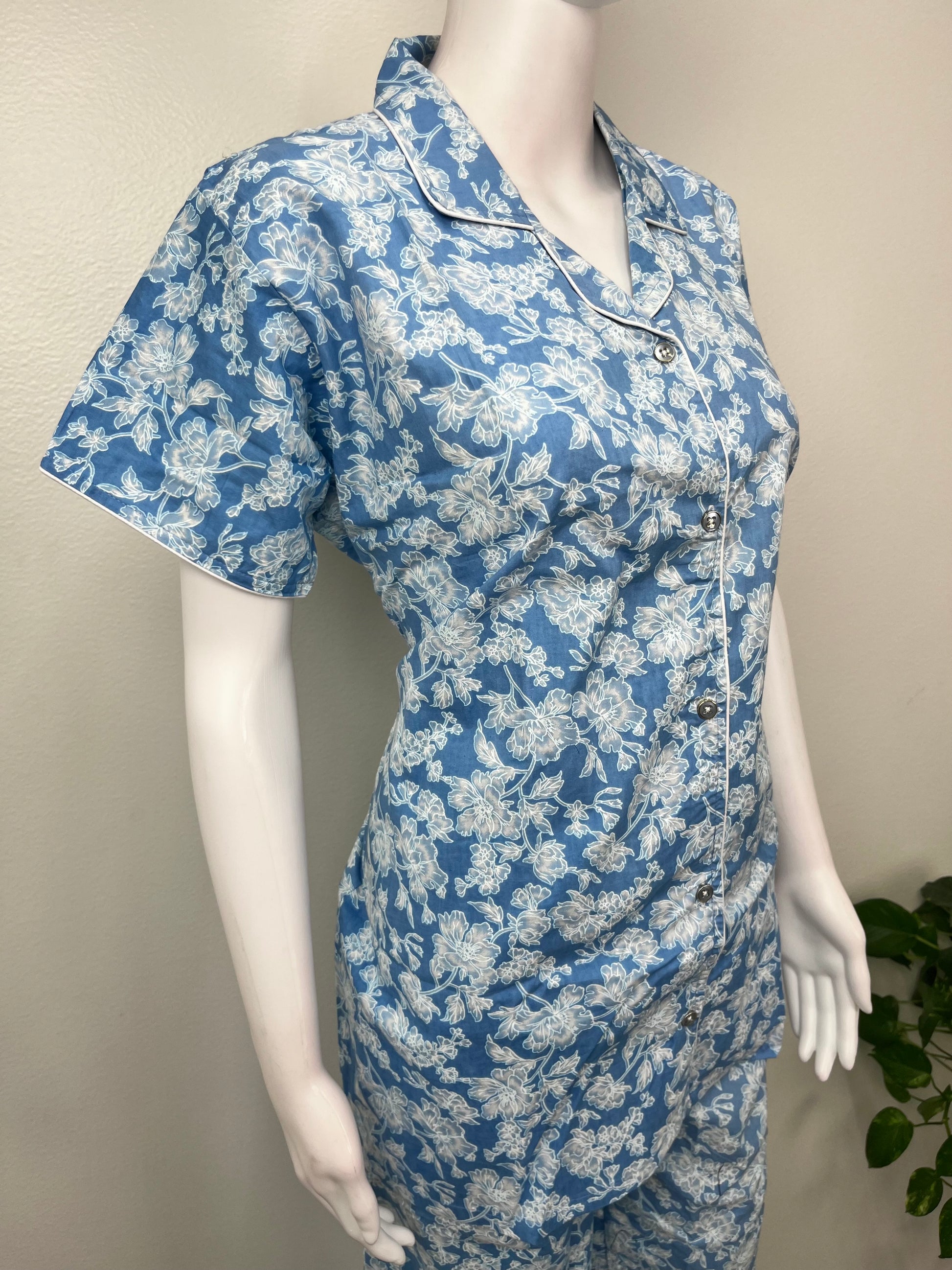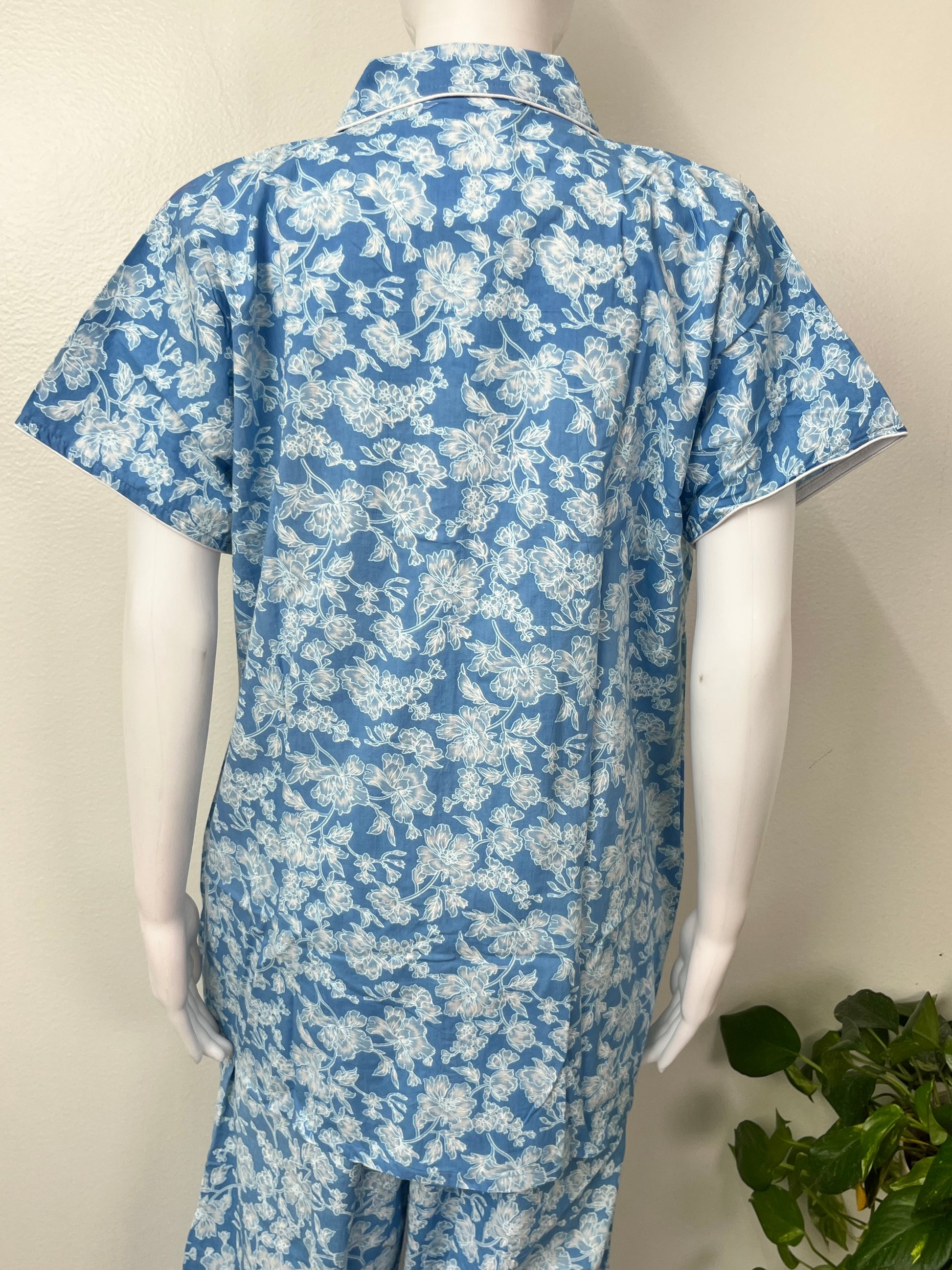 Sky Blue Classic Cotton Nightwear Set- Button Shirt & Pyjamas