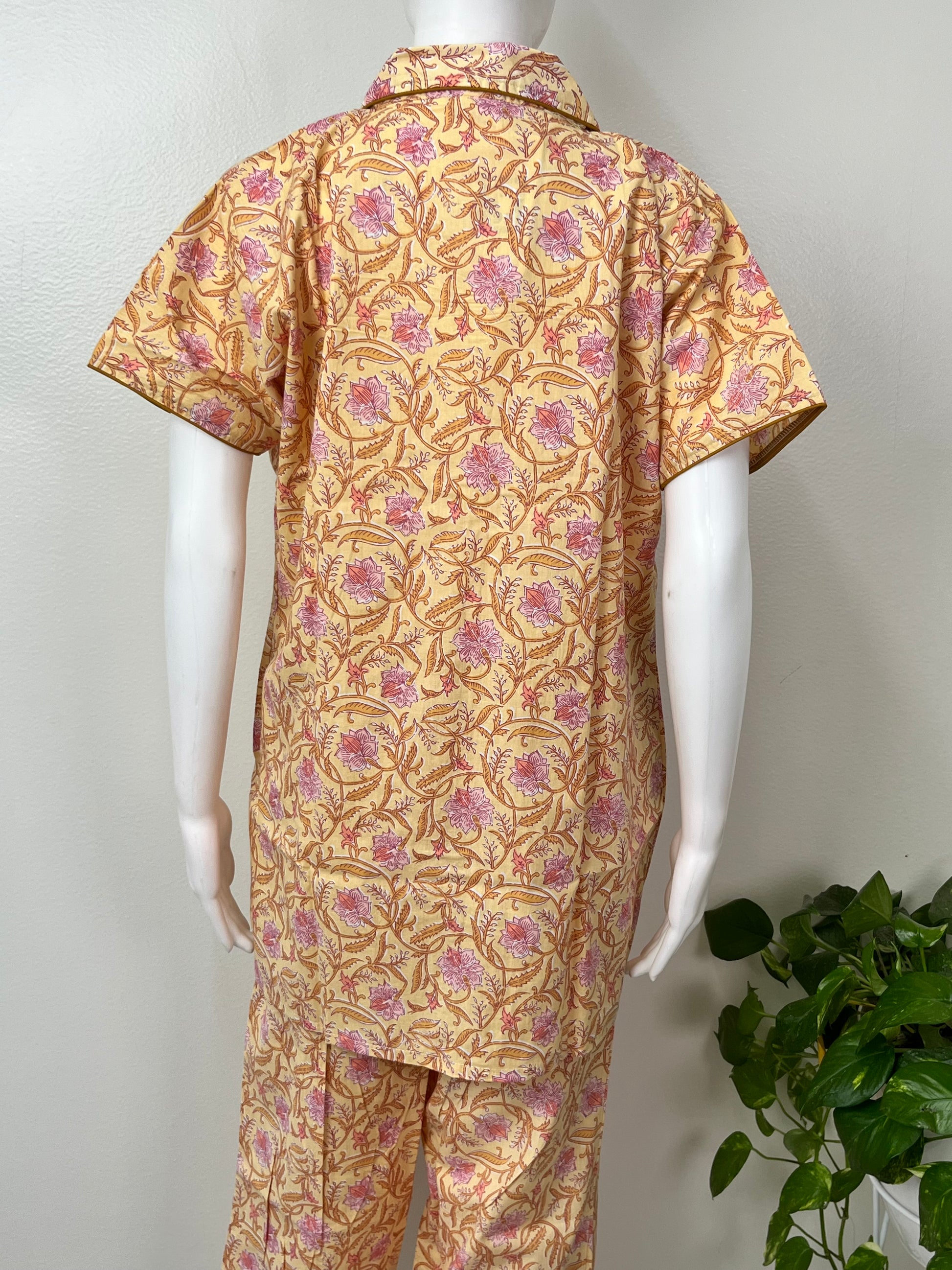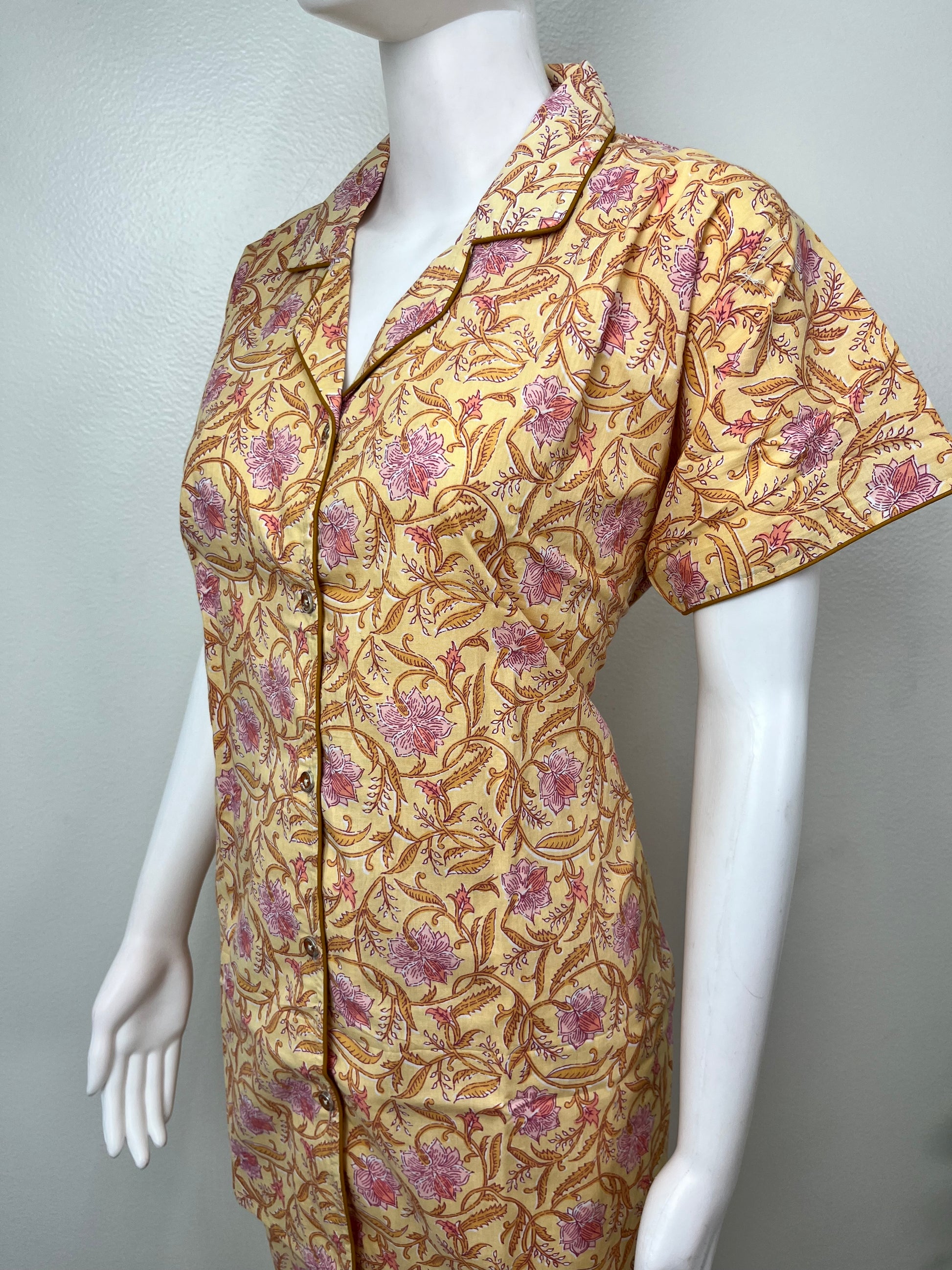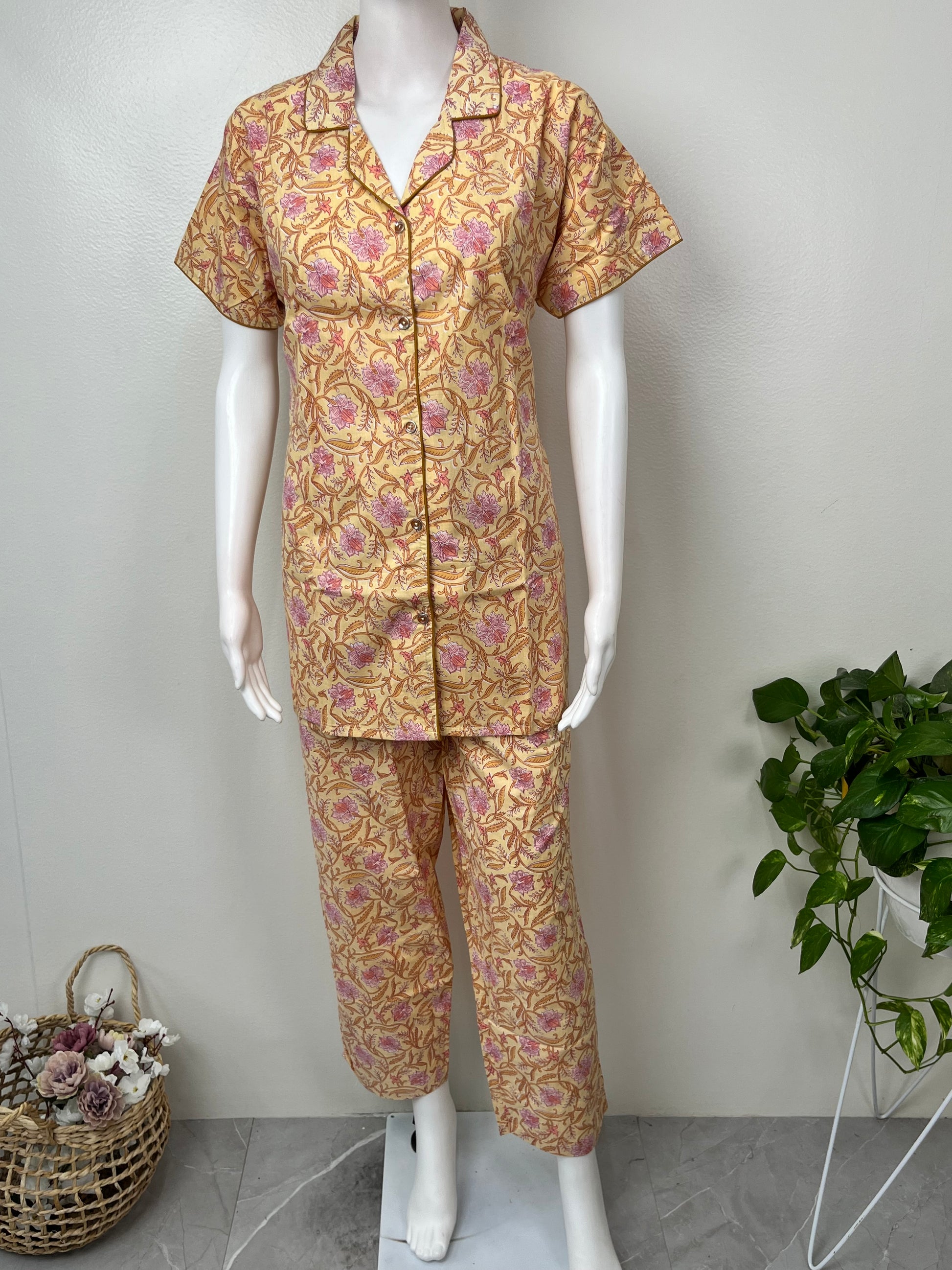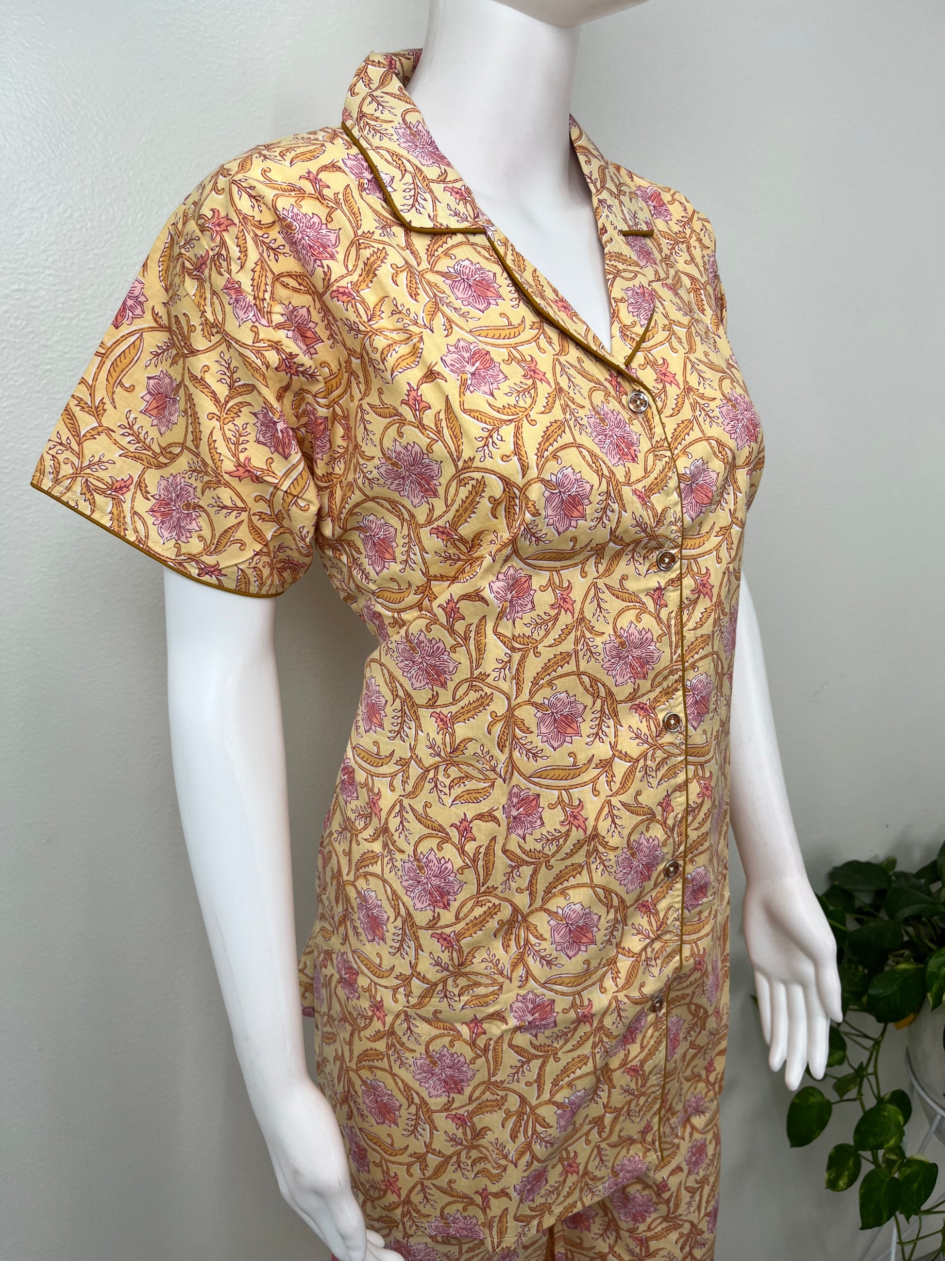 Women's Cotton Pyjama Set- Night Suit in Yellow