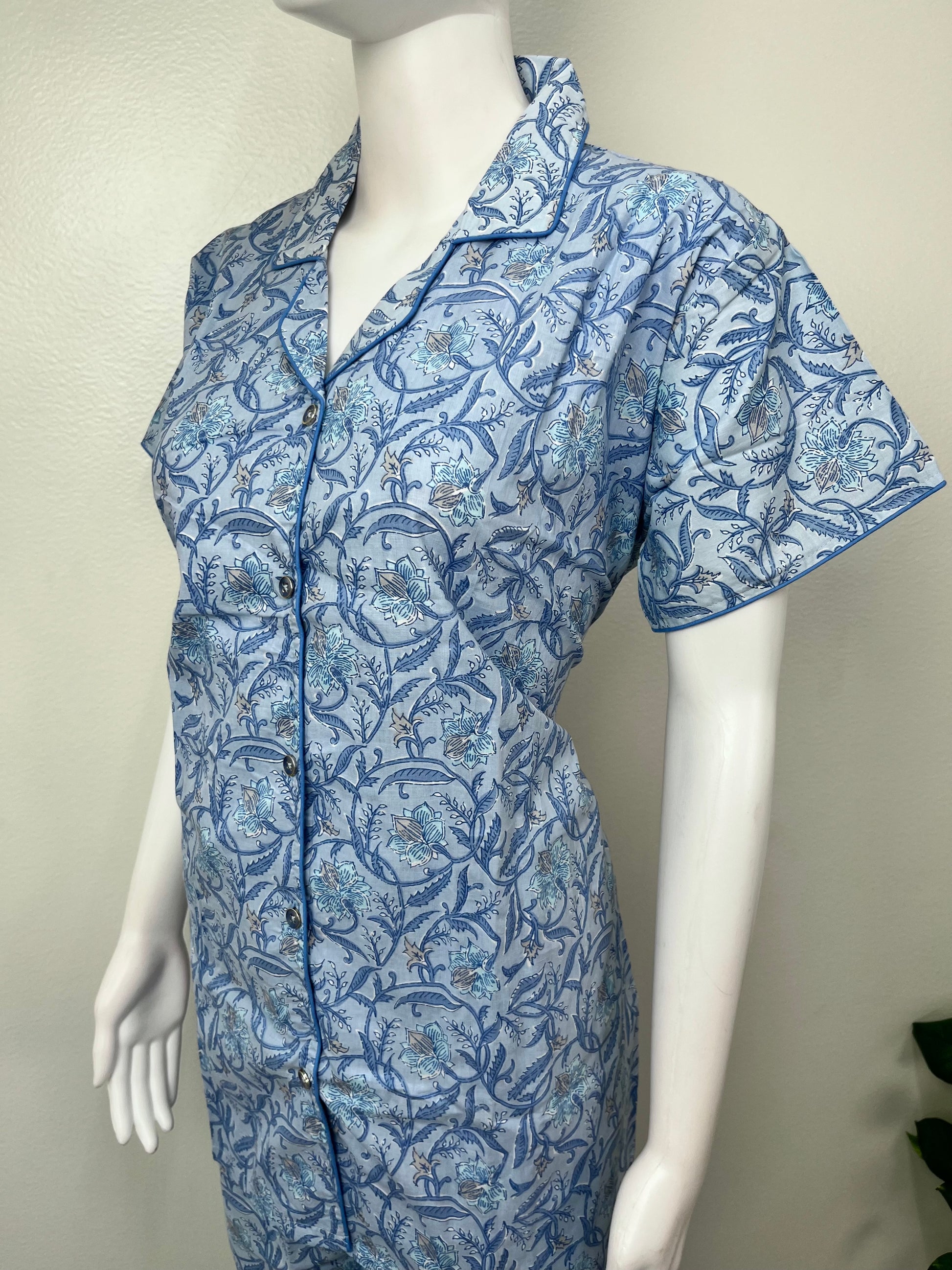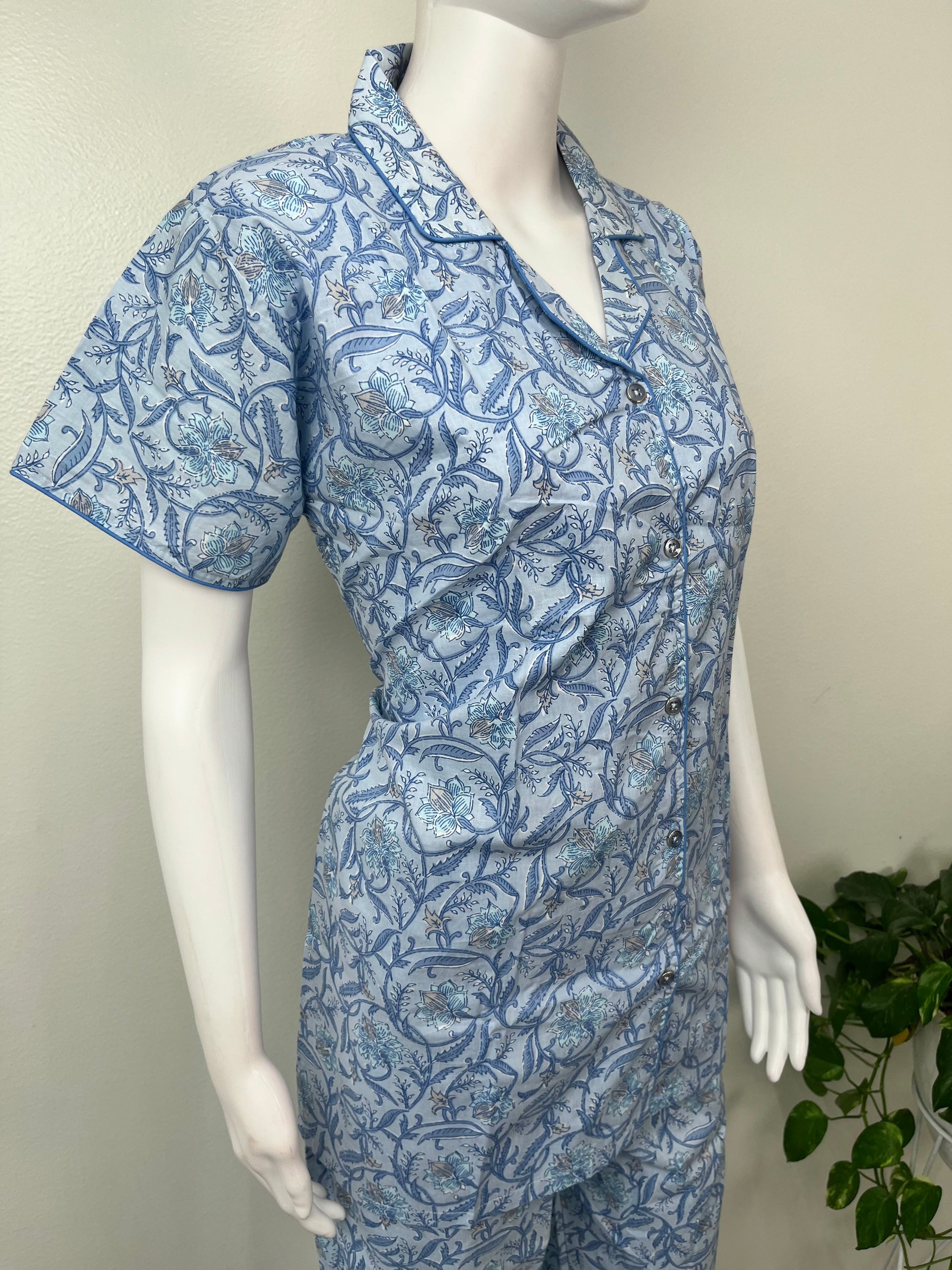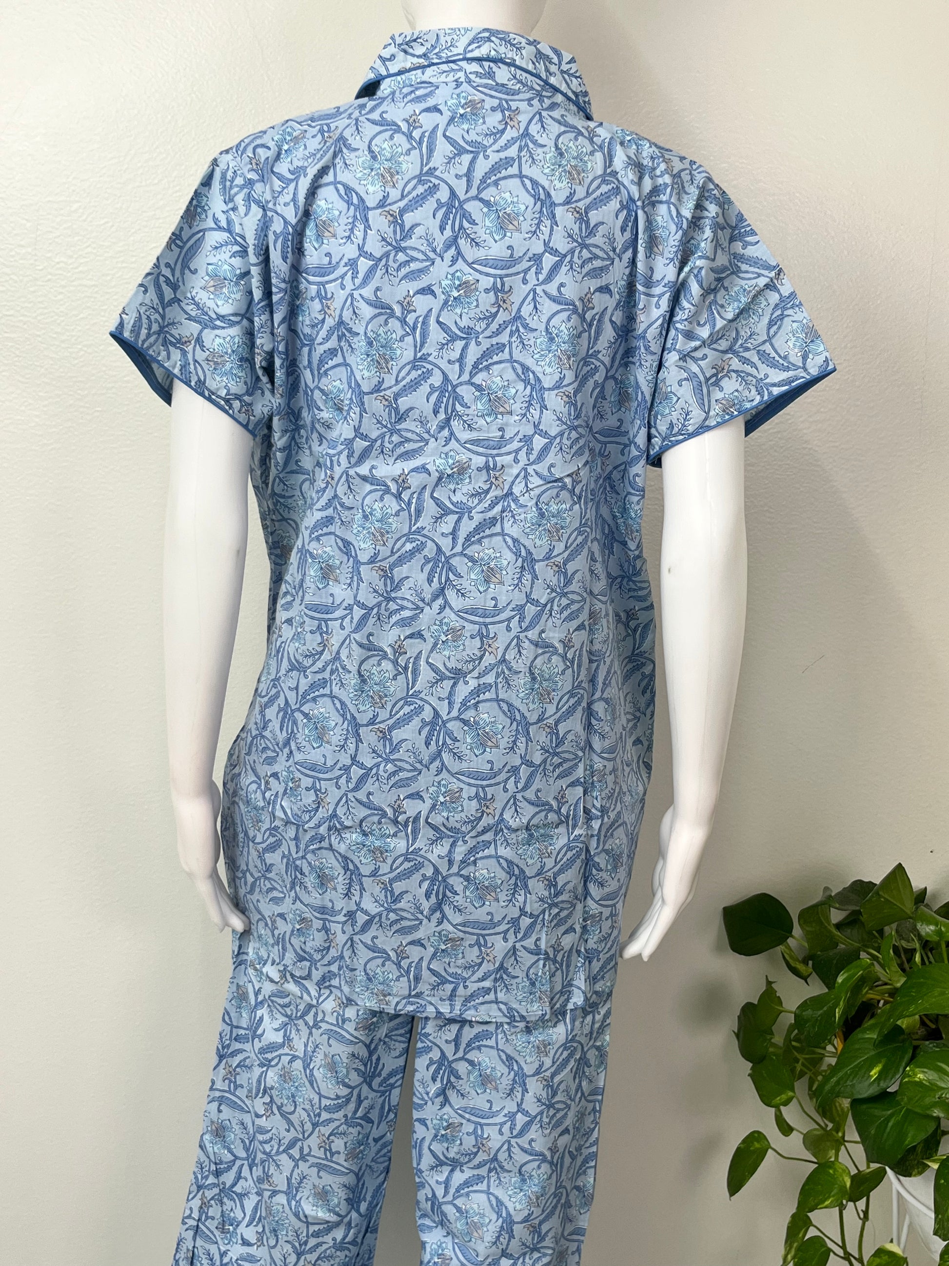 - Style & Fit: Features a button-down shirt with a classic collar and matching straight-fit pants with two side pockets for convenience.