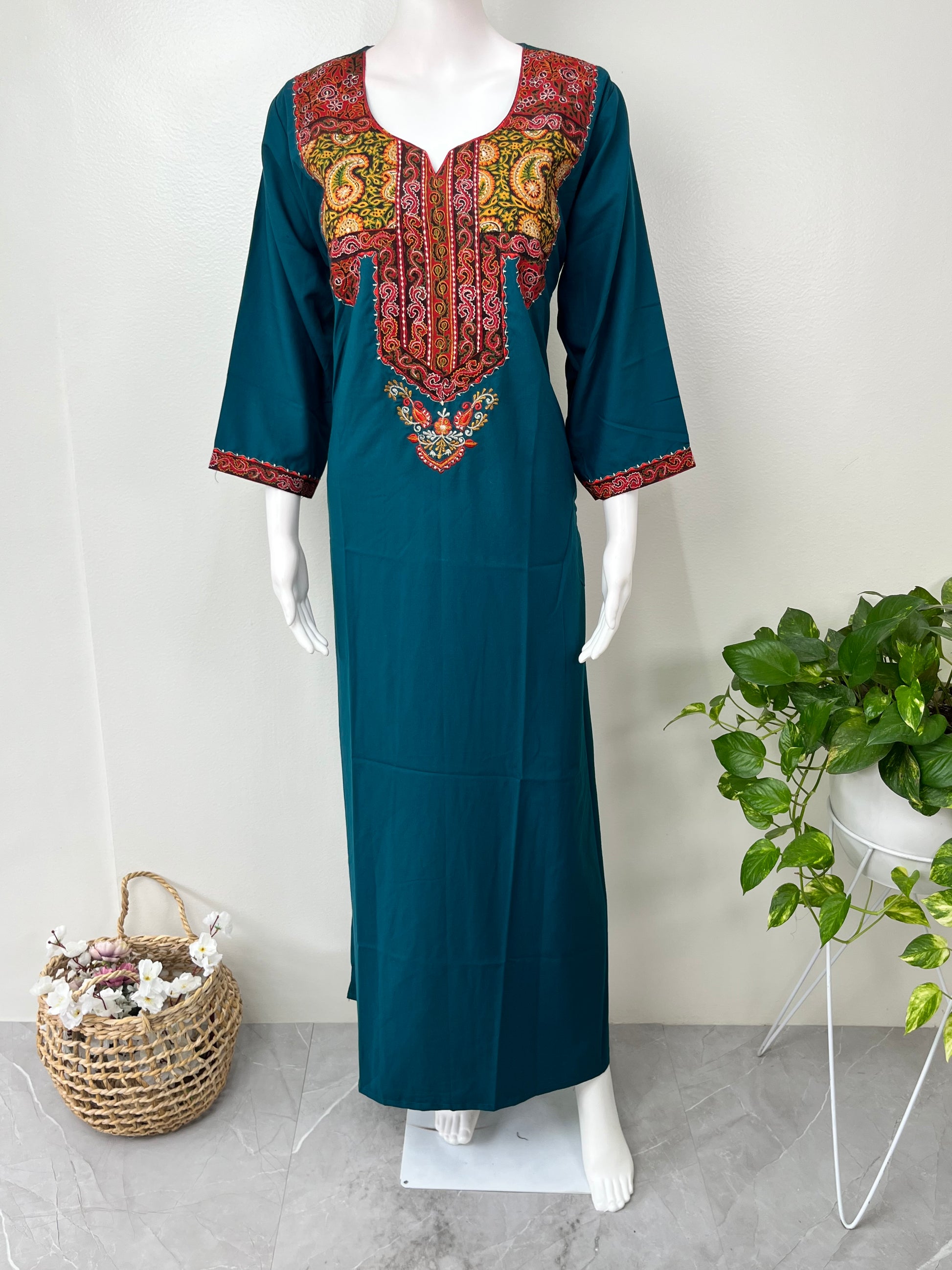 Teal Blue Delicate Embroidery Bizzylizzy Nightgown