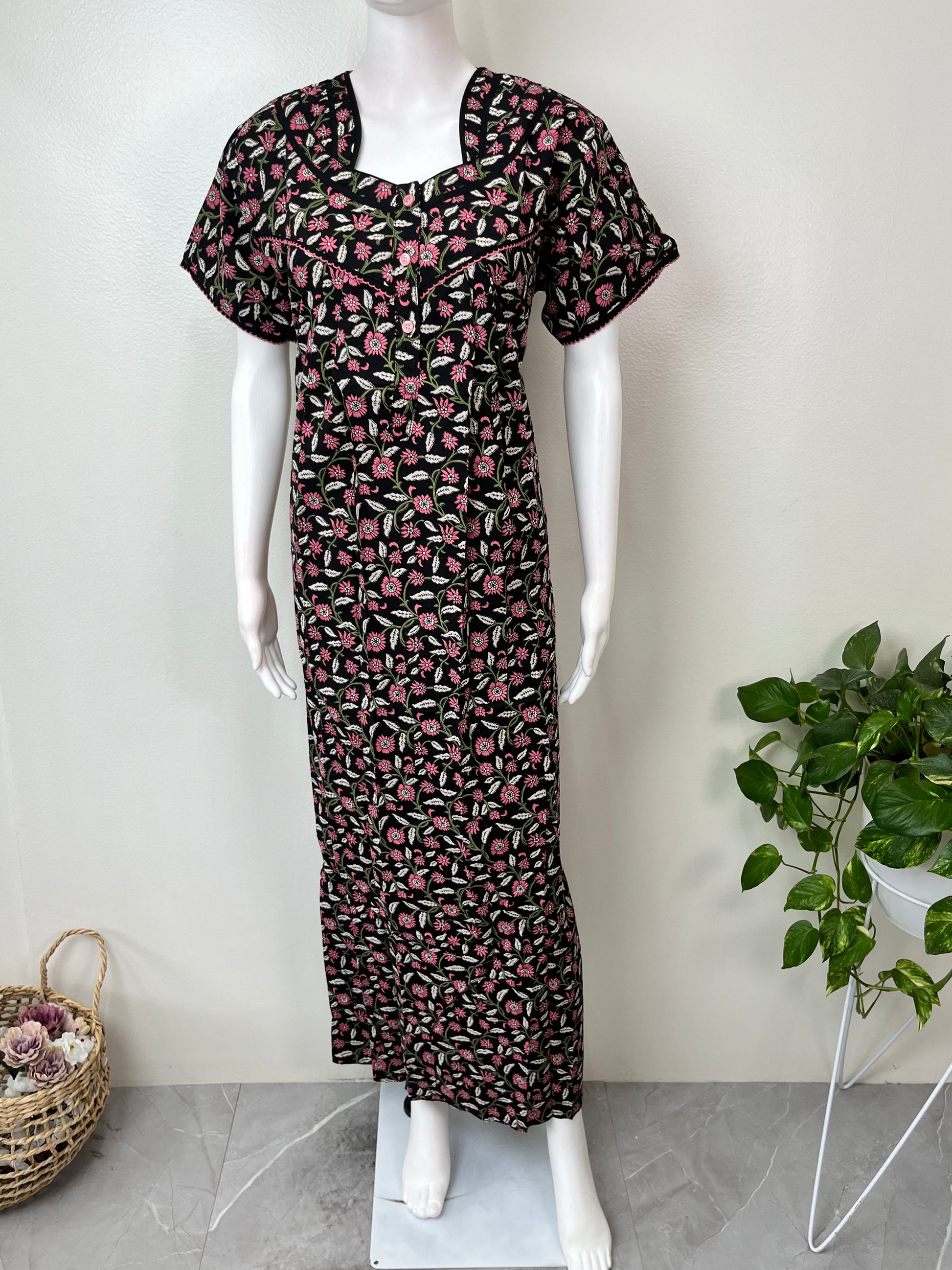 Black Pure Cotton Nighty Soft & Comfortable