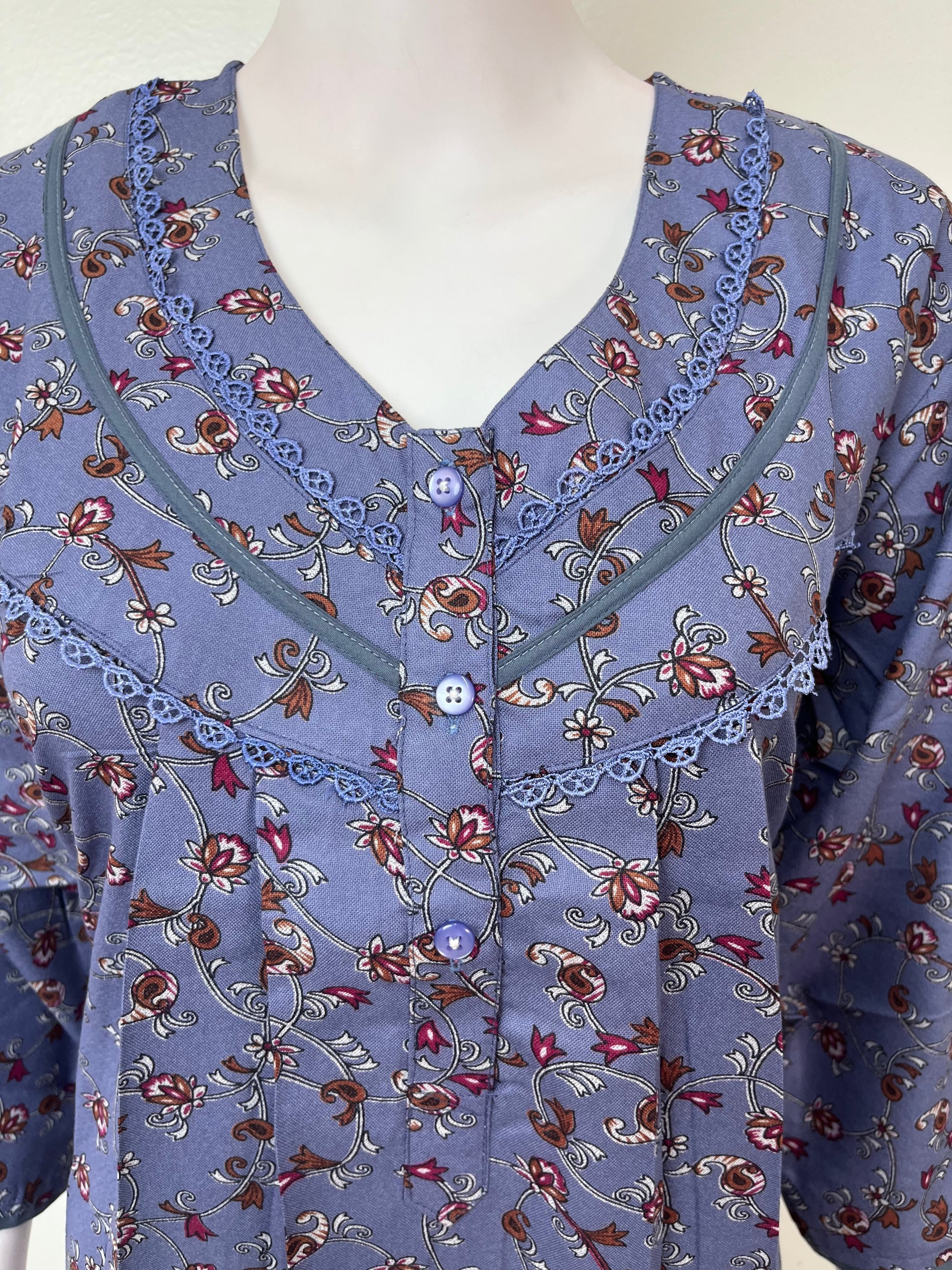 Purple Alpine Fabric 3/4th Sleeves Nightgown