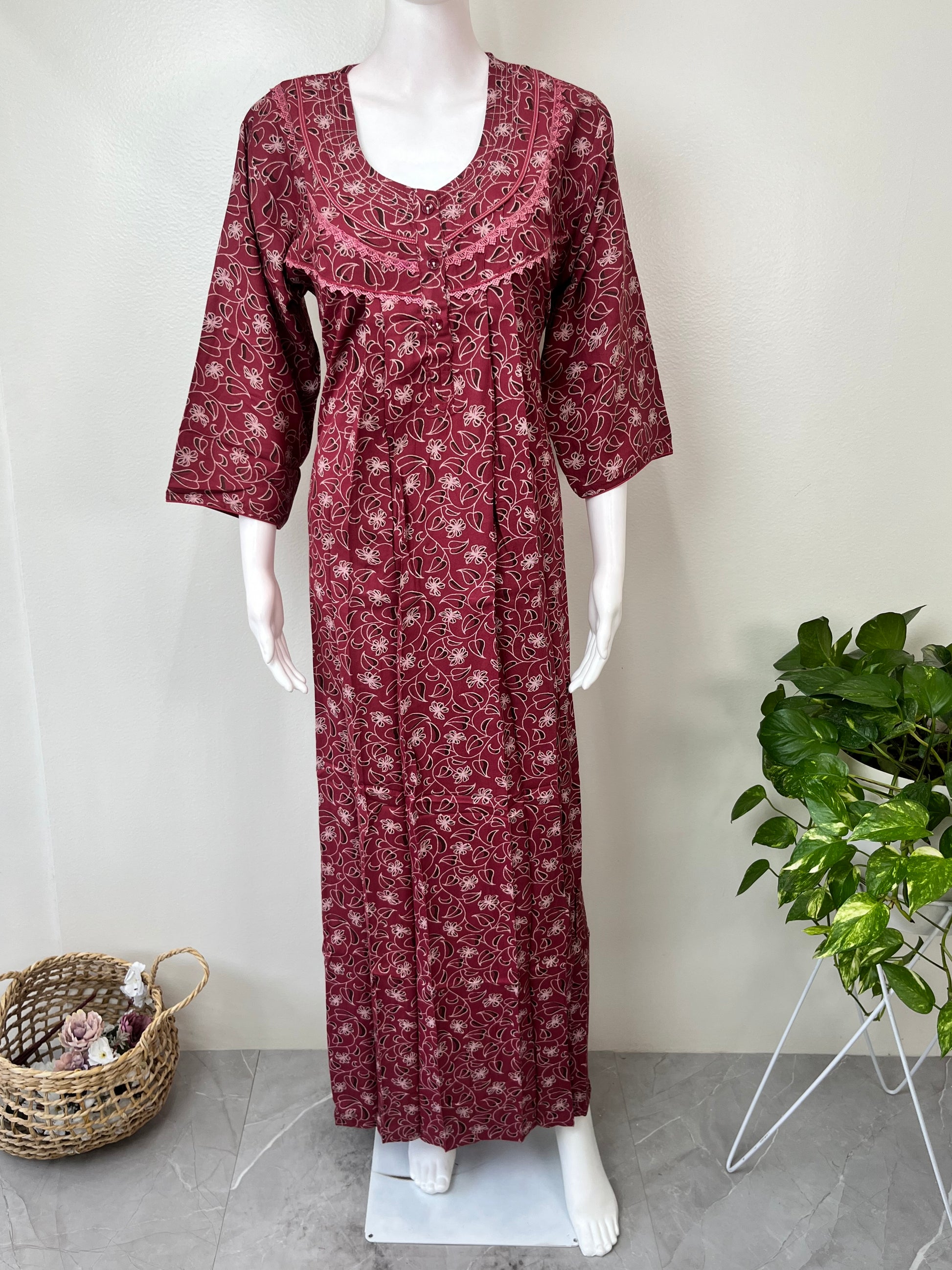 Pink Alpine Fabric Long Sleeves Nightgown