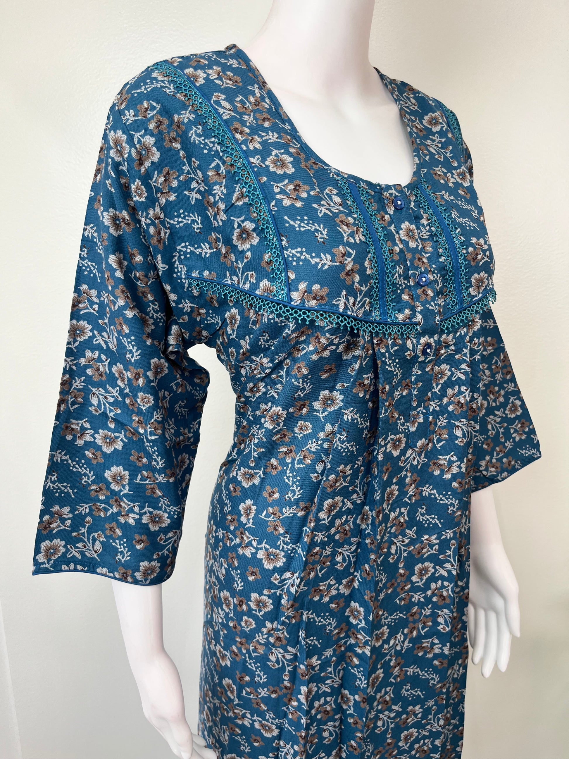 Blue Alpine Fabric Nightgown with 3/4th Sleeves