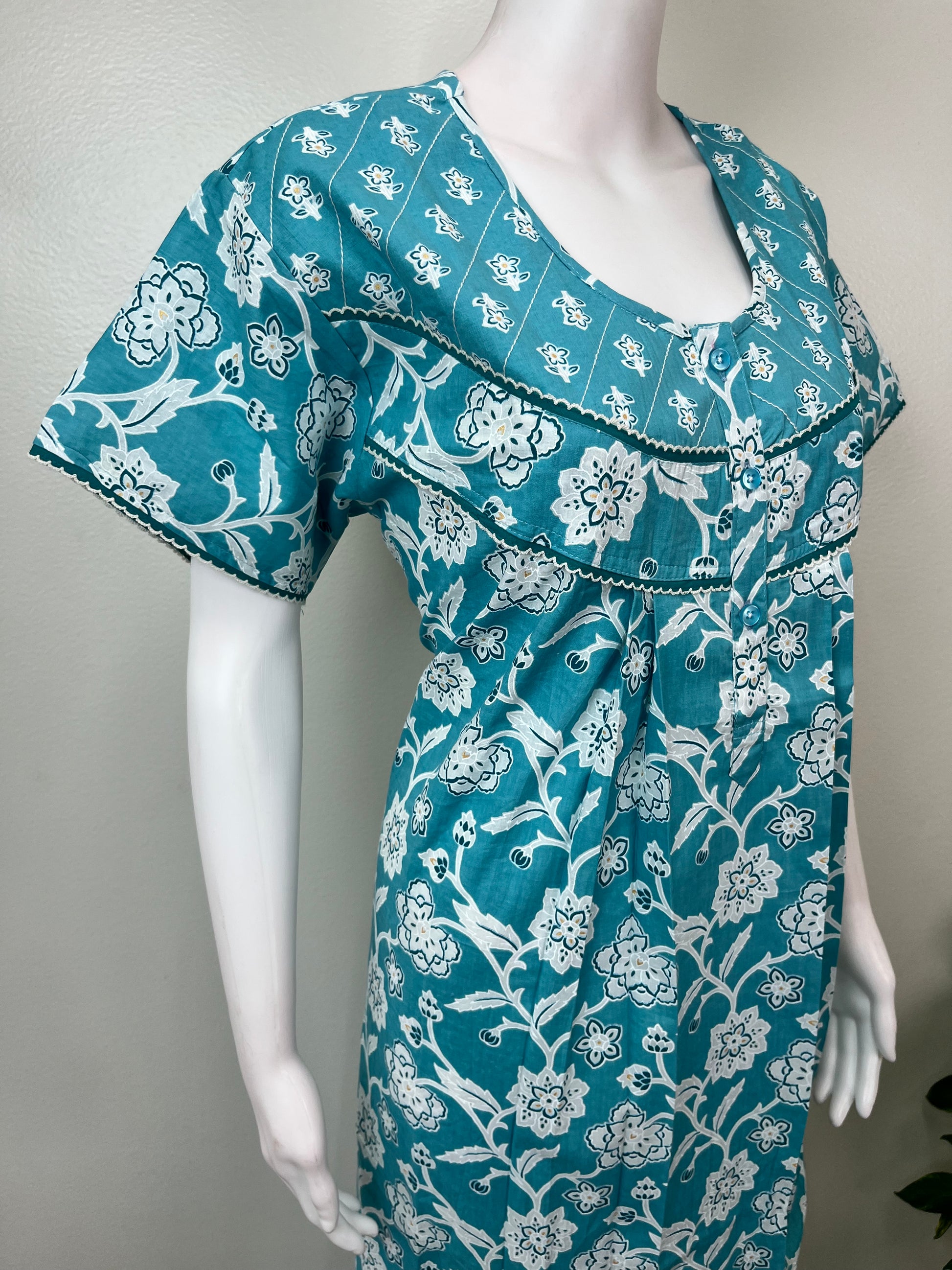 Sky Blue Pure Cotton Nighty Elegant & Comfortable