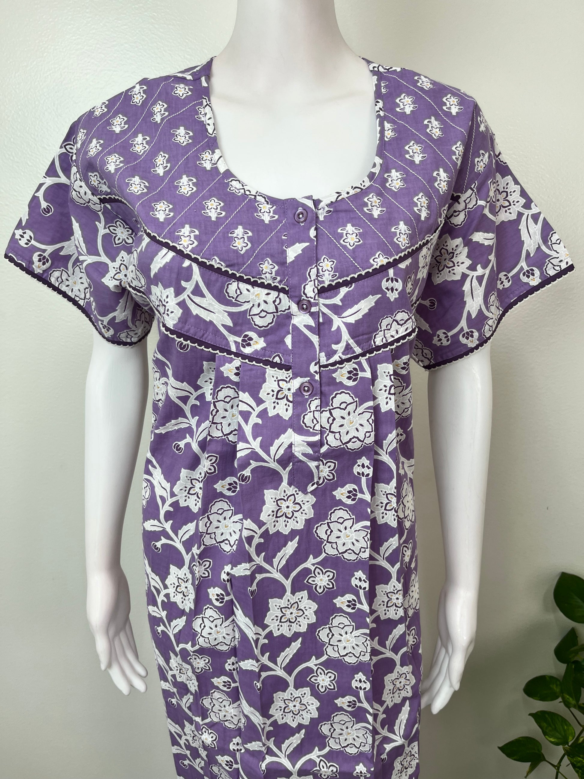 Lavender Pleated Style 100% Cotton Nighty