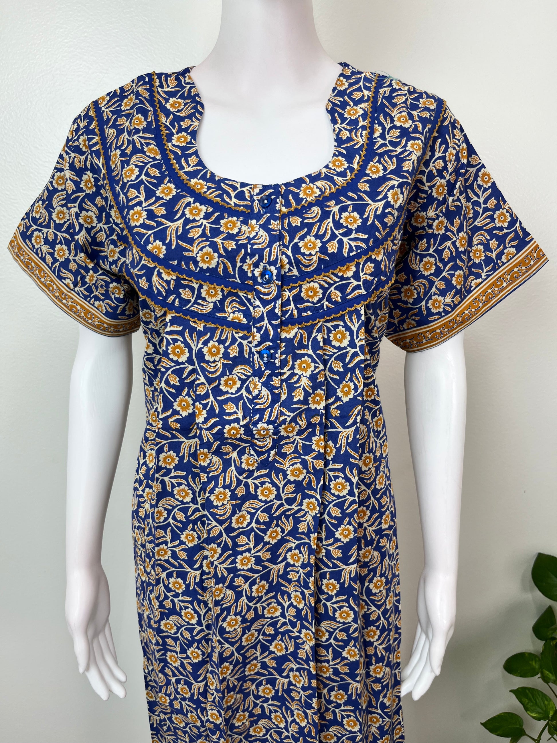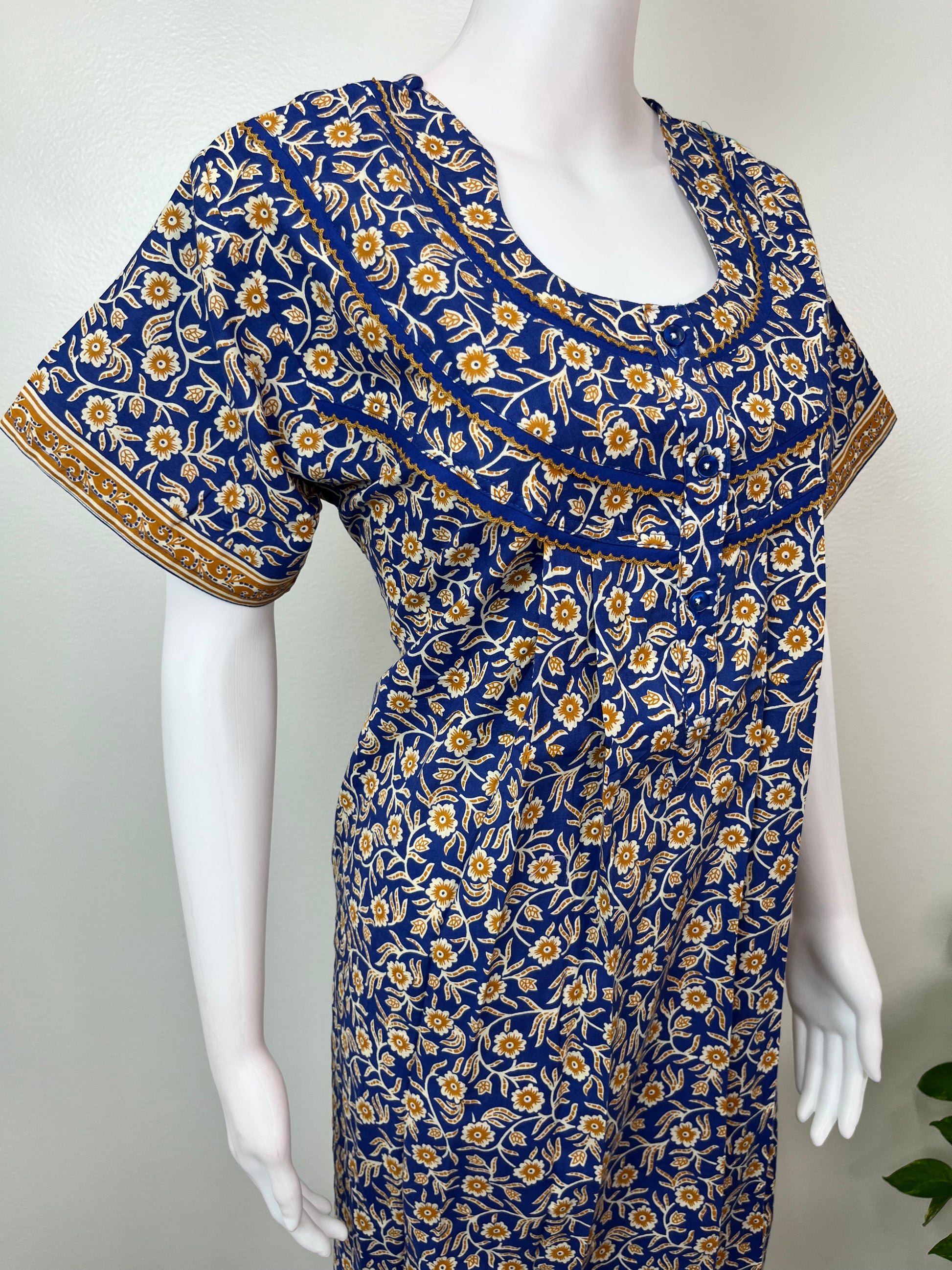 Royal Blue Floral Printed 100% Cotton Nightgown