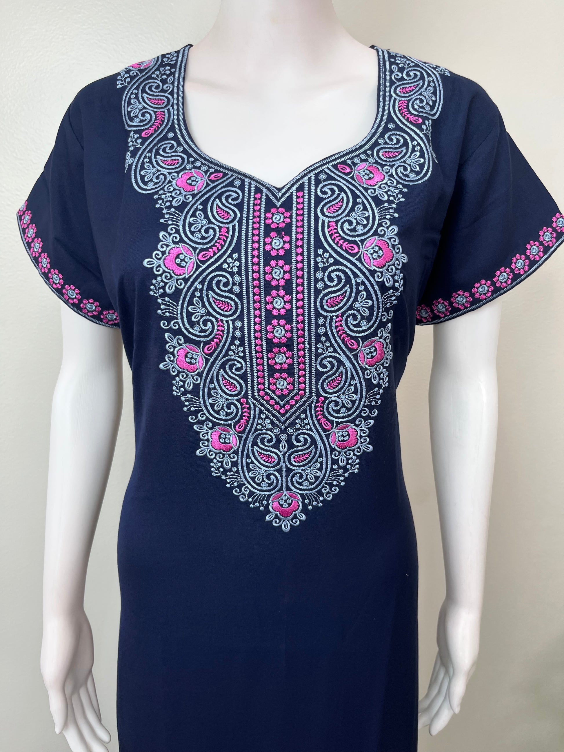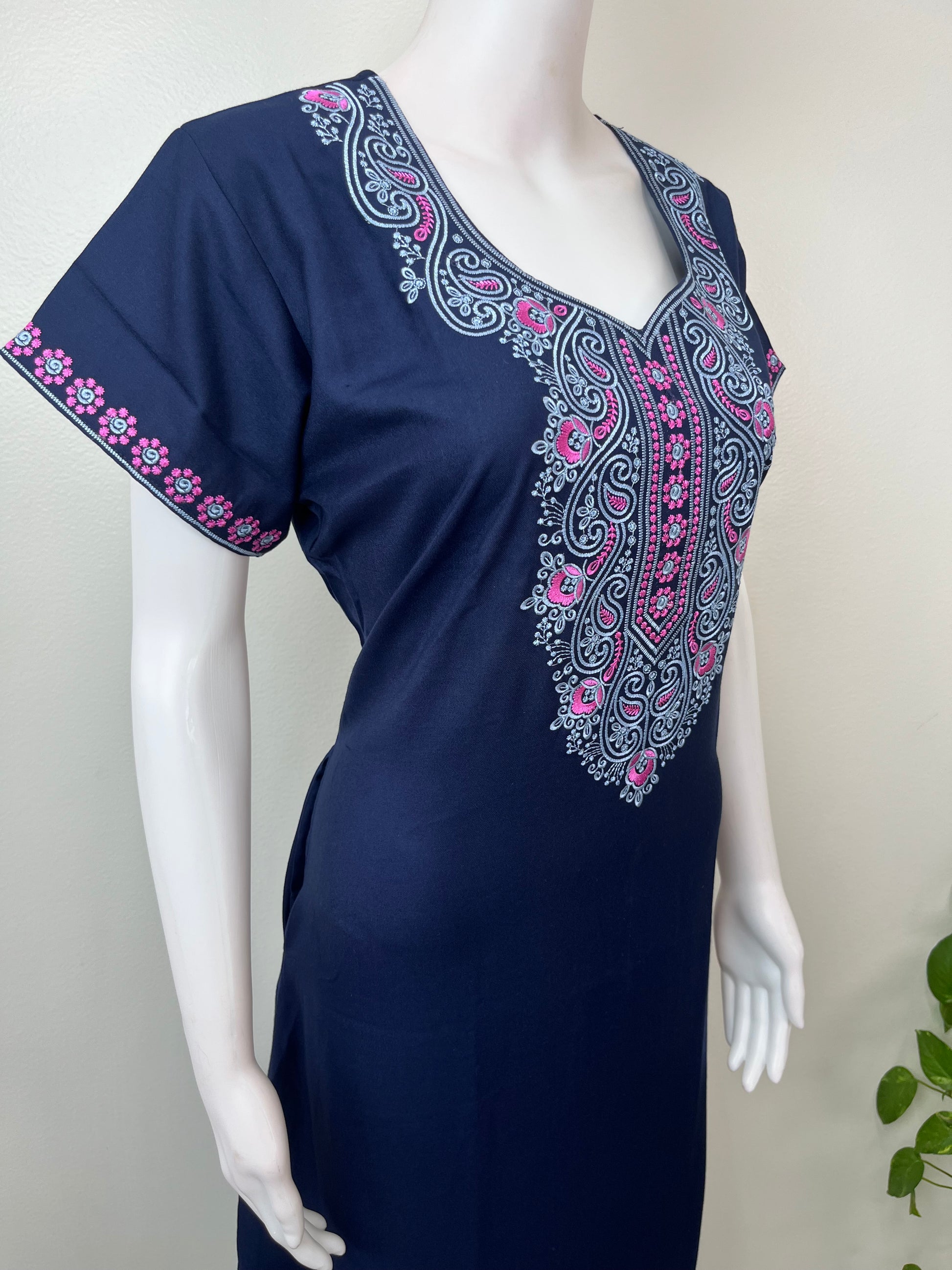 Navy Blue Premium Alpine Fabric Embroidered Nightgown