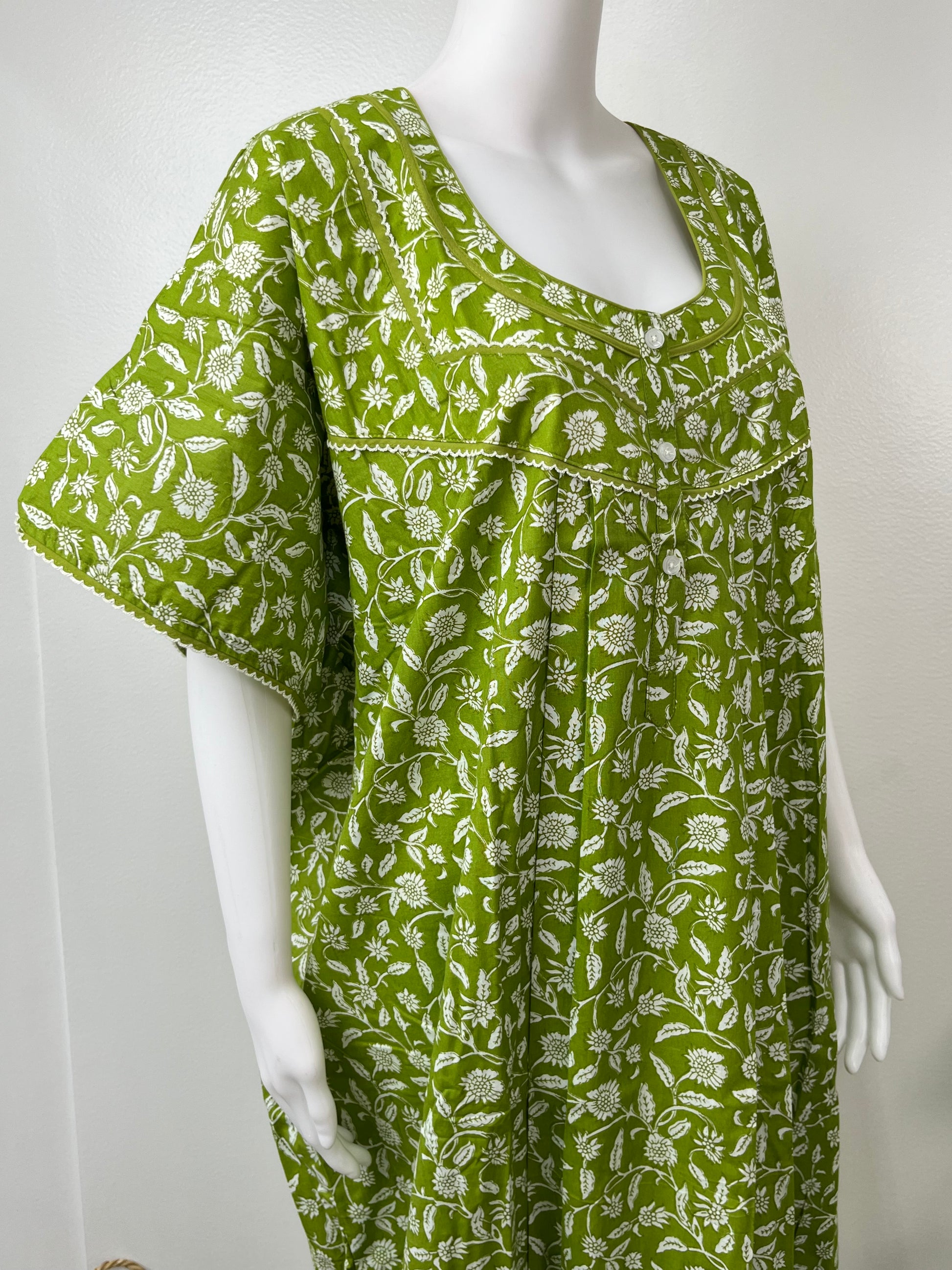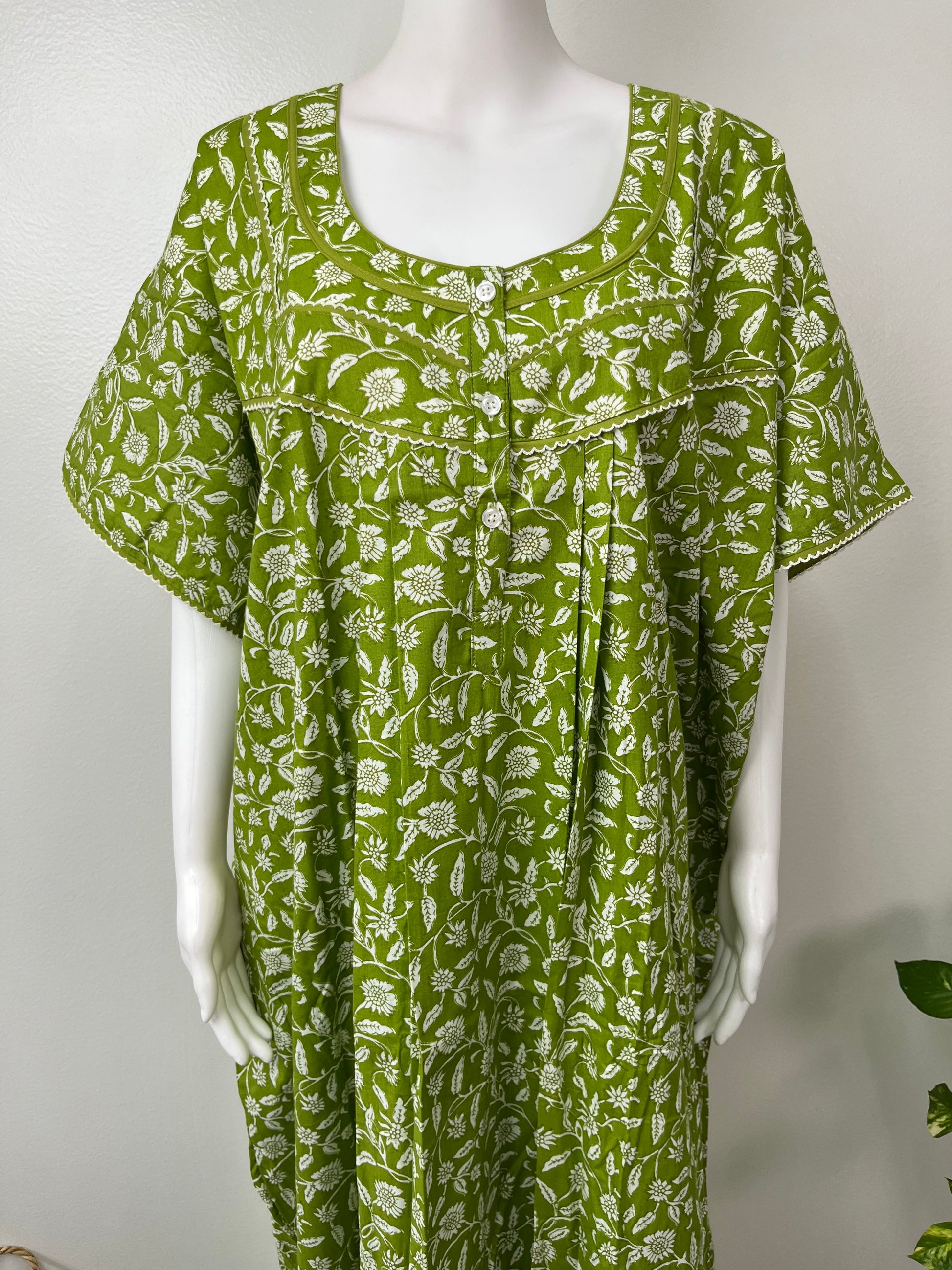 Sage Green Pure Cotton Nightgown Elegant & Breathable