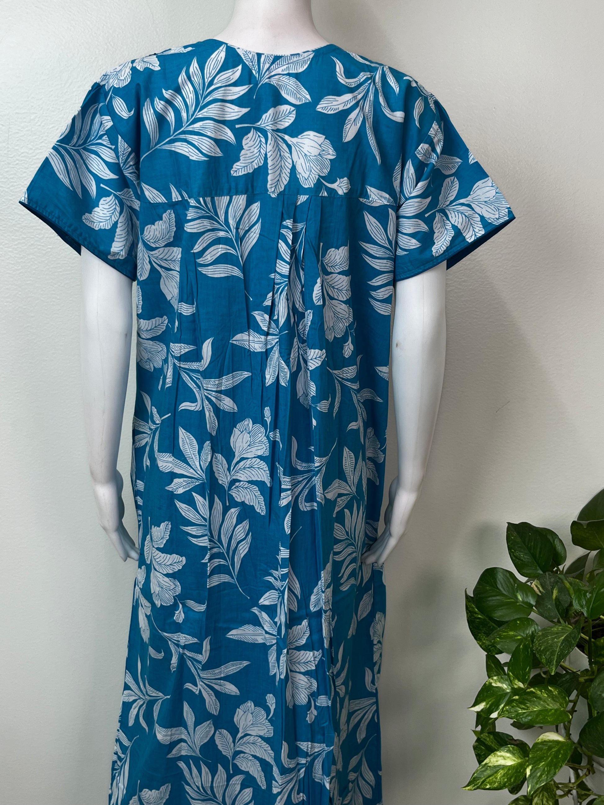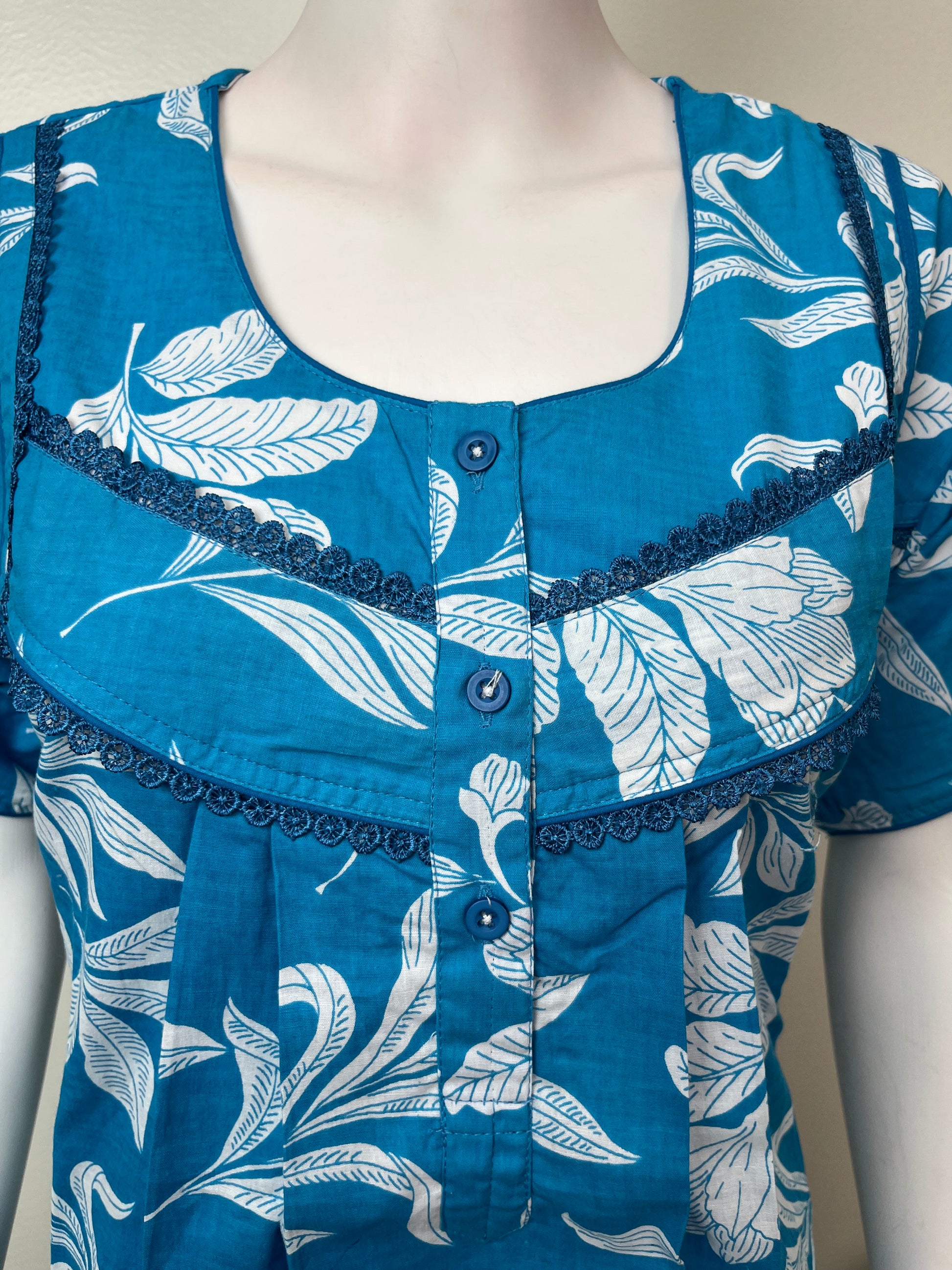 Aqua Blue Pure Cotton Nightgown Elegant & Breathable