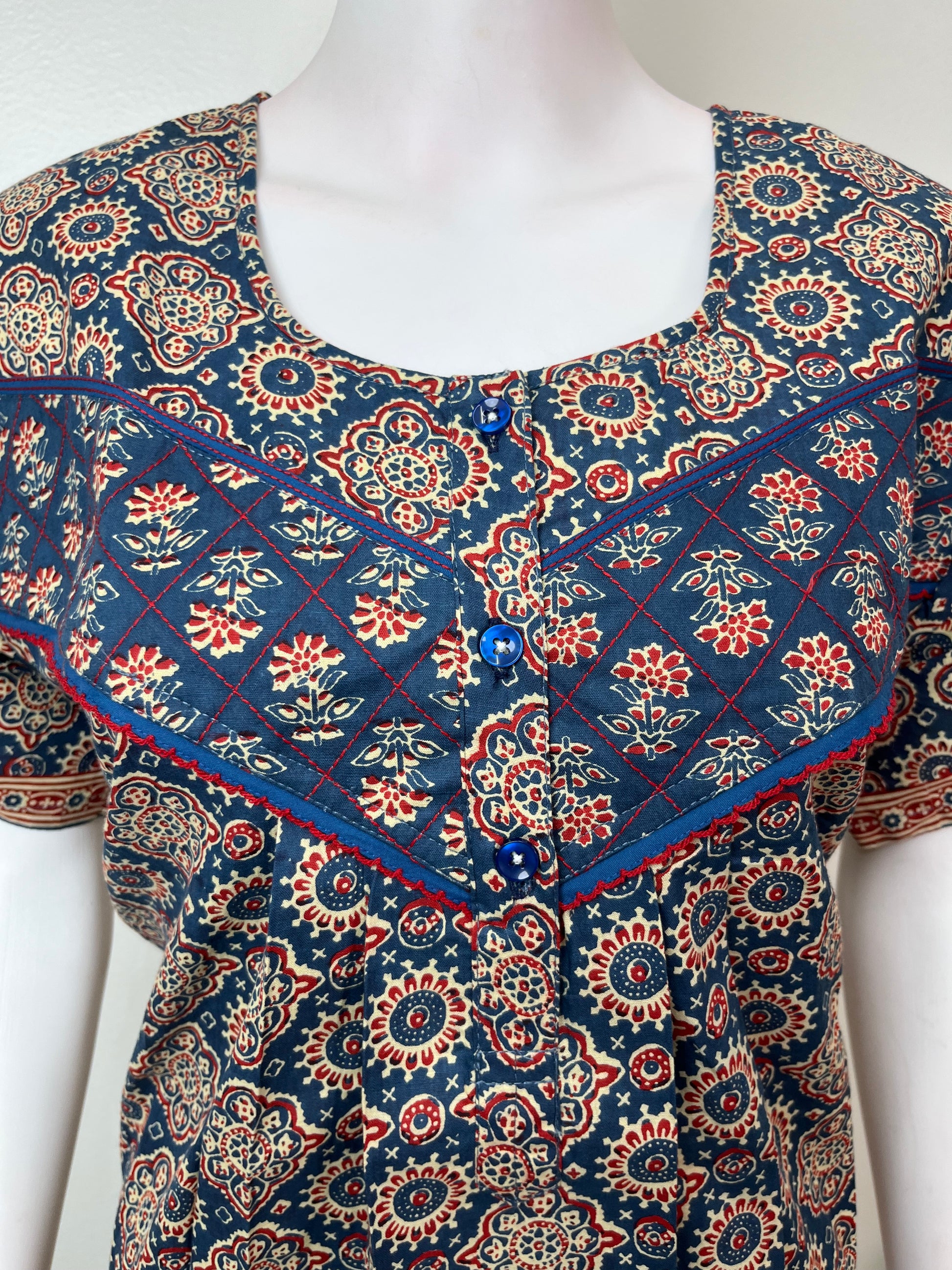 Navy Blue Pure Cotton Geometric Printed Nighty