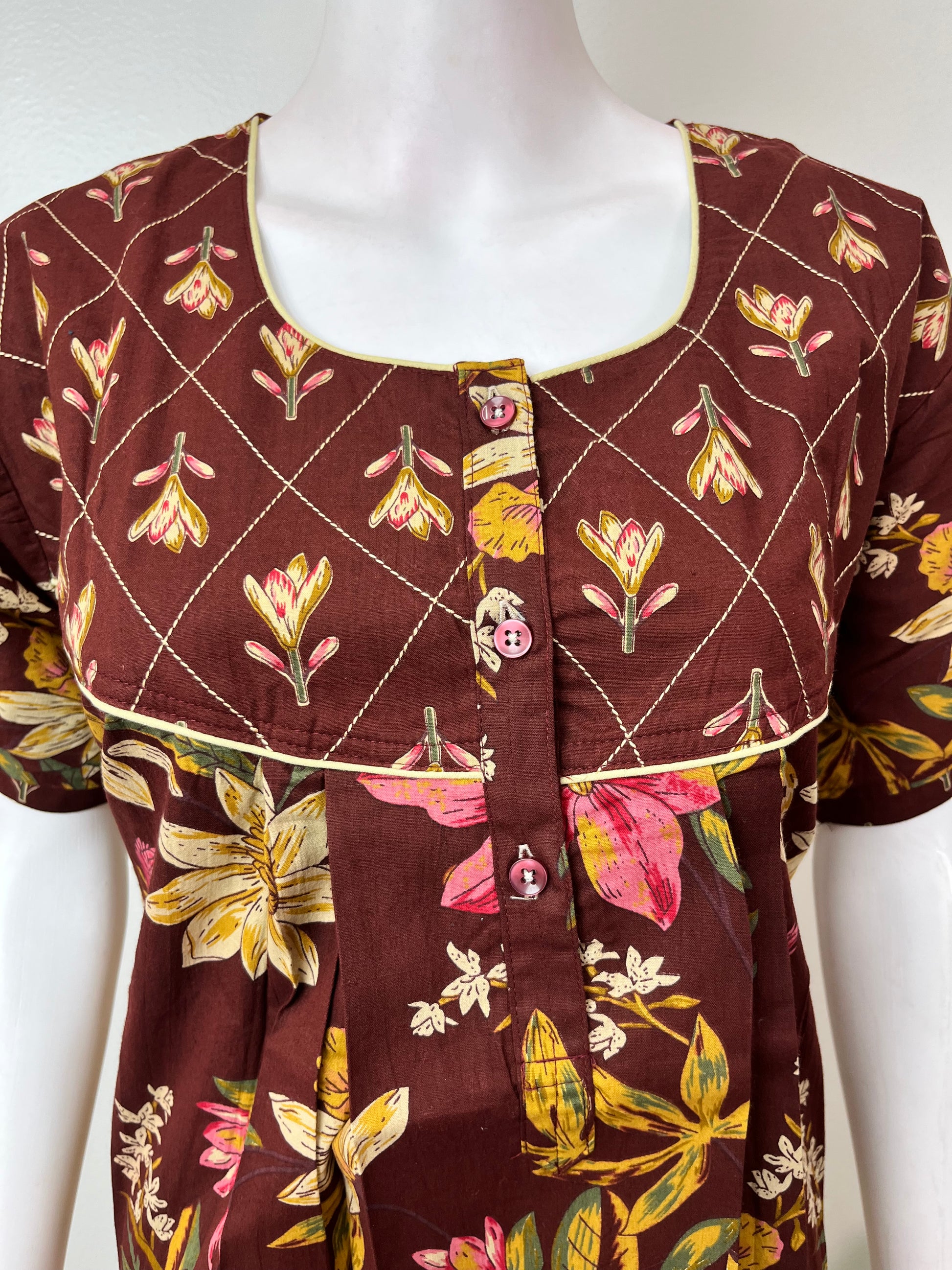 Brown Pure Cotton Nightgown Soft & Comfortable