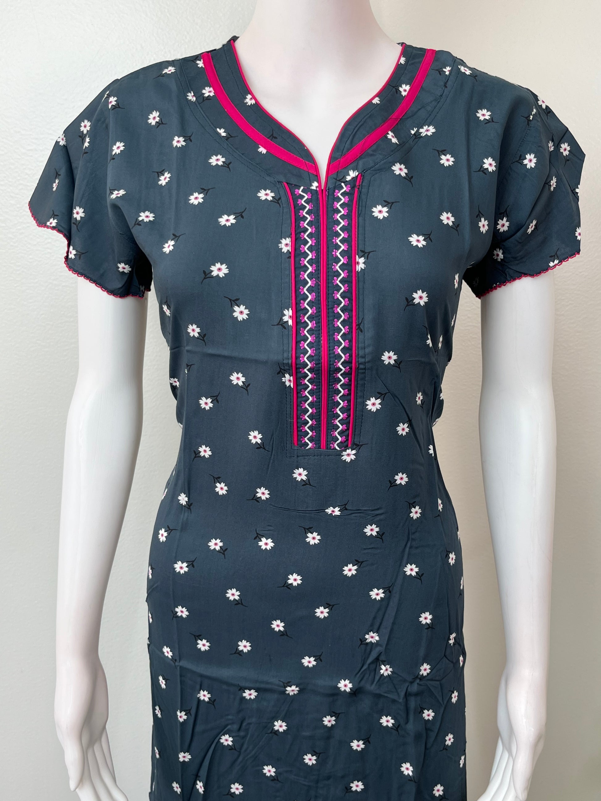 Navy Blue Soft & Elegant Rayon Fabric Nighty