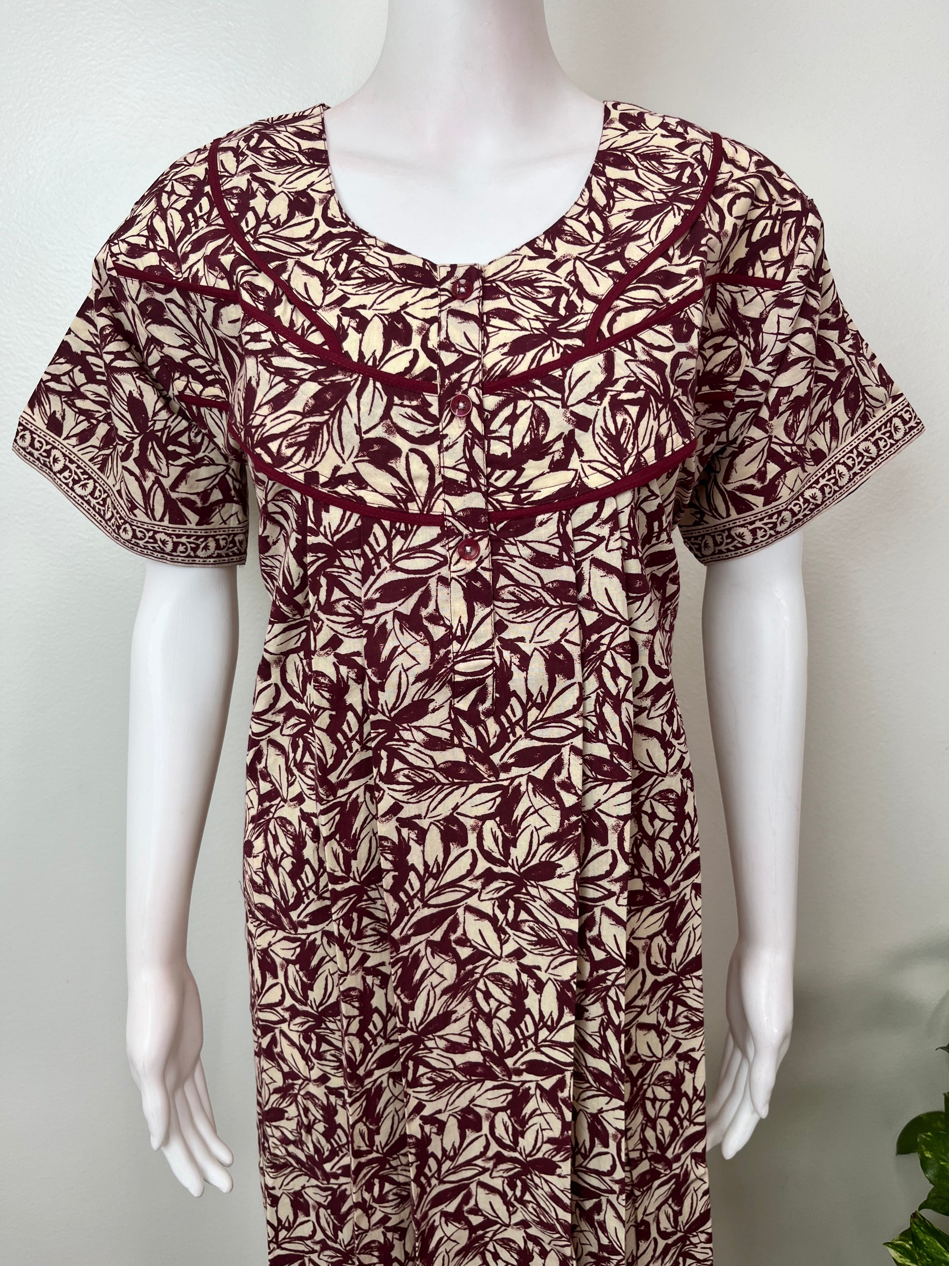 Maroon Pure Cotton Nightgown Soft & Comfortable
