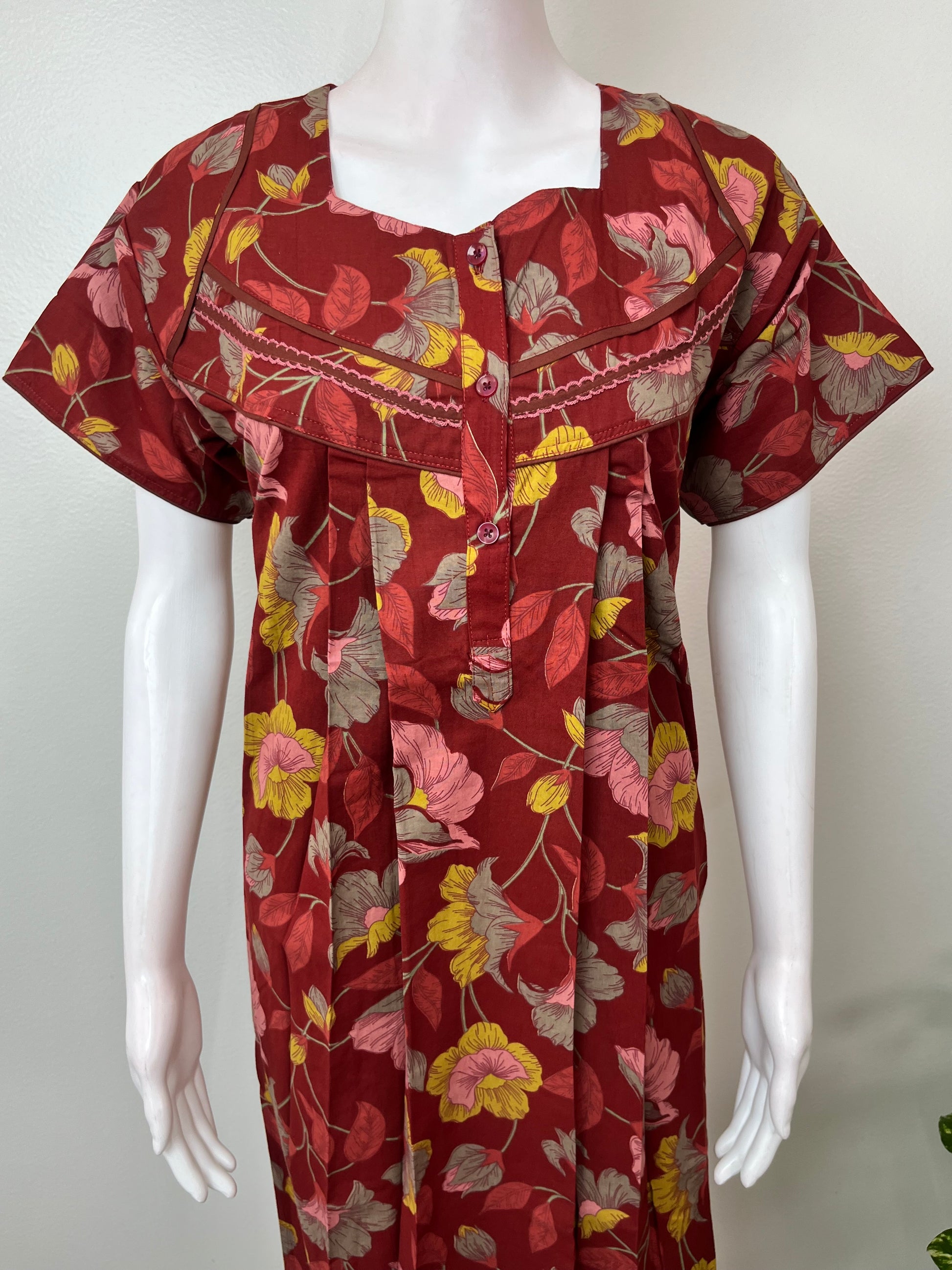 Maroon Floral Printed Pure Cotton Nightgown