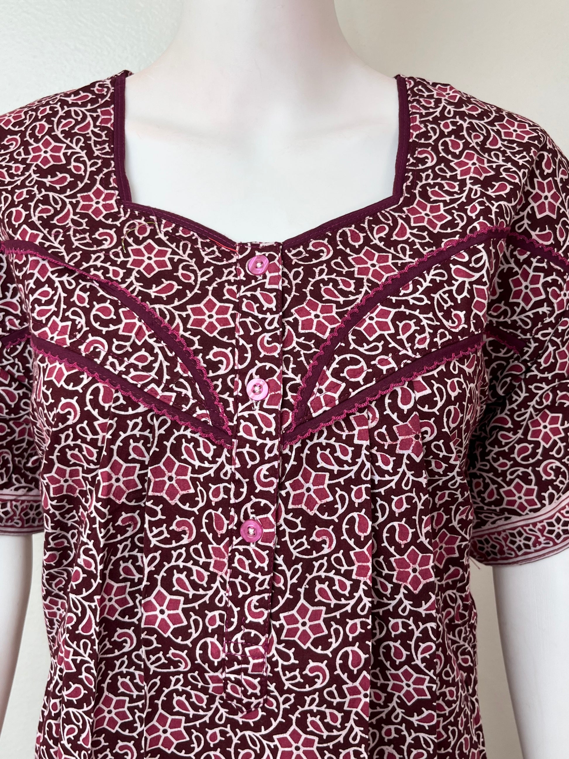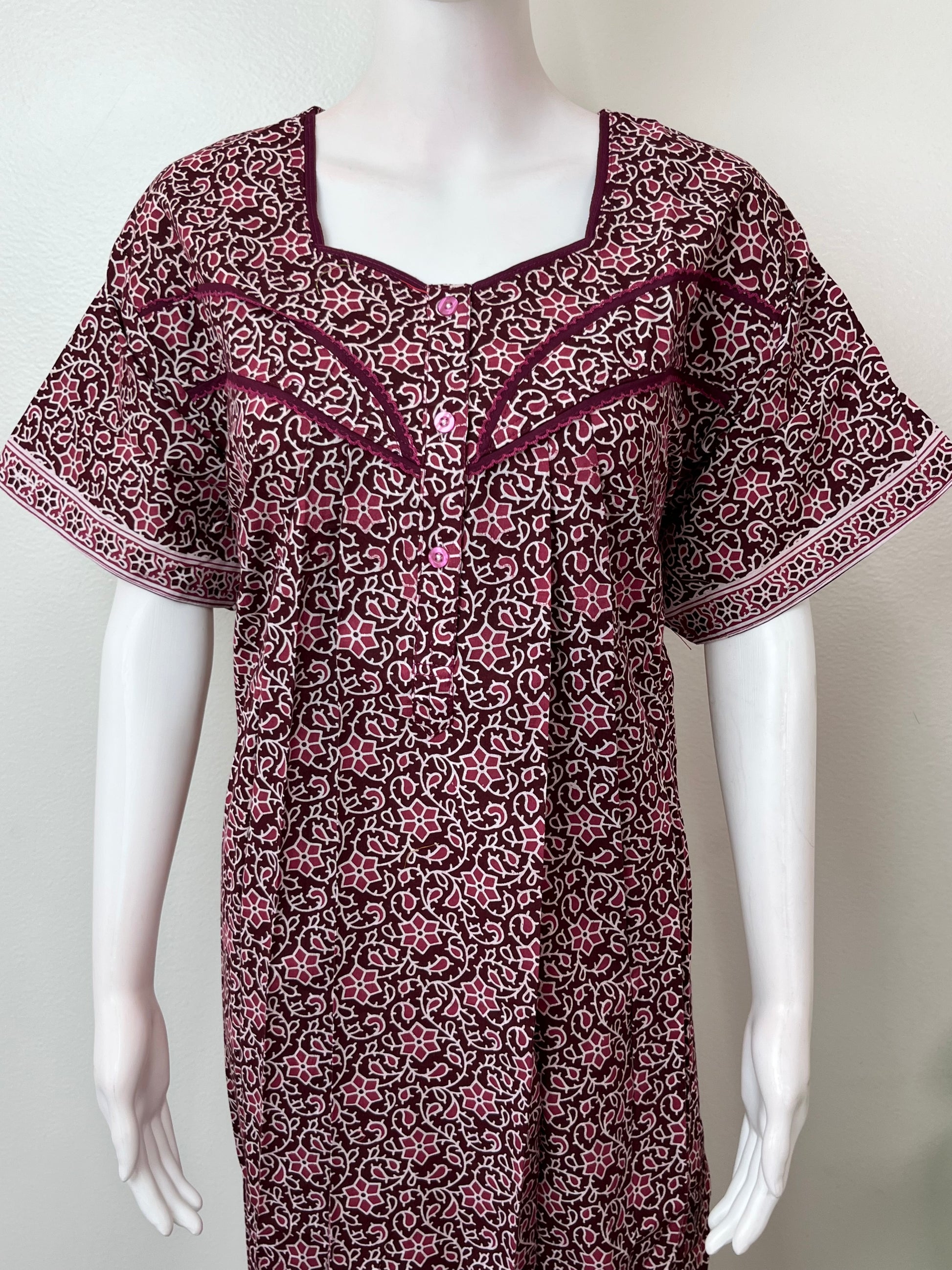 Wine Pure Cotton Nightgown Soft & Breathable