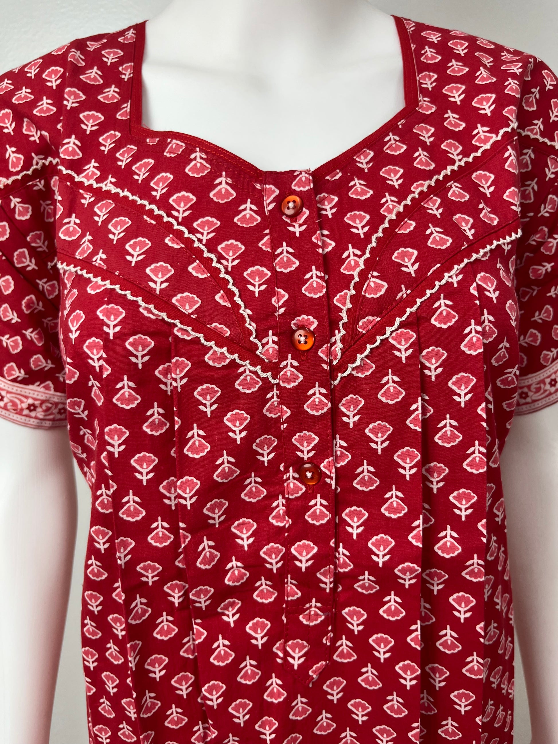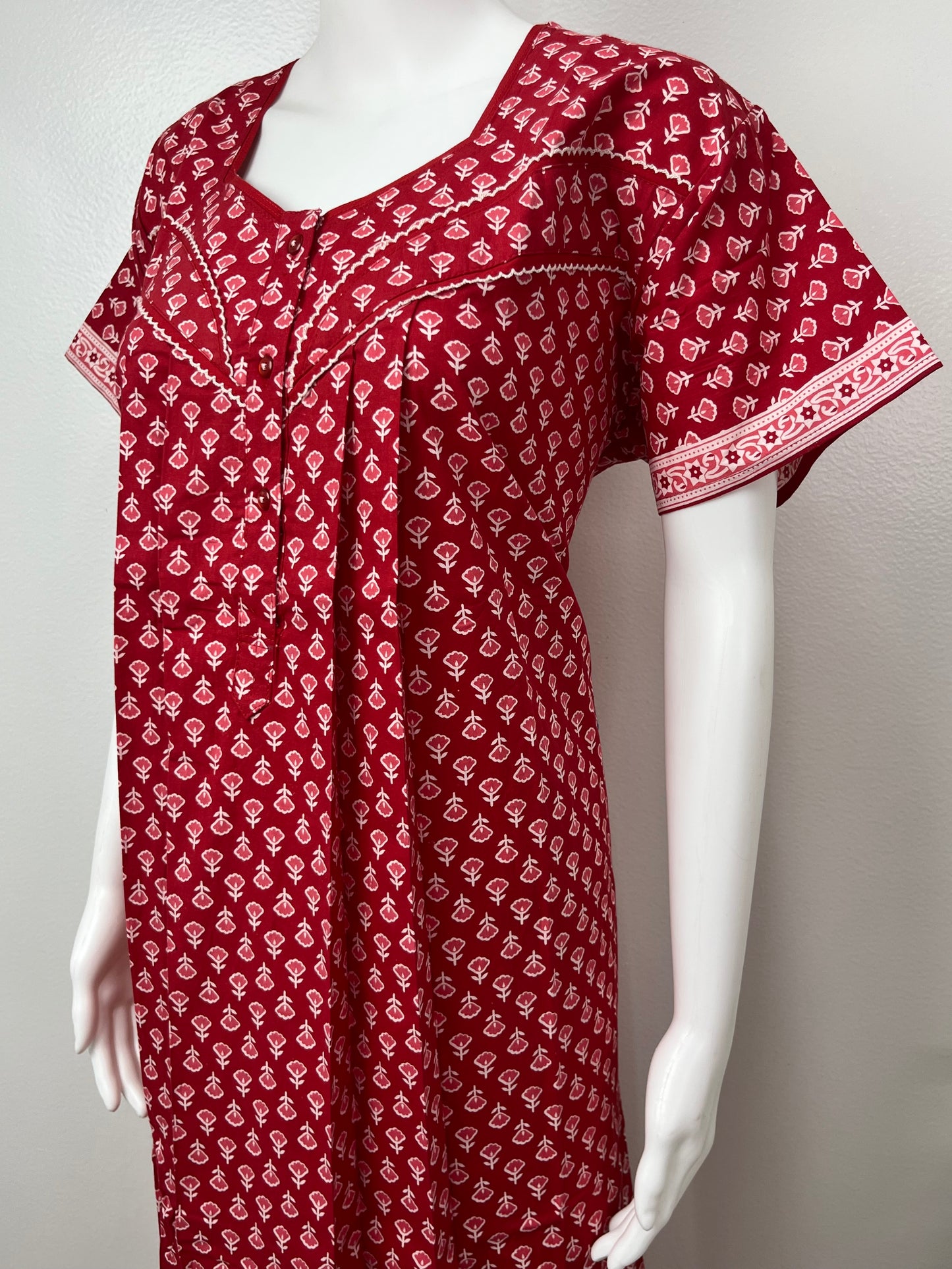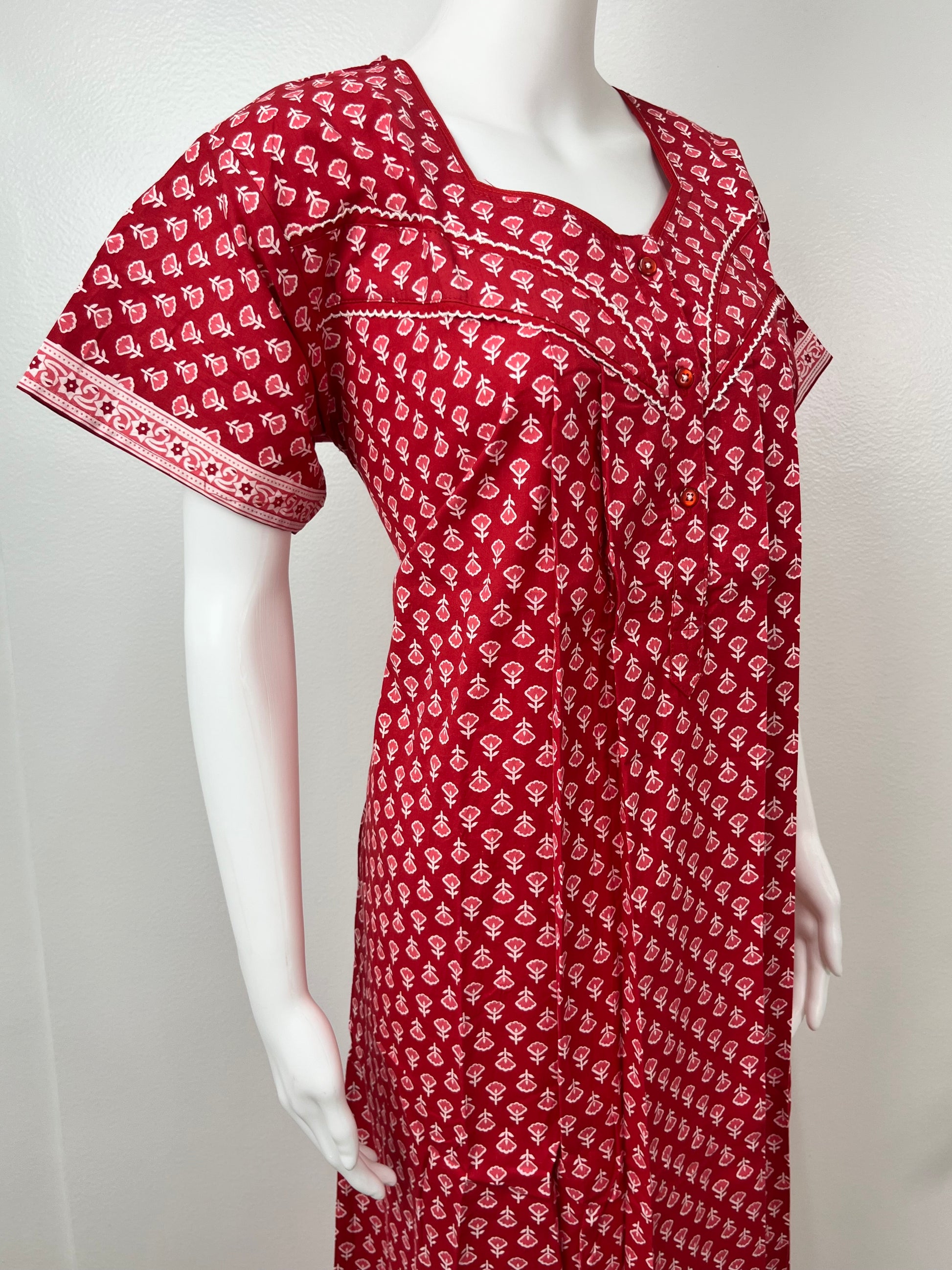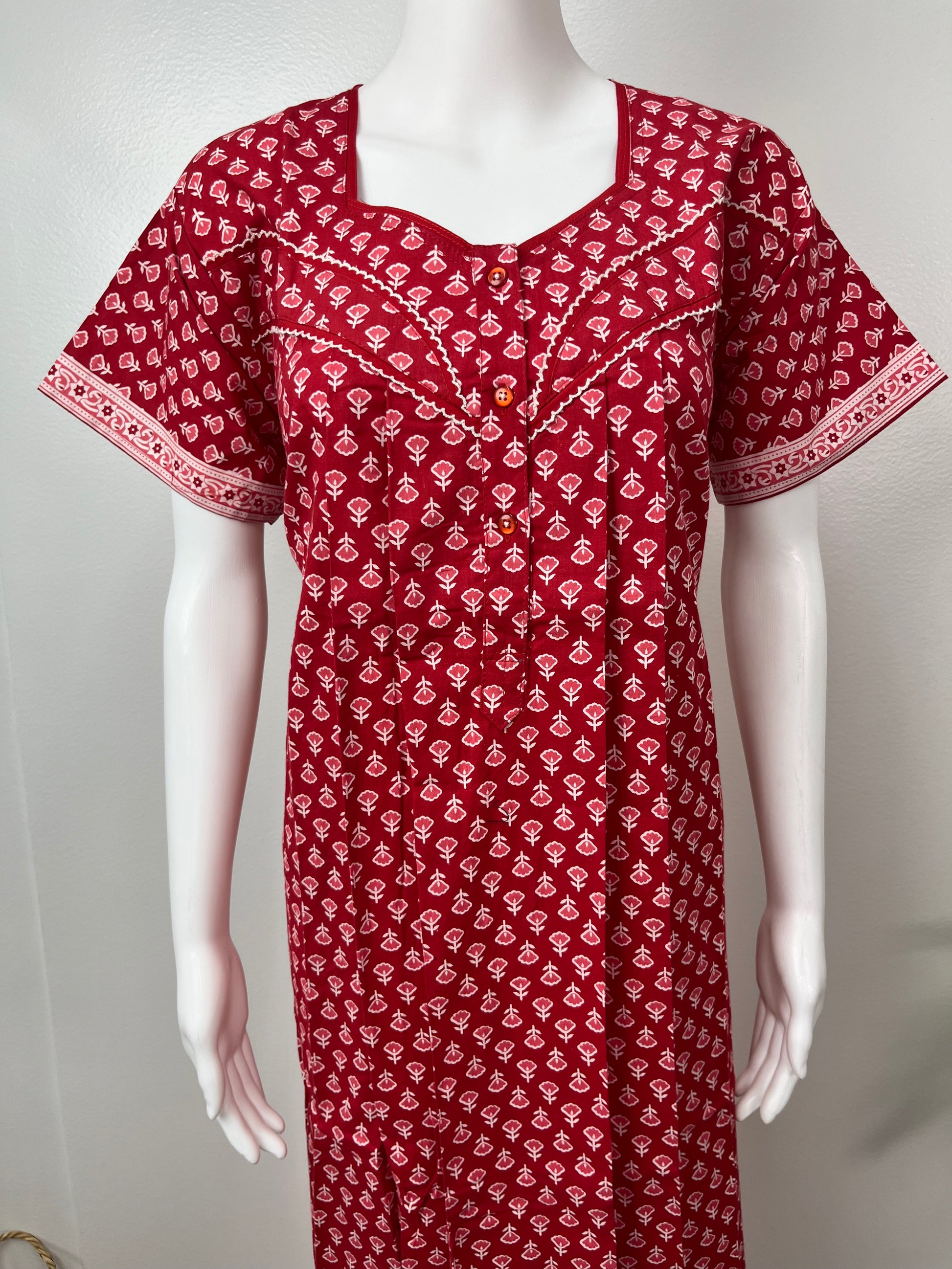 Red Pleated Pure Cotton Nightgown for Women