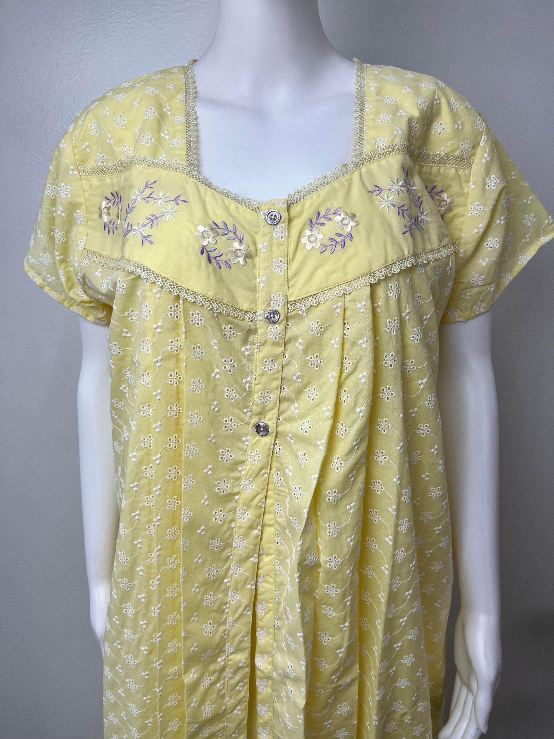 2-Piece Lemon Yellow Cotton Nightgown Set