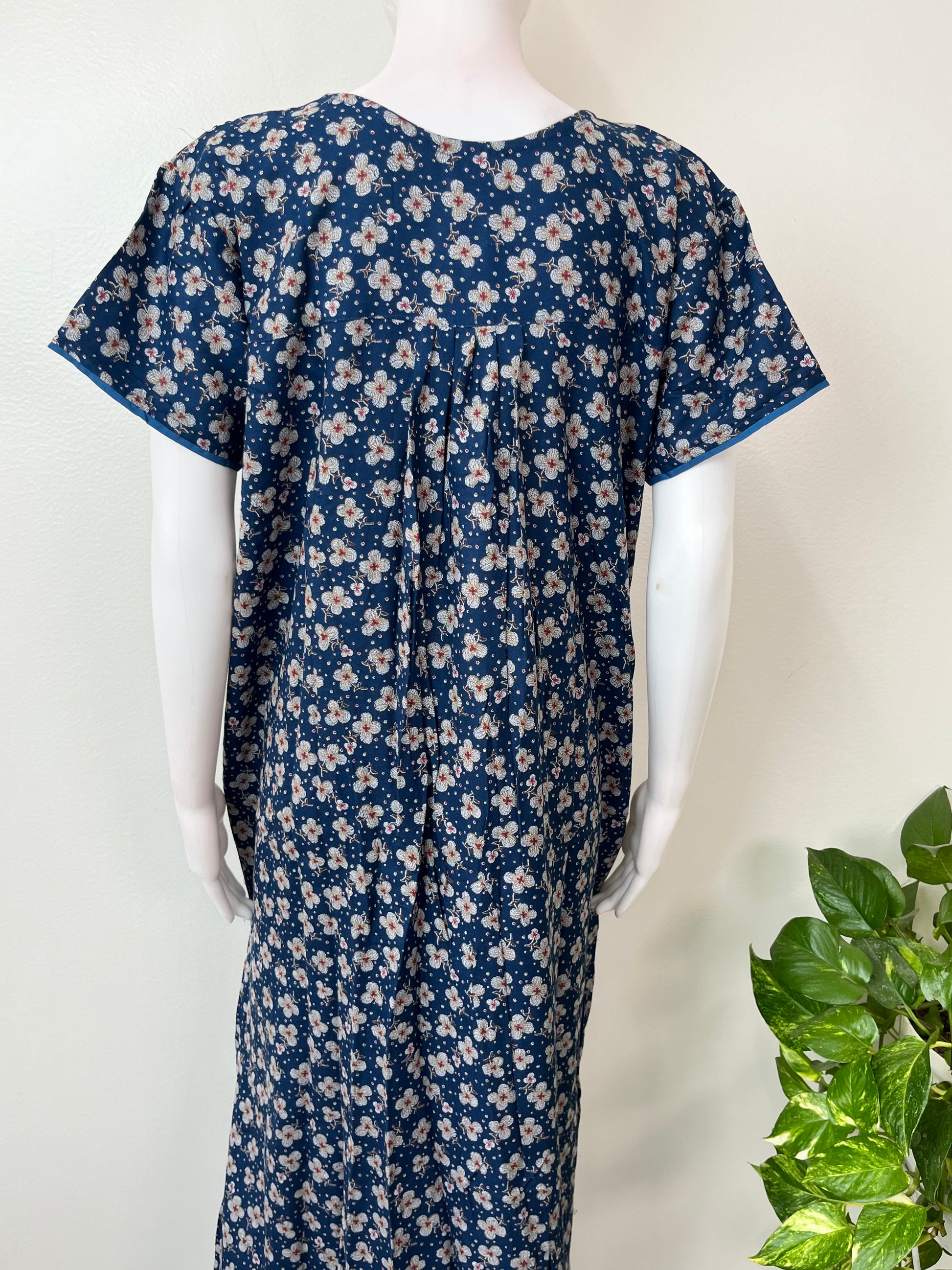 Royal Blue Pleated Style Alpine Fabric Nightgown