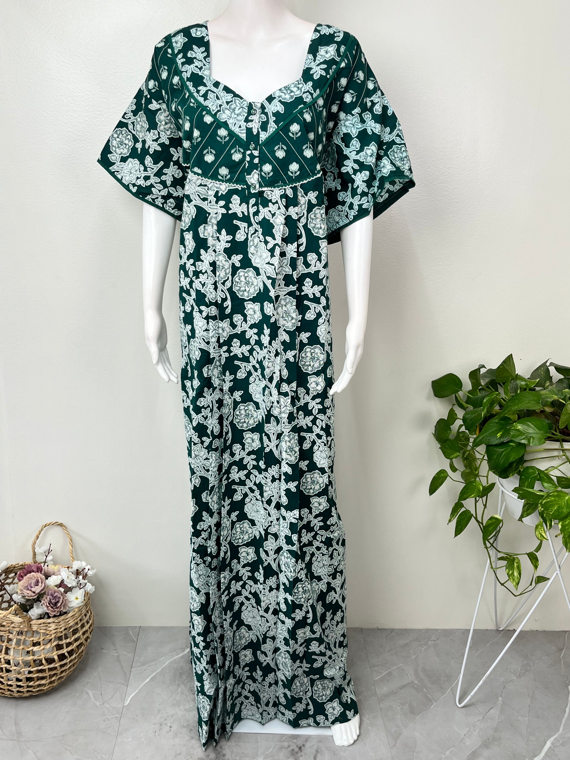 Viridian Green Pure Cotton Women's Nightgown