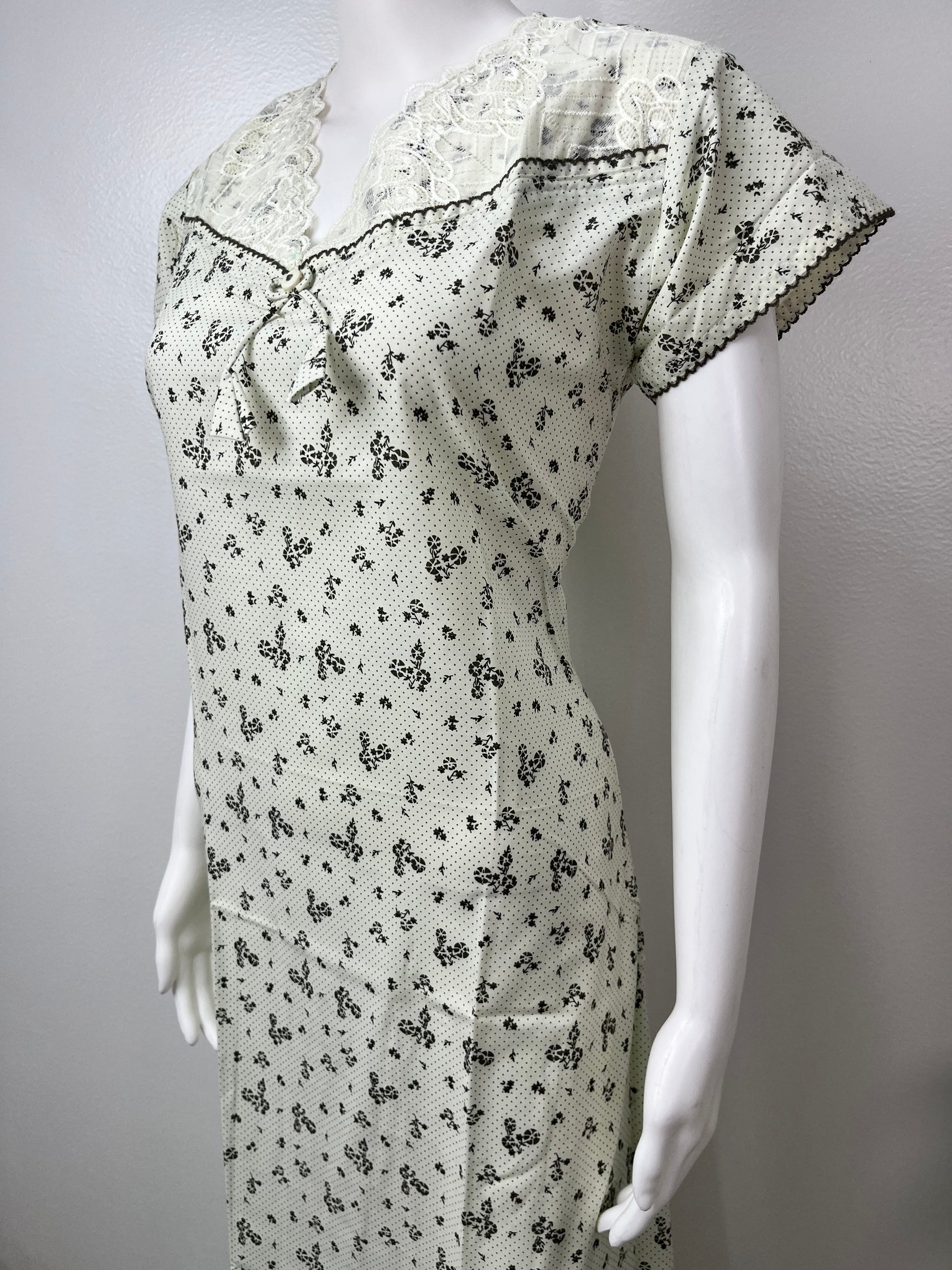Cream Polyester Cotton Laced Nightgown Soft & Breathable
